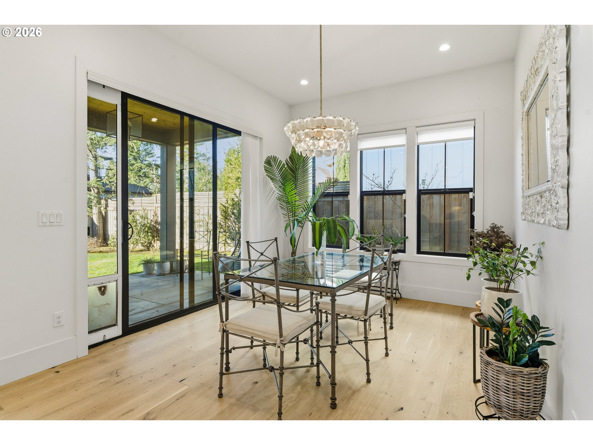 Set in the coveted West Haven neighborhood of Southwest Portland, this beautifully crafted two-story custom home pairs a striking, modern exterior with bright, Scandinavian-inspired interiors. A covered entry welcomes you into a thoughtfully designed main level featuring a flexible bedroom and nearby full bath, a private office with custom built-ins, and a sun-filled living room with vaulted ceilings, fireplace, and walls of windows framing the landscaped backyard. The chef’s kitchen is both stylish and functional, offering stainless steel appliances, a generous island, and a mudroom with ample pantry storage. Upstairs, the vaulted primary suite feels like a retreat, complete with a spa-inspired bath featuring a soaking tub, glass shower, heated floors, double vanity, and walk-in closet. Two additional bedrooms and a full bath complete the upper level. With a fenced yard, two-car garage, and refined finishes throughout, this home delivers effortless comfort with modern elegance.