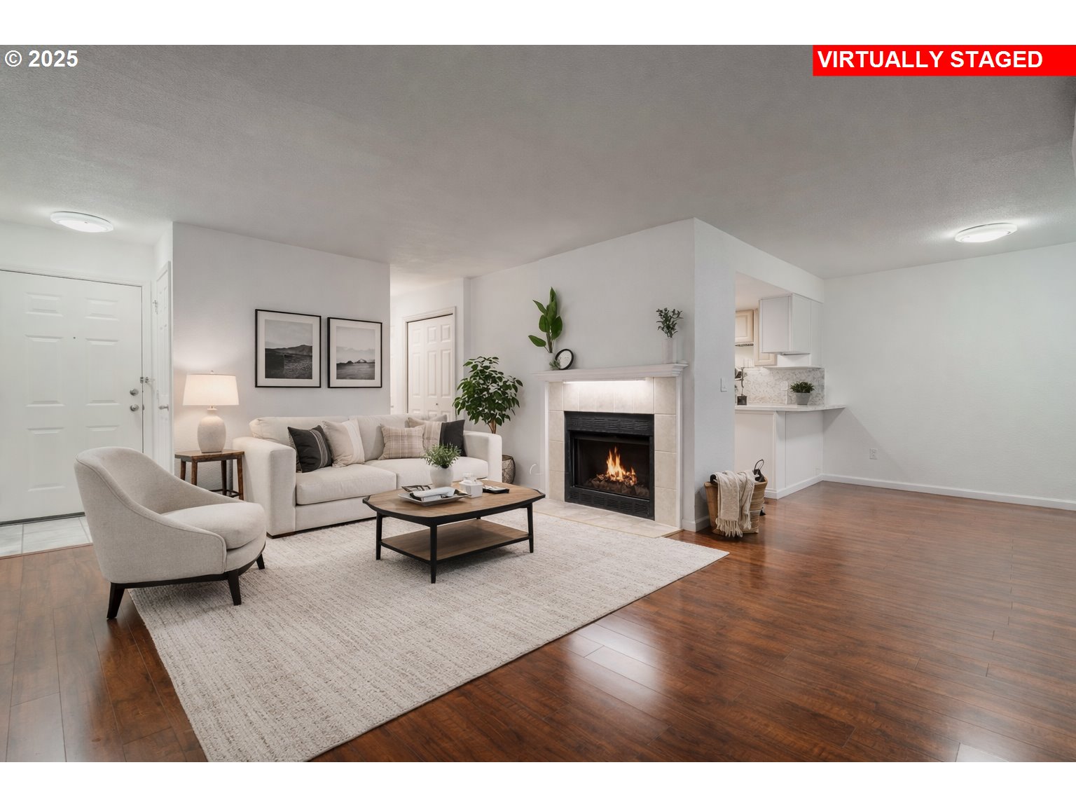 MOVE-IN READY!Charming ground-level condo located in the desirable Murrayhill area, completely renovated and updated for easy-care living. This spacious 2-bedroom, 2 full-bath home features laminate flooring and fresh interior paint throughout, vaulted ceilings, and excellent natural light with great airflow. The inviting living room includes a cozy wood-burning fireplace and opens to a covered patio—perfect for relaxing or entertaining.The primary bedroom offers a walk-in closet and private shower. Mini-split HVAC system, washer/dryer, and refrigerator are all included. Situated in a very quiet, mature, and friendly community with a well-managed HOA. HOA fee covers water, sewer, trash, exterior maintenance, pool, and most utilities.Fantastic location close to Murrayhill shopping, great schools, and just minutes to Hwy 217, Washington Square, Nike, and Intel. A true move-in-ready dream home—don’t miss it!