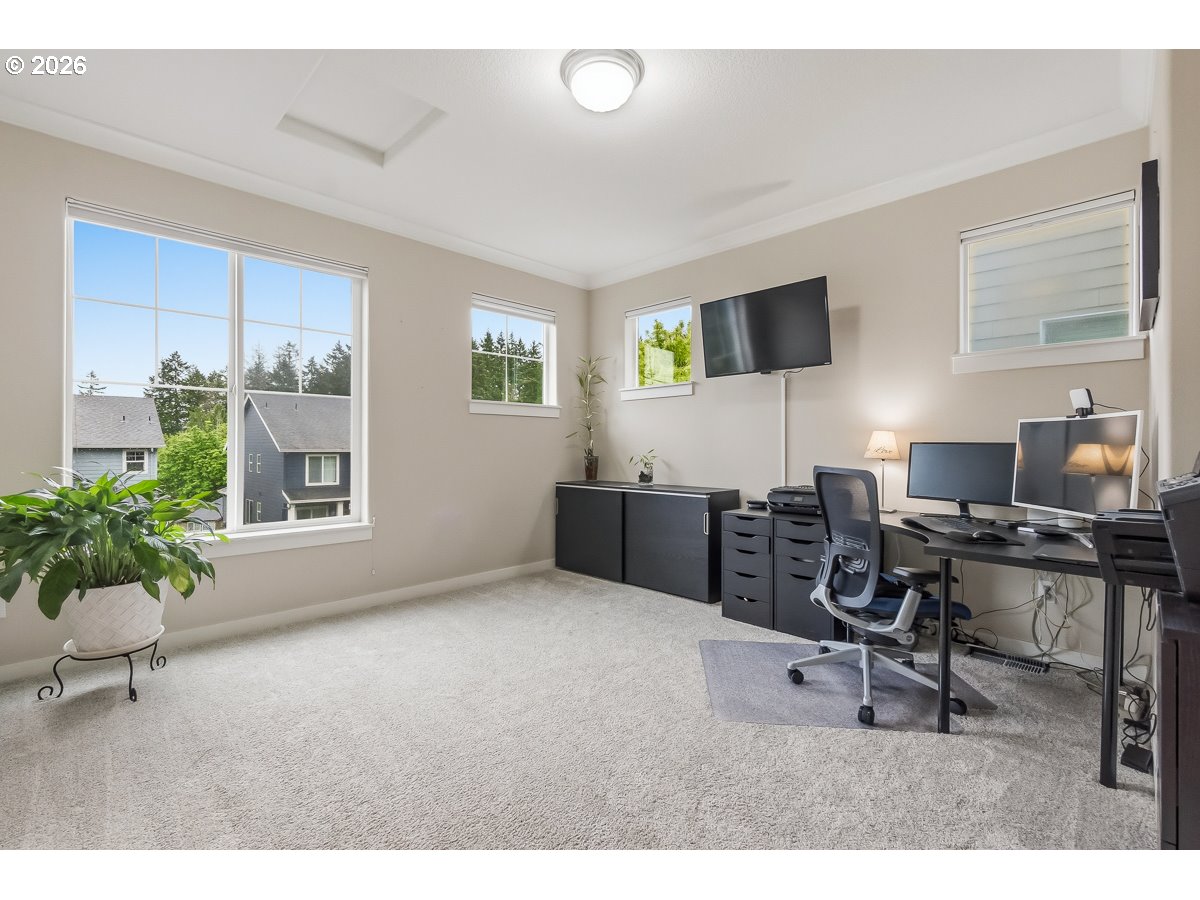 Beautiful and spacious home offers 5 bedrooms + den + family room. This very well care for home has a an open floor plan, high ceilings, and large kitchen. Primary suite features large windows, vaulted ceilings, fireplace and spa-like bathroom. Located on a private, dead-end street in Beaverton's Mountainside HS area. Easy access to parks, walking trails, shopping and restaurants. Exceptional value for the sq footage!
