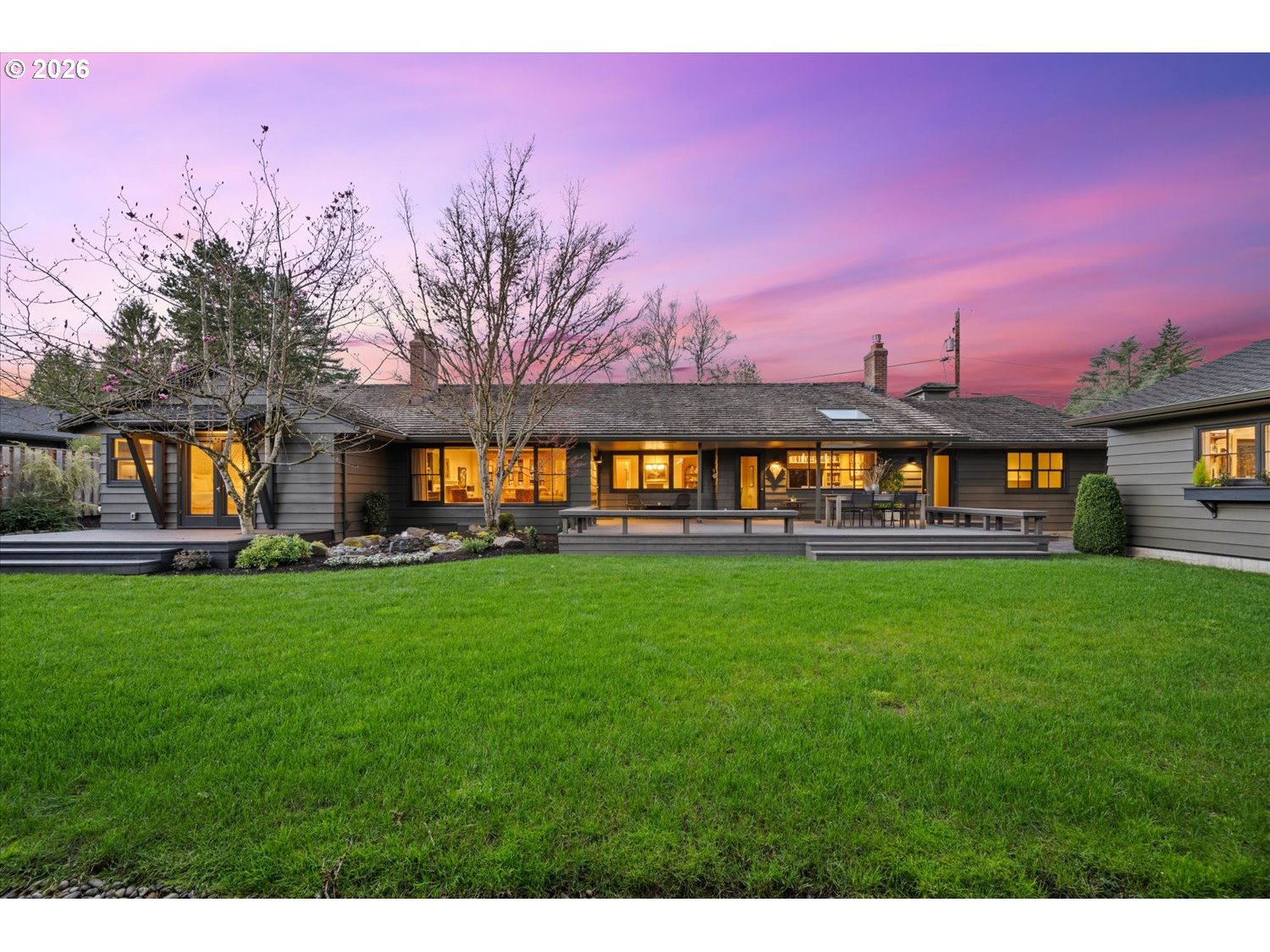 Offer deadline 4/3 at noon: This sprawling, single-level "Old" Vista Hills rambler has undergone a high-quality restoration by Otis Construction from 2022 to 2025. The sellers had no intention of selling and invested significant care and attention into the property, home, shop, & gardens. Great care was taken to ensure the restoration respected the home’s original integrity. Most windows are new and were custom made to match the existing profiles. Since 2022, the home has received new surfaces and appliances. The kitchen opens to a family room, and the study has its own entrance creating a perfect home office. The bedrooms are situated opposite the home ensuring privacy & tranquility. The newly built 731 SF (appx.) heated woodworking shop (not included in the total SF of the house) has 220 amp electrical and numerous 230 V & 115 V outlets along the walls & floor. This structure was designed to match the main home, ensuring a cohesive appearance between the two. It appears original to the property and enhances backyard privacy. It offers potential for use as an art studio, private office, hobby space, or retreat. The two-car garage provides direct interior access to a mudroom with extensive cabinetry, newer Speed Queen full-capacity laundry machines, an extra-deep sink, and storage for large platters, trays, vases, and kitchen overstock. This space opens to the kitchen and includes an additional door to the covered front porch, providing a convenient transition when unloading groceries or returning from a walk. The home is positioned to capture lush views, with an expansive deck featuring a generous overhang for outdoor dining, adjoining a level lawn bordered by mature landscaping including camellias, rhododendrons, azaleas, tulip magnolias. The property has been professionally landscaped with irrigation and drainage. The back yard is fully fenced. "Old" Vista Hills is a coveted, established neighborhood close to Portland, Beaverton & Hillsboro.
