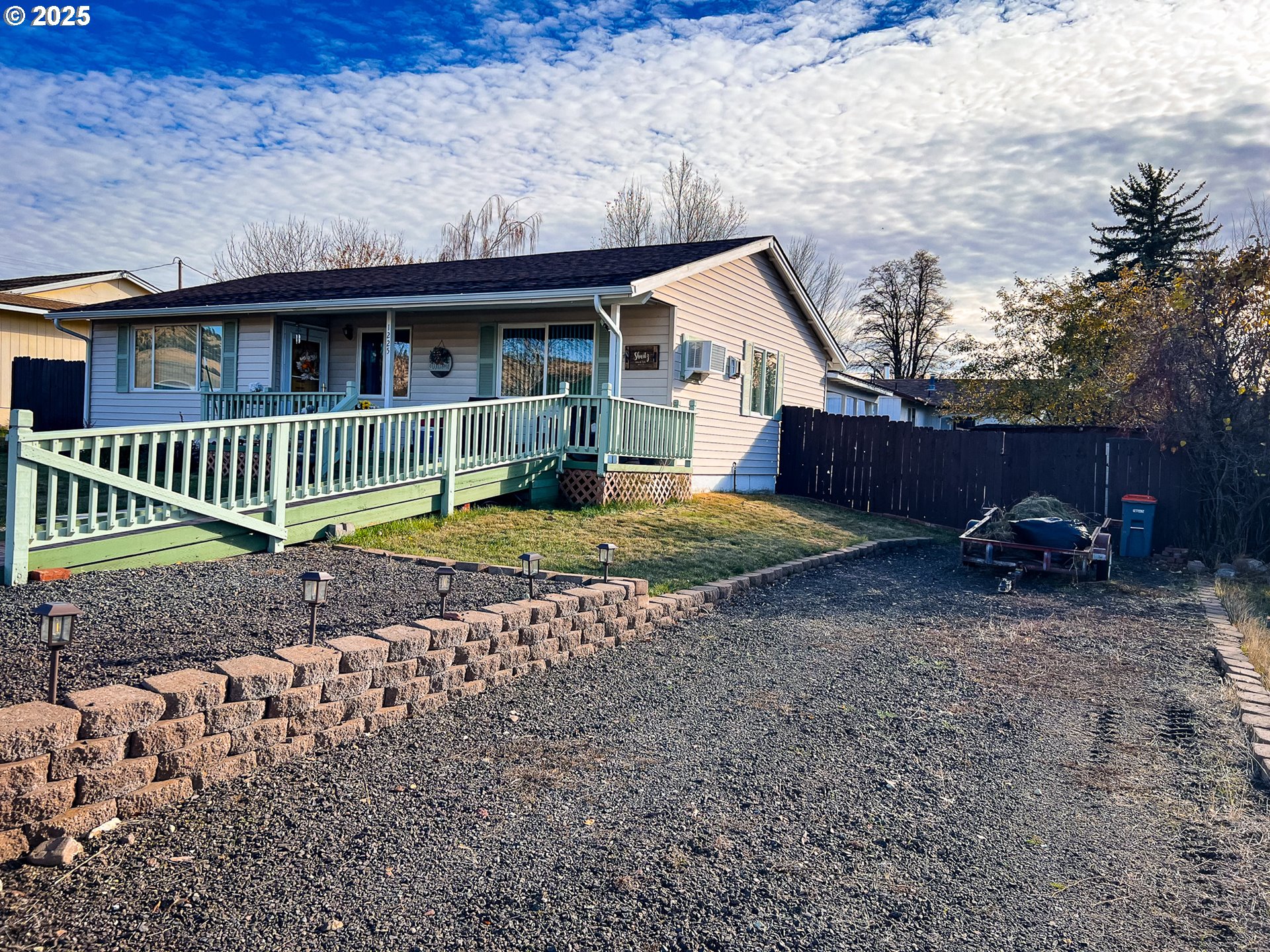 Discover this delightful three-bedroom, one-bathroom residence in Fossil! This well-maintained, 1,448-square-foot stick-built home features both a living room and a family room, electric forced air heating, and a warm propane fireplace. This home is ADA compliant for the front entrance and bathroom while being move-in ready. You can enjoy both the front and back decks for outdoor relaxation, and there is a fully fenced backyard on a manageable 0.13-acre lot. Conveniently located by downtown Fossil, this home is ideal for first-time buyers, retirees, or anyone looking for the tranquility of small-town living.The electric panel was replaced about five years ago, and a new sewer line was installed in 2018. The composition roof is approximately 11 years old.