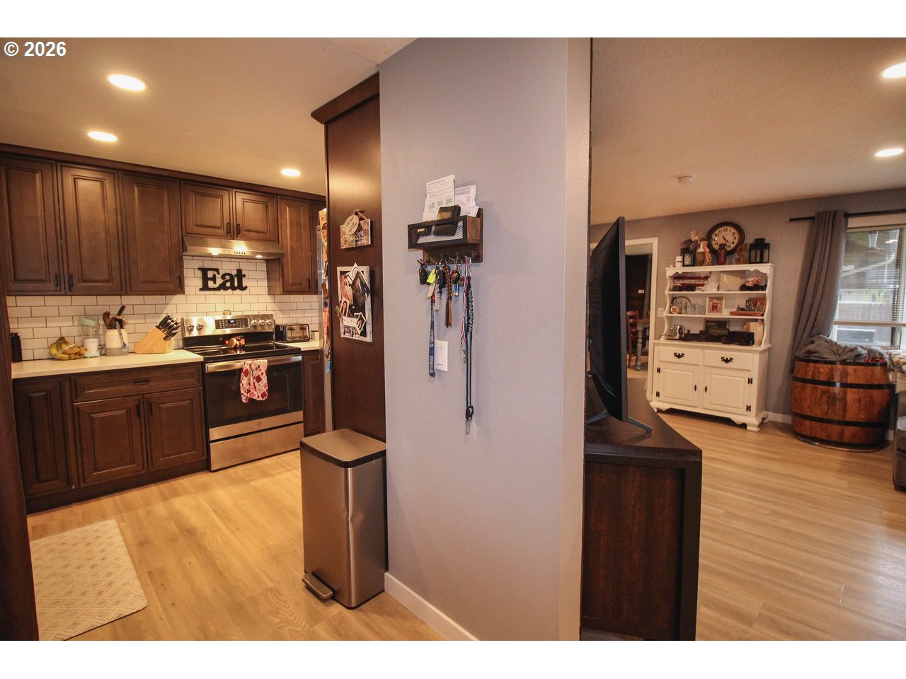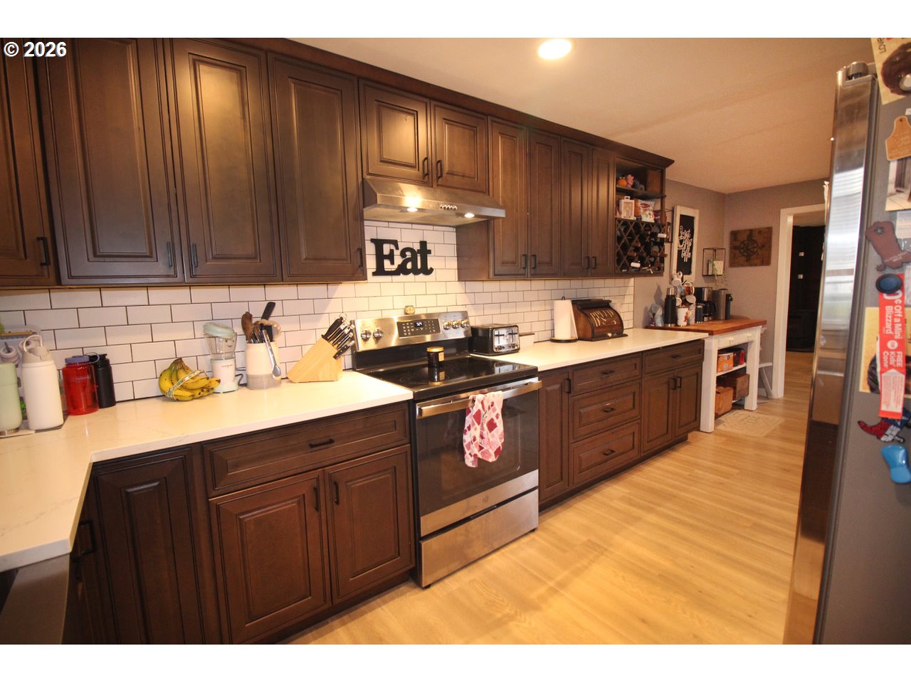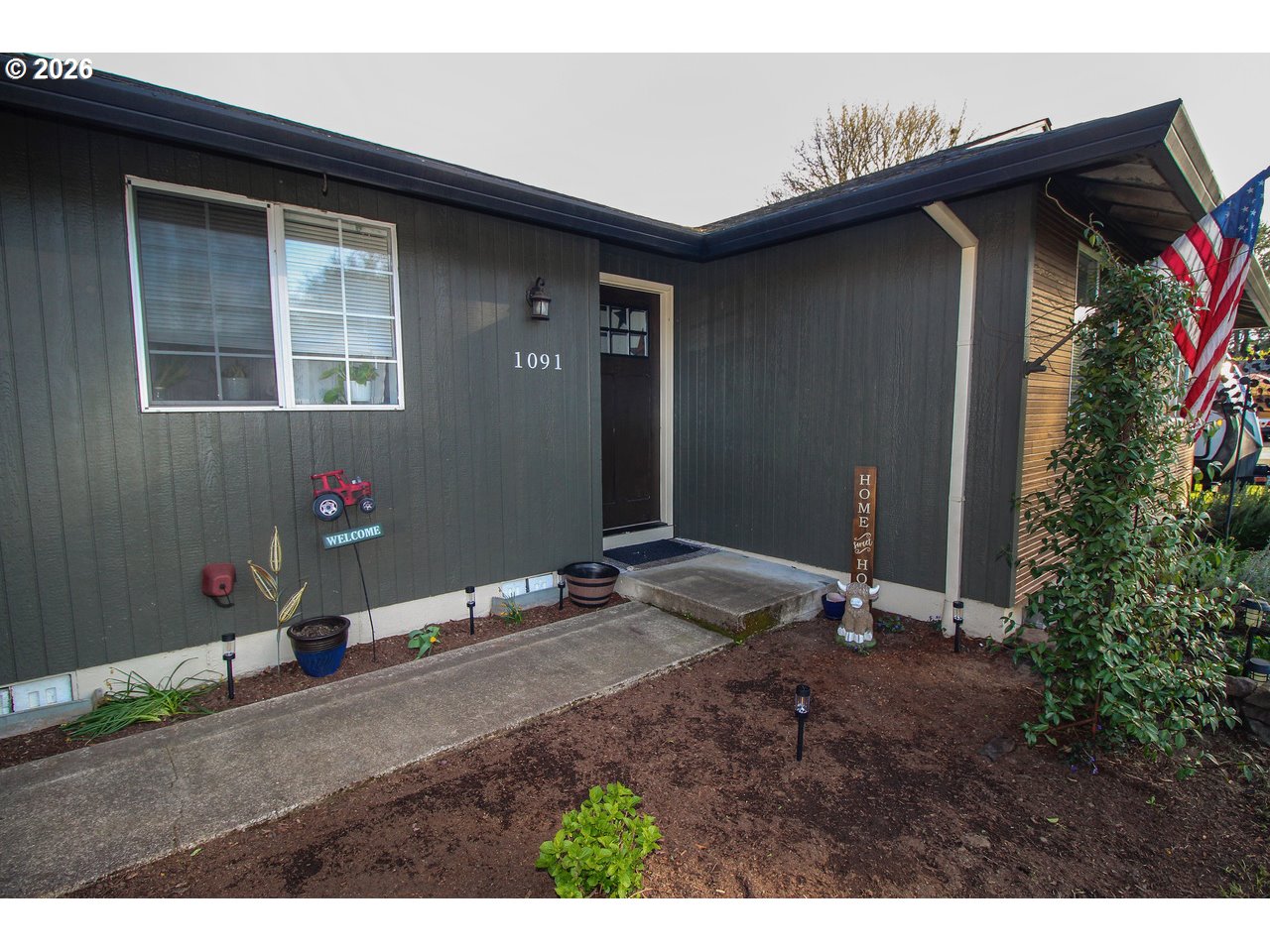 Renovated single-level home in the heart of wine country! This move-in ready property features a beautifully updated custom kitchen with quartz countertops, tile backsplash, wood cabinetry, stainless steel appliances, and a charming farmhouse sink. Enjoy a bright, refreshed interior with new can lighting, fixtures, switches, outlets, and fresh interior paint. Additional upgrades include new vinyl windows, doors, attic fans, water heater, and exterior paint. Luxury vinyl plank flooring flows through the main living areas, complemented by plush new carpet in all three bedrooms. The home offers both a spacious living room and a versatile family/dining room with French doors leading to the backyard, plus a cozy pellet stove for added warmth and ambiance. Situated on a generous corner lot, the property features a large fenced backyard with a gate, an expansive covered patio ideal for entertaining, a storage shed, and RV parking. Located within walking distance to the new elementary school and just minutes from local restaurants, world-class wineries, and tasting rooms, this Dundee home offers the perfect balance of small-town charm and convenient access to Newberg’s amenities.