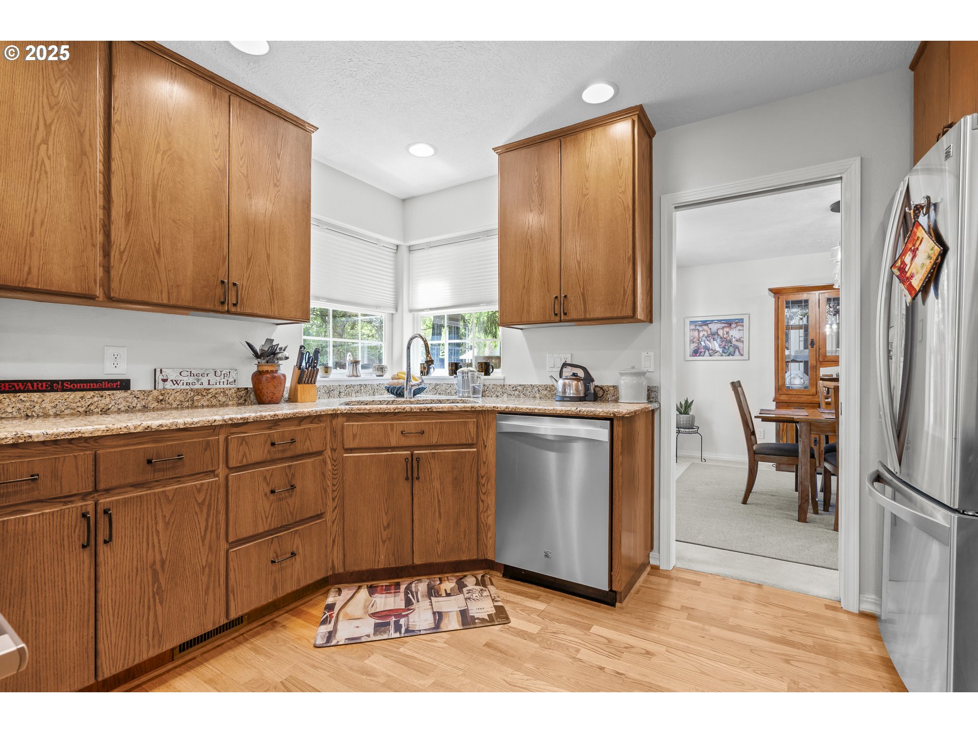 Tucked away in a McMinnville cul-de-sac not far from downtown, Linfield University, and local parks, this lovely home offers the perfect blend of tranquility and convenience. Surrounded by a lush, forest-like setting with mature redwoods and a beautifully landscaped shade garden, this property feels like your own private oasis. Step inside to a welcoming entryway with soaring ceilings and an abundance of natural light. The spacious first floor features a cozy family room with a fireplace, and opens into a well-equipped kitchen with granite counter tops, a large pantry, top of the line appliances including a Bosch induction stove-top and oven. A separate formal living room with large bay windows and a dining room provide plenty of space for gatherings and everyday comfort. Up-stairs the expansive main bedroom is a true retreat. Its bathroom features a walk-in shower, heated floors, double sink vanity, and a large walk-in clothes closet. The two additional bedrooms, and a bathroom with a heated floor, and double sink vanity, complete the upper level. But the real showstopper is the incredible spacious covered deck. The deck contains a wood fired pizza oven, overhead heaters and fan, ample lighting, and is perfect for entertaining year-round. Additional highlights include: a full sprinkler system, RV or boat parking area, small vegetable or flower garden, garden tool shed, and a central vacuum system. Recent upgrades include a new HVAC, water heater, clothes washer and garbage disposal. The springs on the garage door were also recently replaced and the garage includes three large storage cabinets. A well kept home you will truly fall in love with!