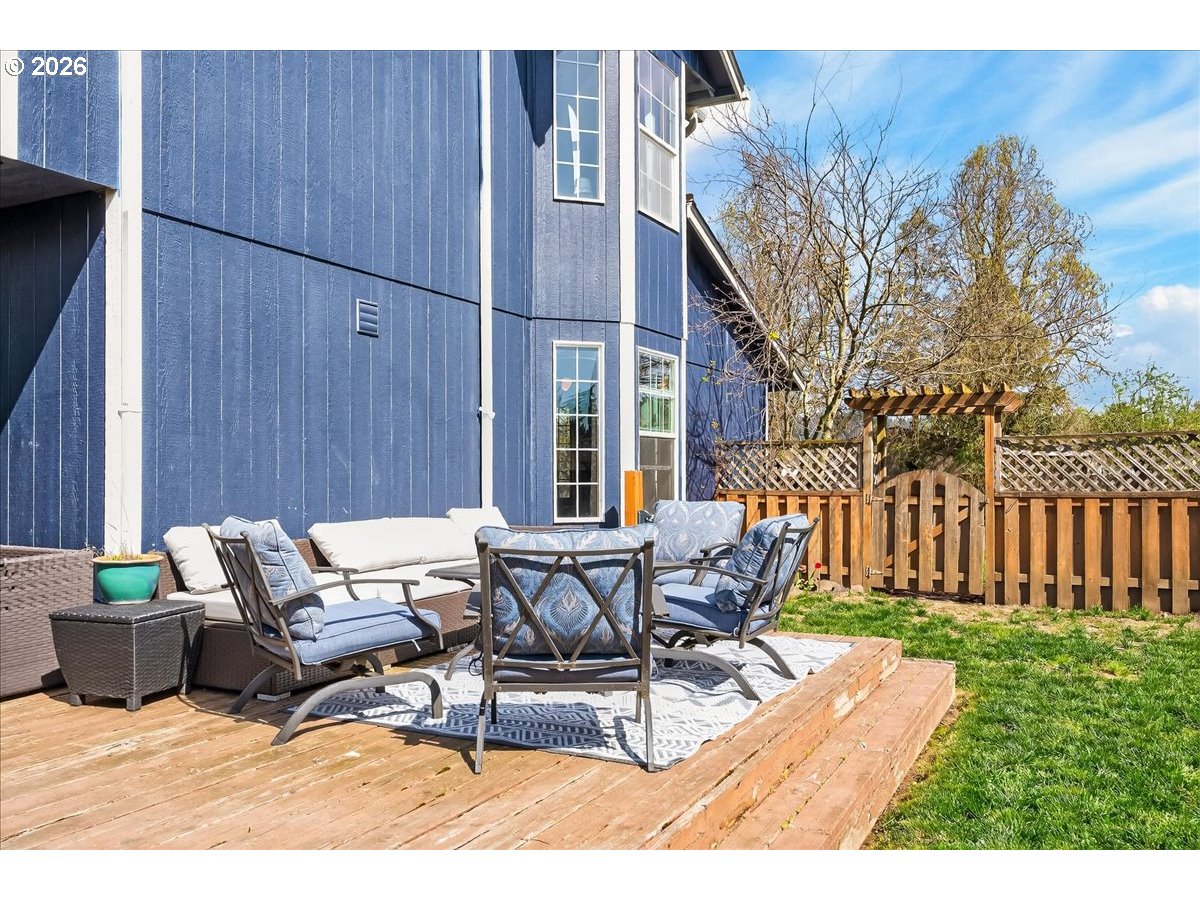 Light, bright, and beautifully maintained—this inviting 4-bedroom, 2.5-bath home offers comfort, functionality, and space to truly enjoy. Situated on a spacious lot in the community of Lafayette—nestled in the heart of Oregon wine country—this property offers the perfect blend of small-town charm and convenience, just a short drive to both Newberg and McMinnville.The thoughtfully designed kitchen serves as the heart of the home, opening seamlessly to the family room, formal dining, and living areas—perfect for hosting gatherings or relaxing with loved ones. Features include a central island, eat bar, stainless steel appliances, and a pantry for added convenience. Durable laminate flooring flows throughout the main level, enhancing both style and ease of maintenance. Upstairs, the generously sized primary suite provides a private retreat, complete with double sinks and a walk-in closet. Three additional bedrooms offer flexibility for guests, home office space, or hobbies. Step outside to a fully fenced backyard featuring a deck—ideal for outdoor dining, entertaining, or simply unwinding. A toolshed adds extra storage for all your needs. New roof just installed, offering peace of mind for years to come. This well-appointed home combines space, comfort, location, and key updates—ready for its next chapter.