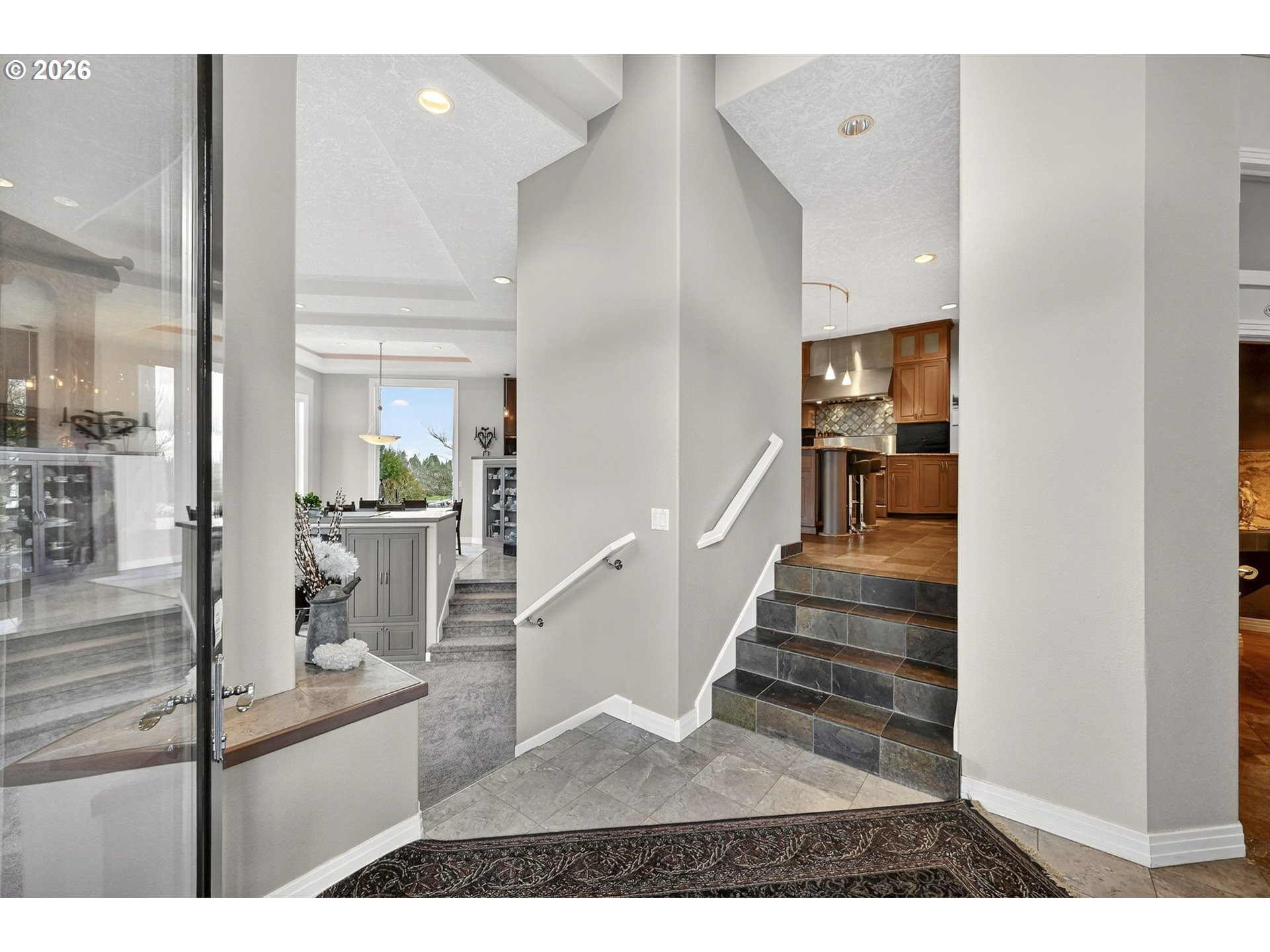 Experience the ultimate Oregon Wine Country lifestyle in this custom-built masterpiece, offering the scale and sophistication of a Napa estate on a premium XL corner lot. Flooded with natural light through massive windows, the interior boasts soaring ceilings and exquisite slate, marble, and artisan tile work throughout. A light-filled office near the front entrance is perfect for working from home or as a nursery on the main level. A true chef’s sanctuary, the gourmet kitchen features Sub-Zero refrigeration, a six-burner gas range, and a private wine cellar, perfectly complemented by a main-level primary suite with a spa-inspired jetted tub and dual tile shower. The fully fenced, resort-style grounds are an entertainer's dream, featuring a stunning water feature, peaceful koi pond, and a large covered patio with a fire pit—all meticulously maintained with a newer furnace and water heater for a seamless, turnkey transition to luxury Pacific Northwest living.