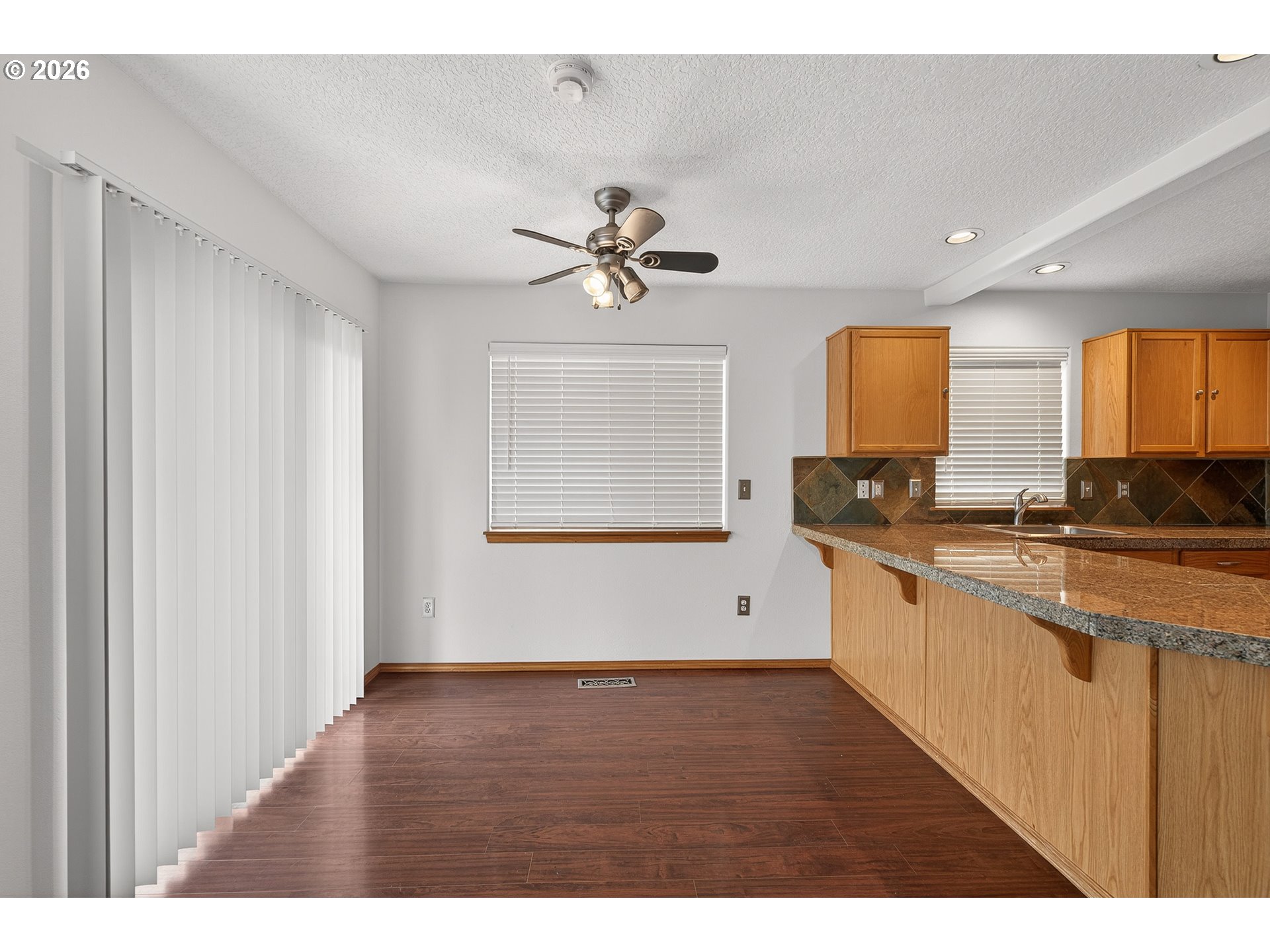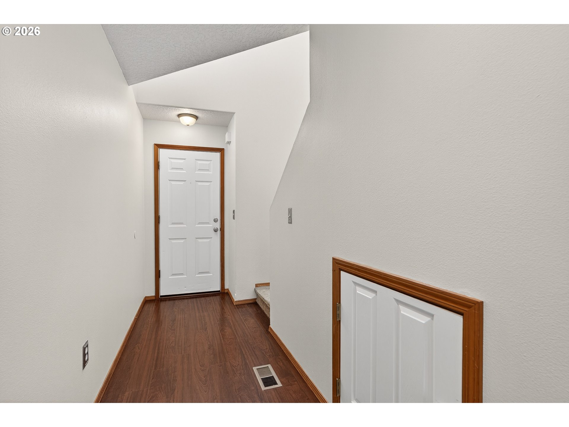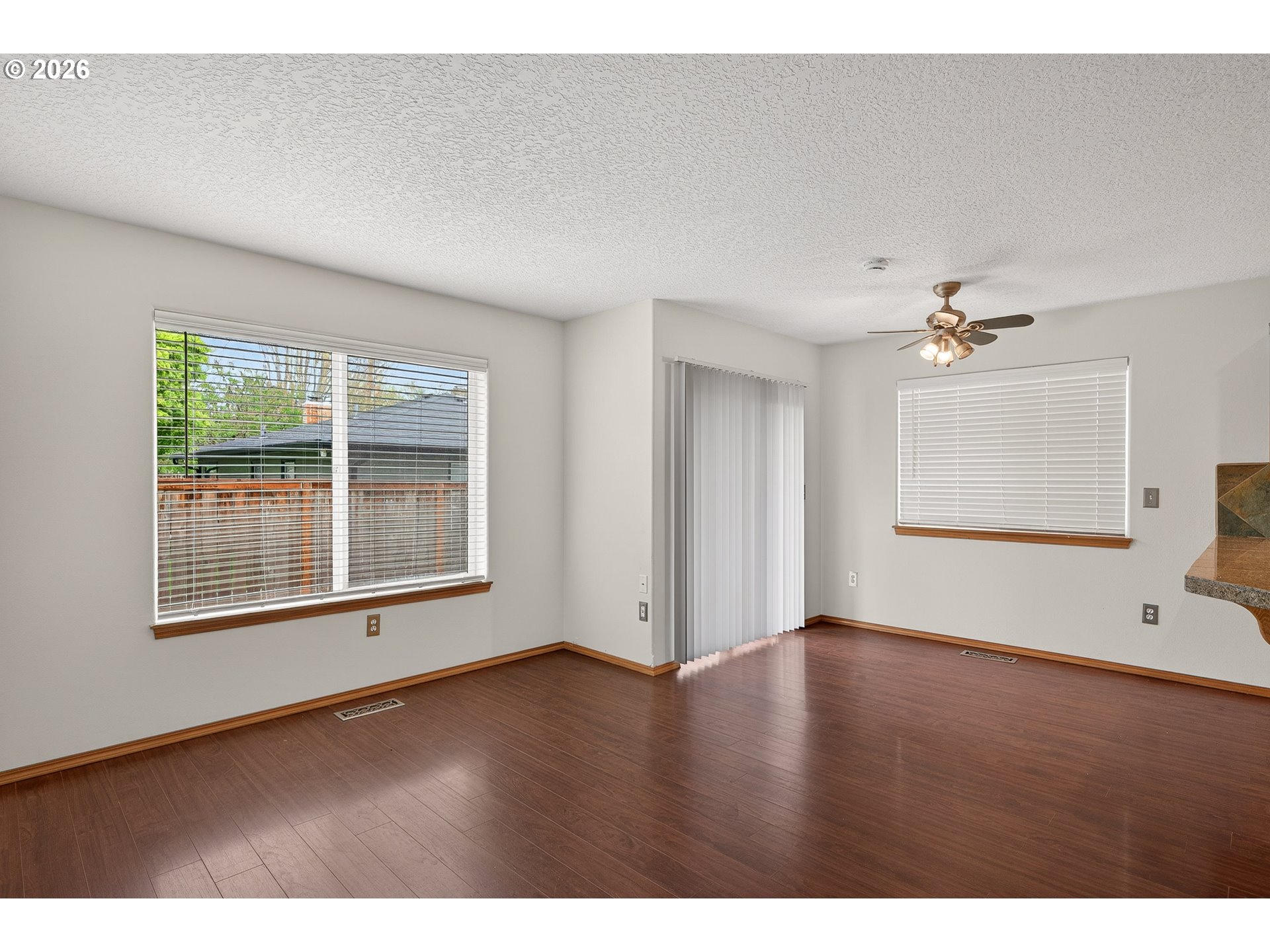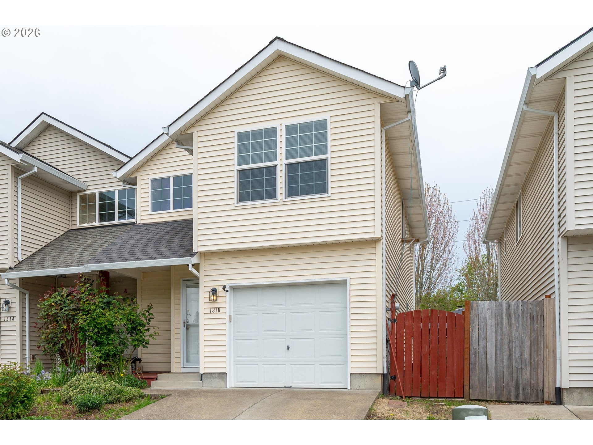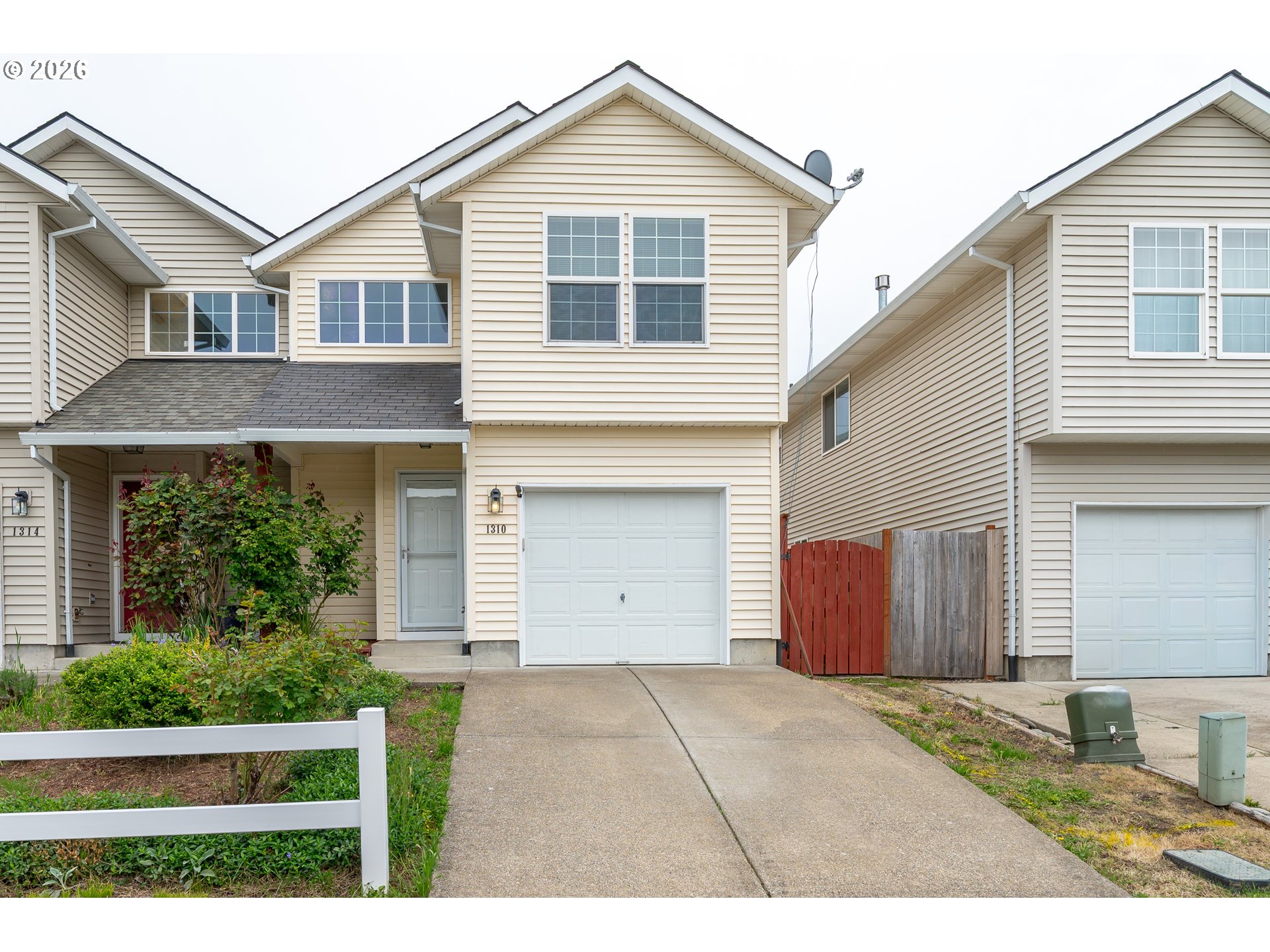 Updated attached home @ Creekside. Great Newberg location near parks, schools, & shopping. Open great room style kitchen living and dining area, wood floors throughout main level, kitchen with eat bar, granite tile countertop- new oven/stove, new sink. Vaulted primary suite with walk in closet & In-suite bathroom. Upper level laundry closet. Fenced back yard with decking. NO HOA fee.