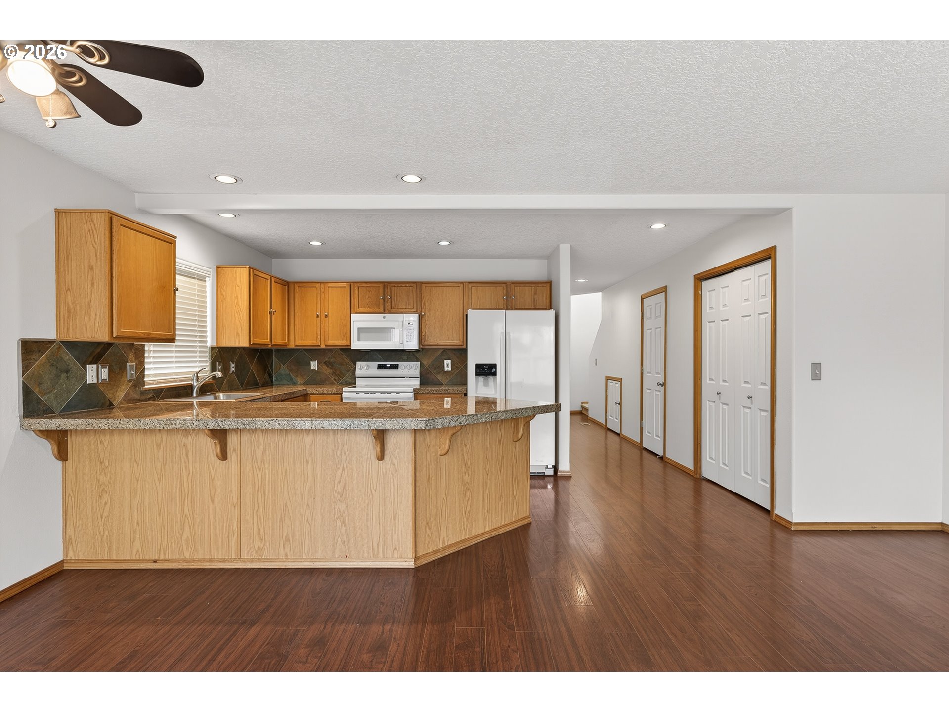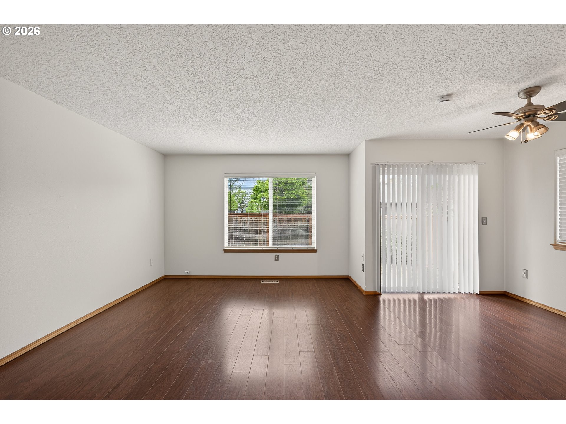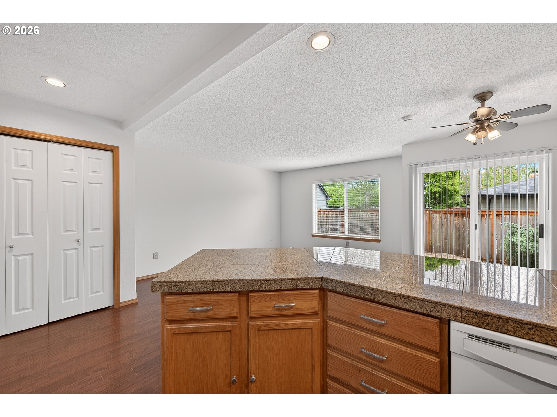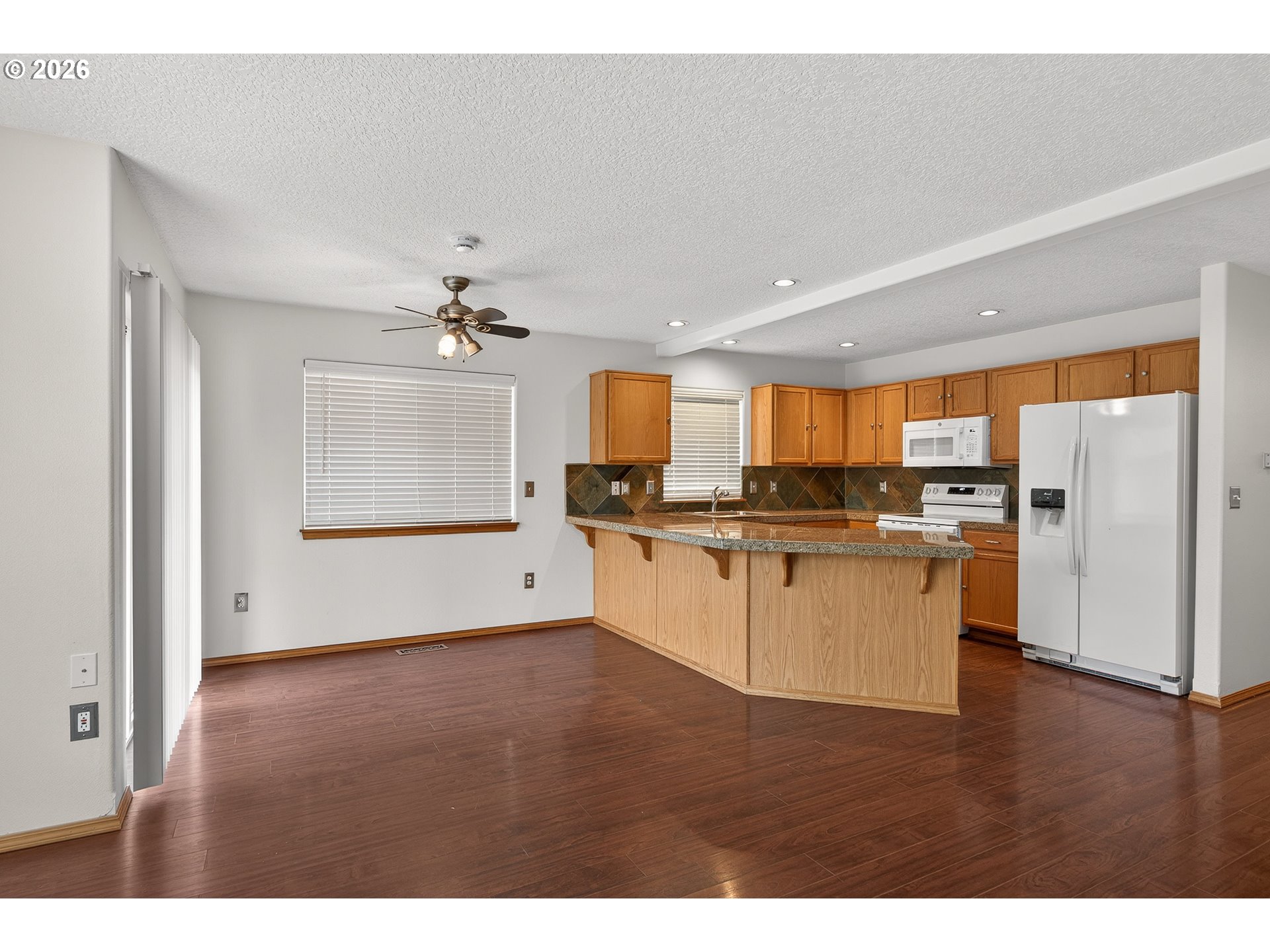 Updated attached home @ Creekside. Great Newberg location near parks, schools, & shopping. Open great room style kitchen living and dining area, wood floors throughout main level, kitchen with eat bar, granite tile countertop- new oven/stove, new sink. Vaulted primary suite with walk in closet & In-suite bathroom. Upper level laundry closet. Fenced back yard with decking. NO HOA fee.