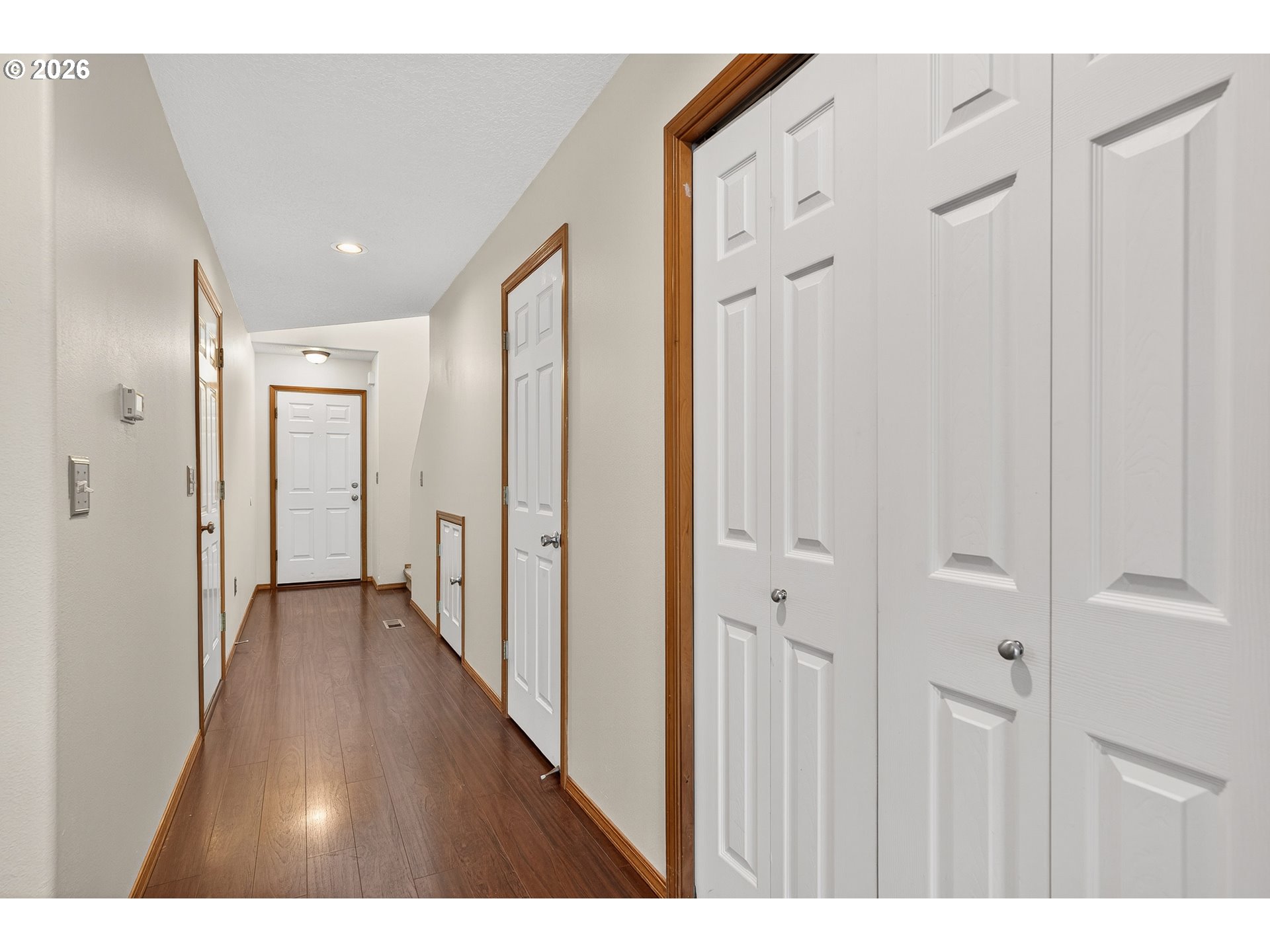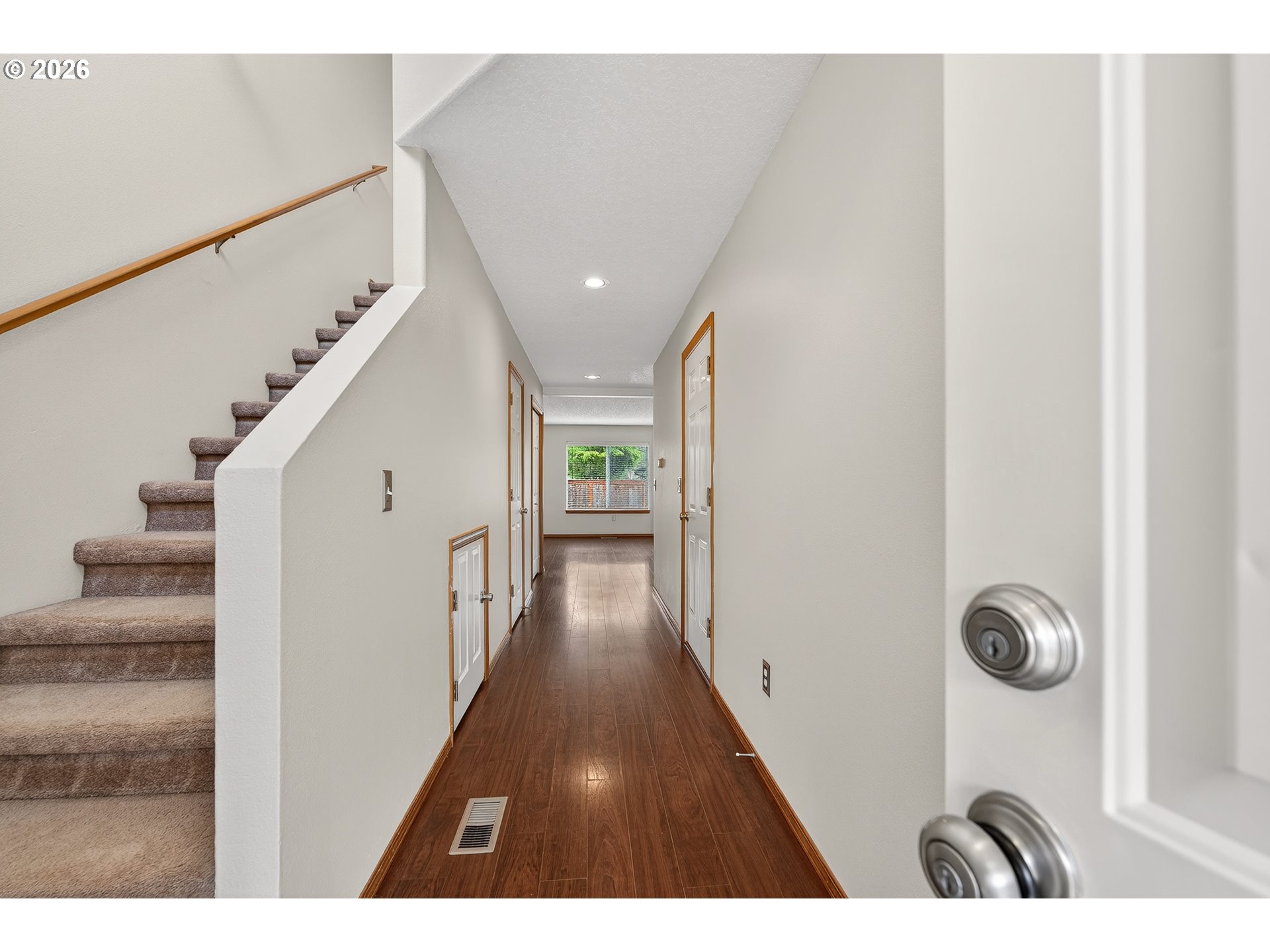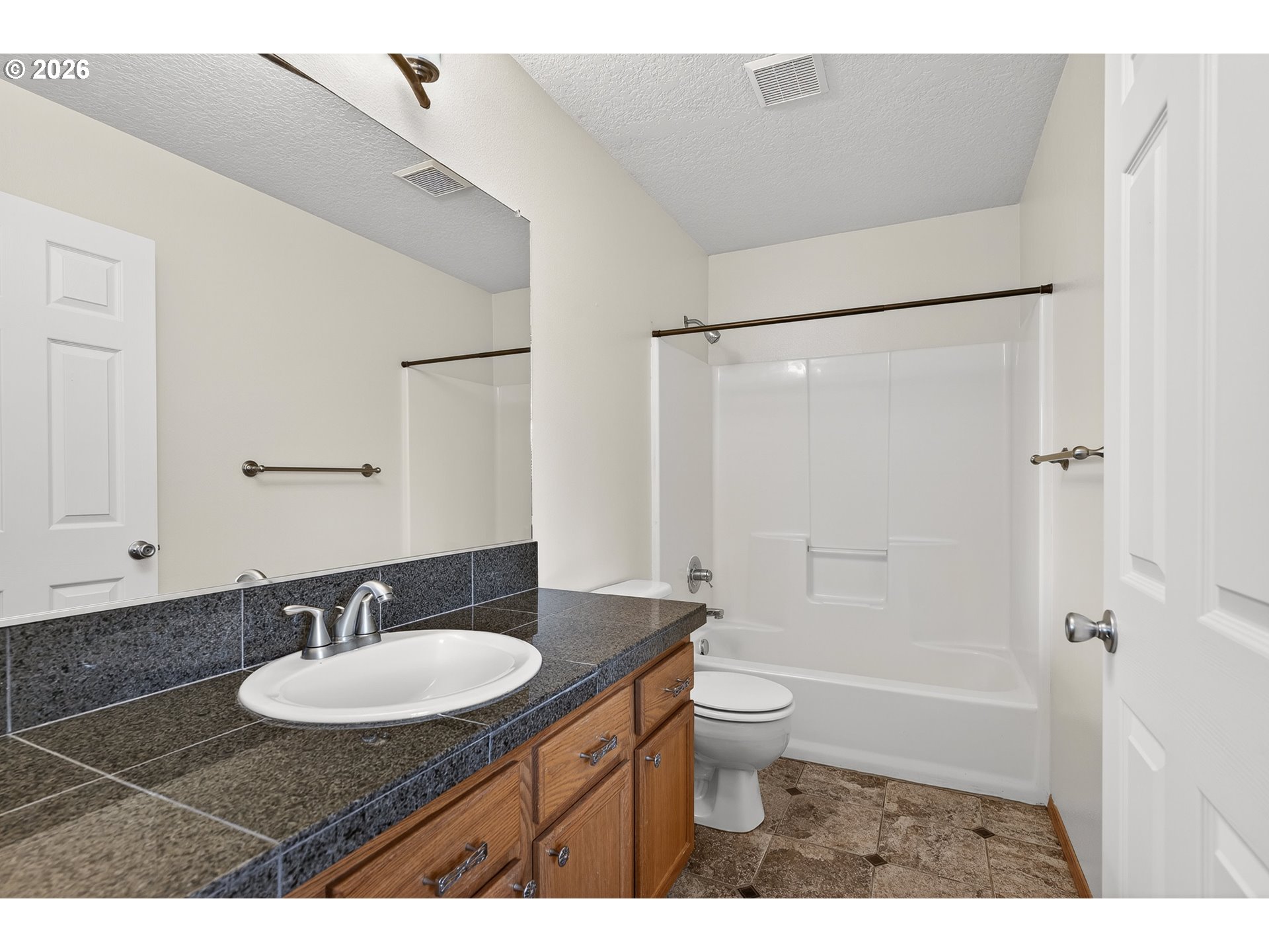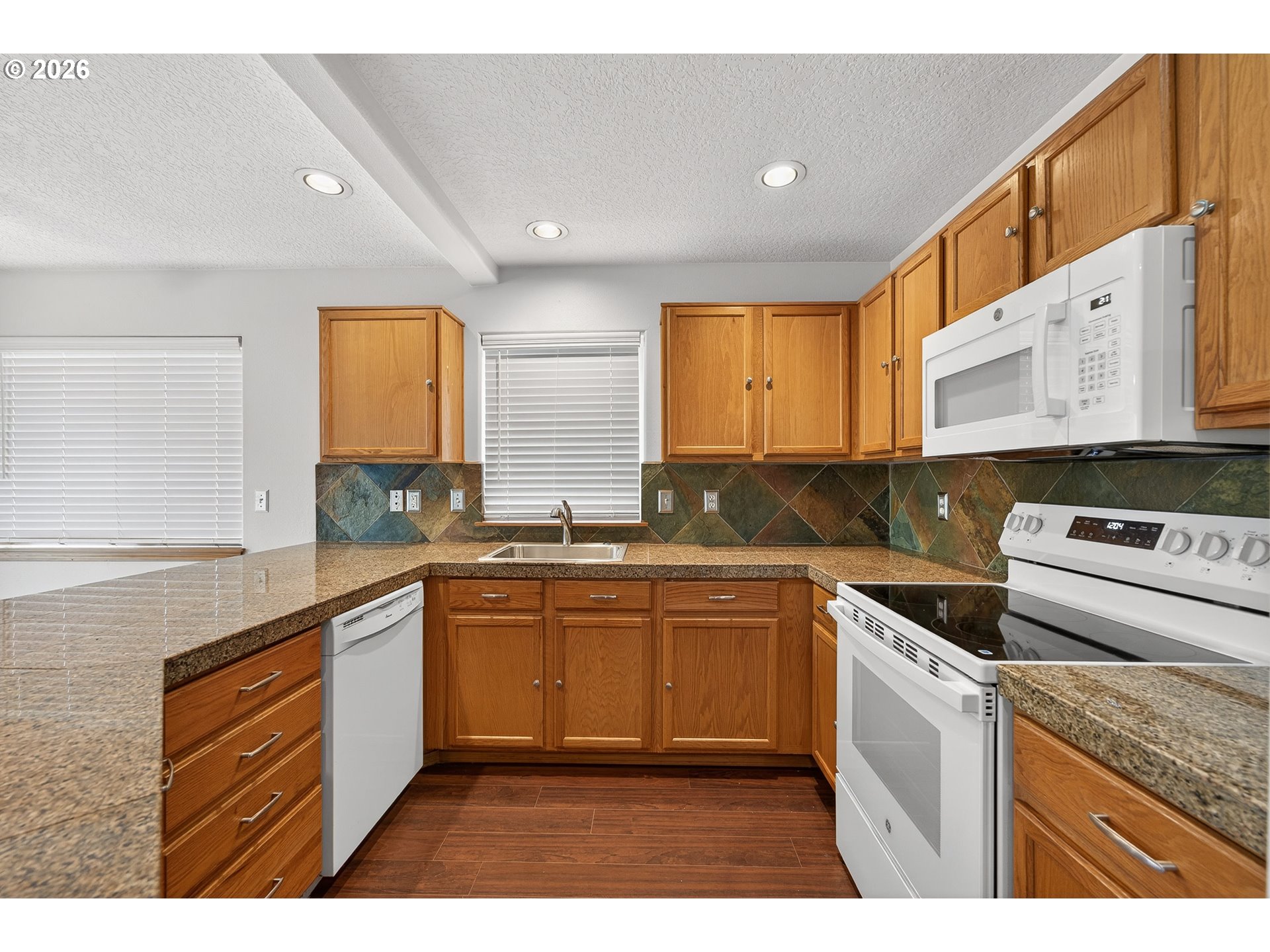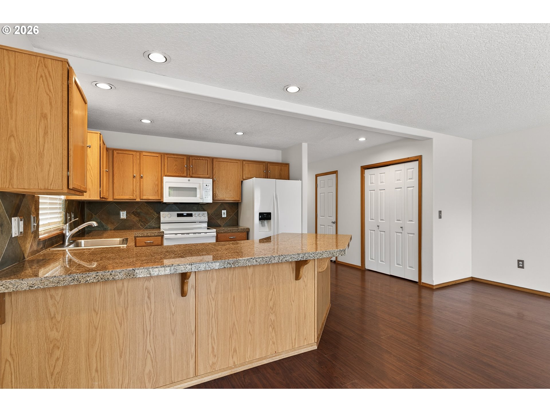 Updated attached home @ Creekside. Great Newberg location near parks, schools, & shopping. Open great room style kitchen living and dining area, wood floors throughout main level, kitchen with eat bar, granite tile countertop- new oven/stove, new sink. Vaulted primary suite with walk in closet & In-suite bathroom. Upper level laundry closet. Fenced back yard with decking. NO HOA fee.