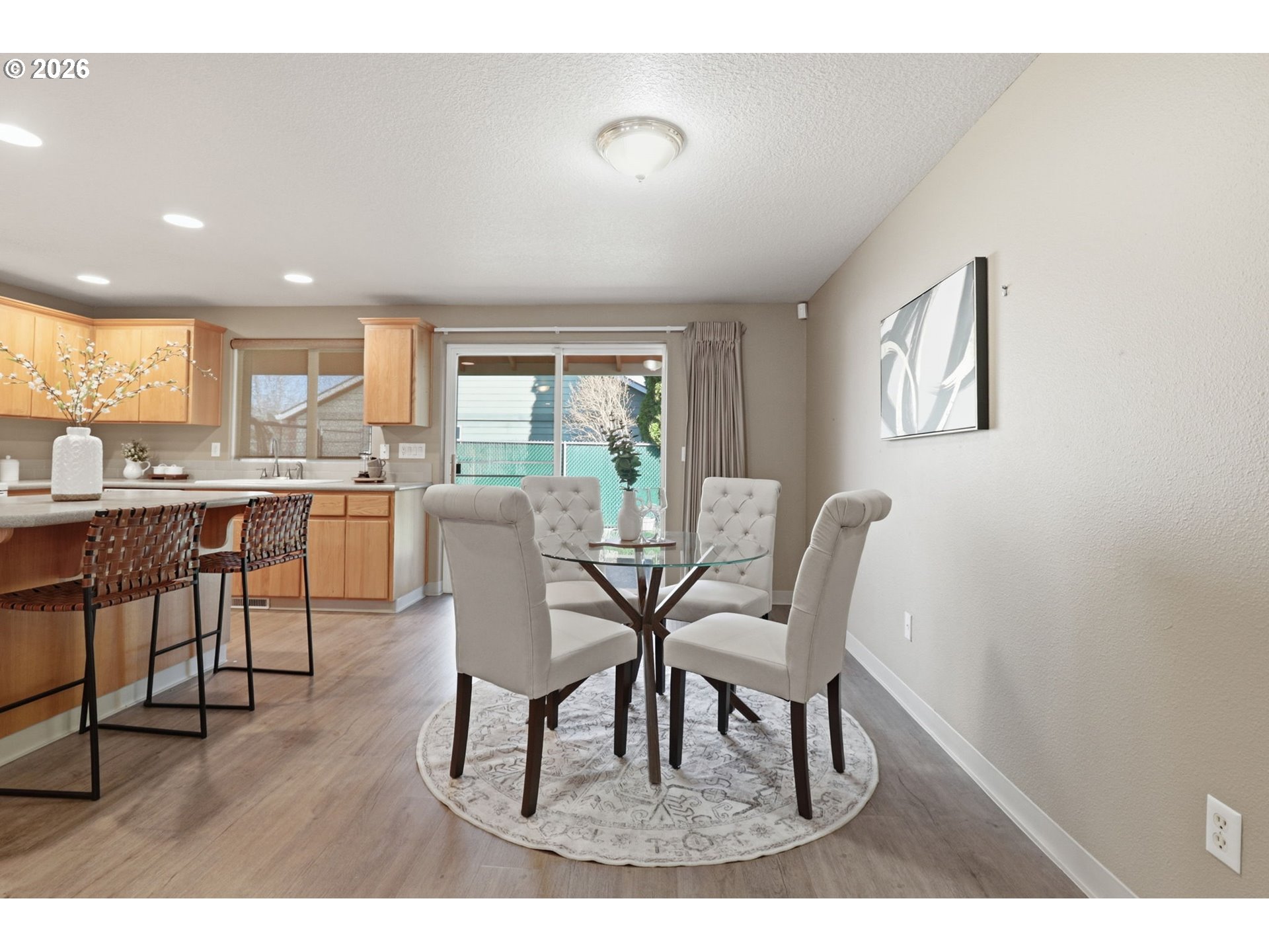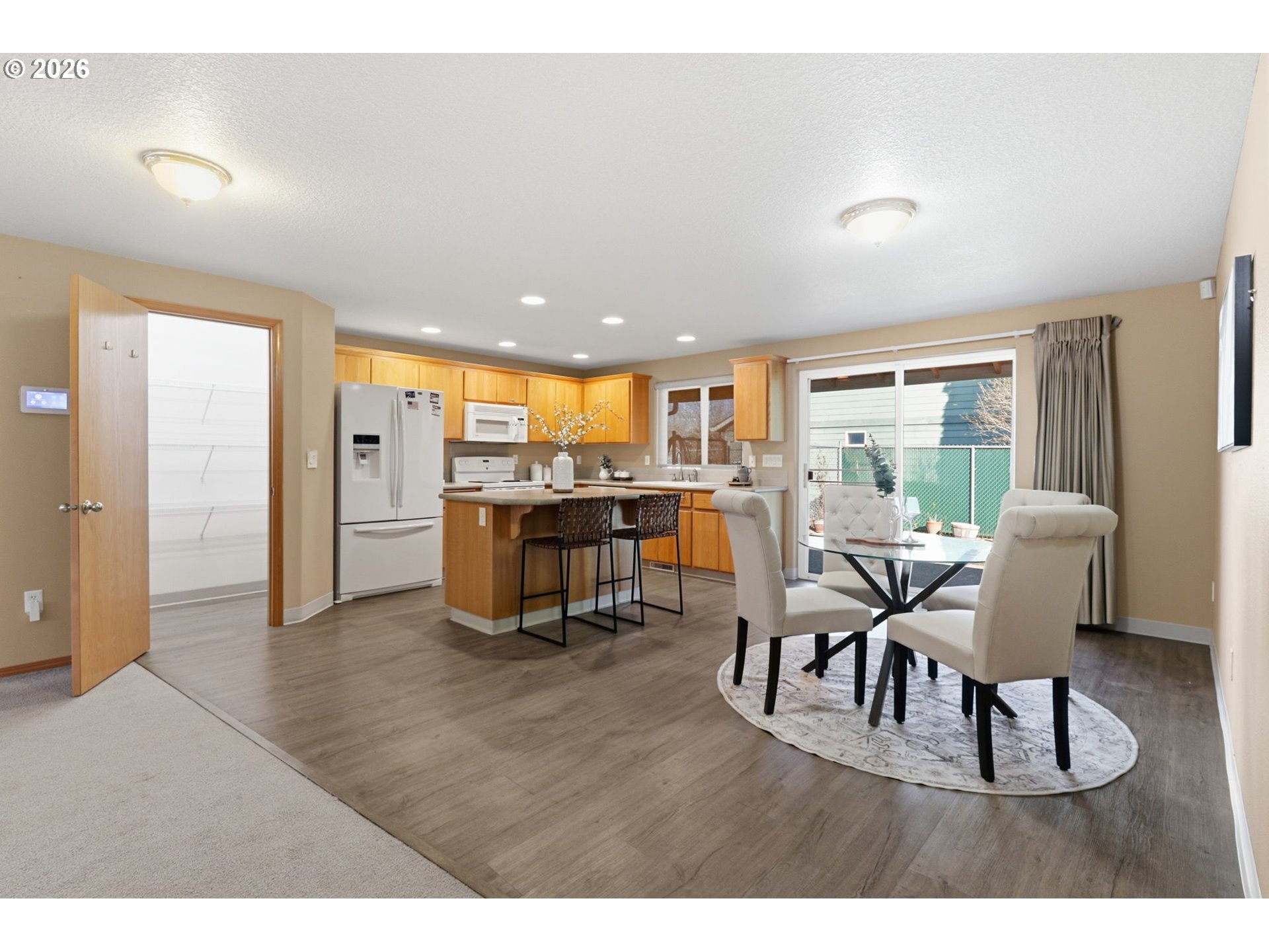Set on a corner lot in Yamhill County's McMinnville wine country, this one-level ranch delivers easy living with an open great-room plan, vaulted ceilings, and a gas fireplace. The kitchen keeps everyone connected with a center island, pantry, and generous prep space that flows to dining and living. The primary suite is truly spacious, featuring multiple walk-in closets, an attached private retreat area could be office, gym or nursery. Primary bath with jetted tub. Two additional bedrooms and a full hall bath offer flexible space for guests, hobbies, or a home workspace. An attached 2-car garage plus RV parking adds everyday convenience, while the fenced backyard offers a patio, sprinklers, and side-yard storage with tool shed. Just a couple minutes to downtown shops, restaurants, hospital and hundreds of local wineries.
