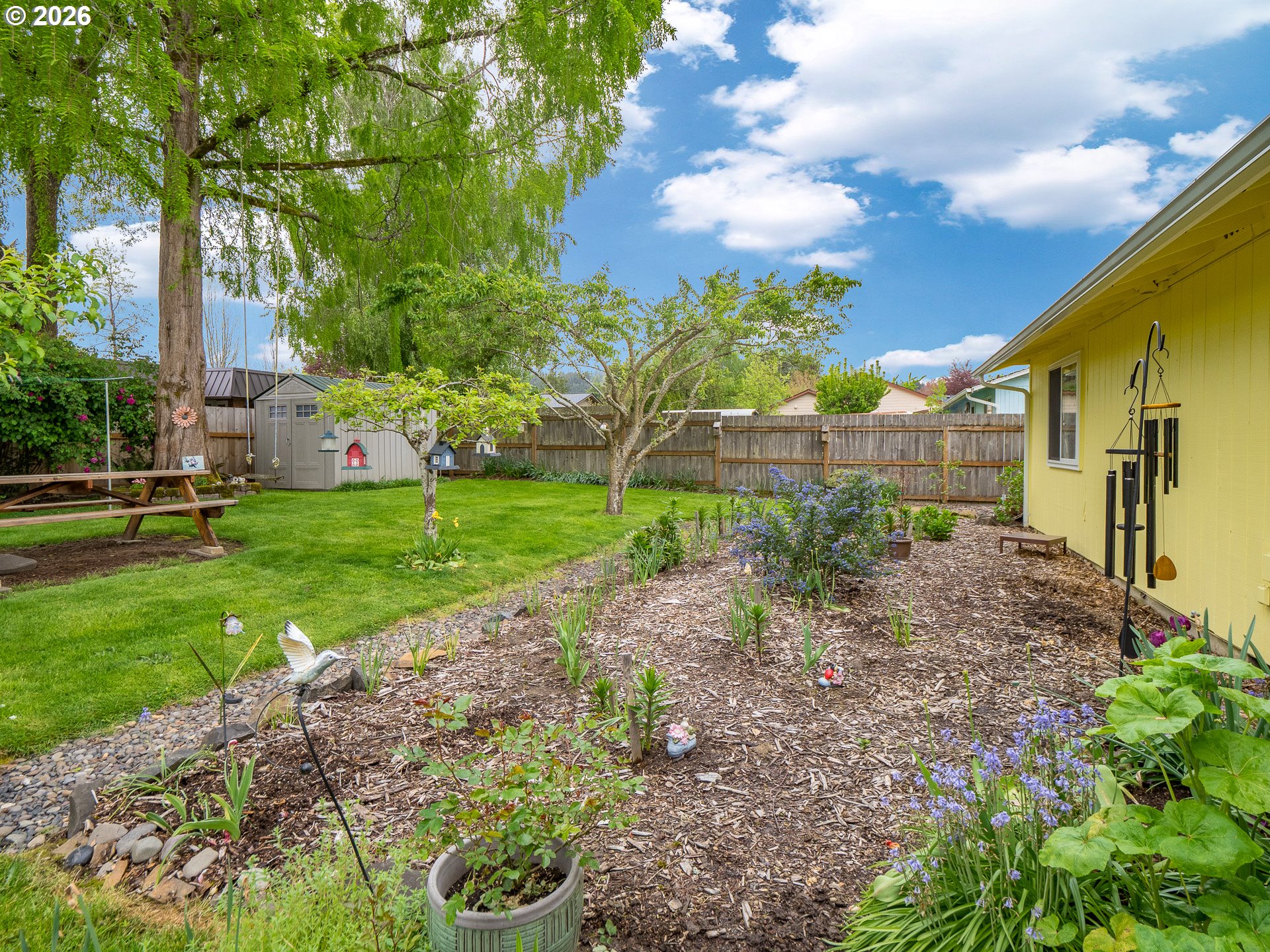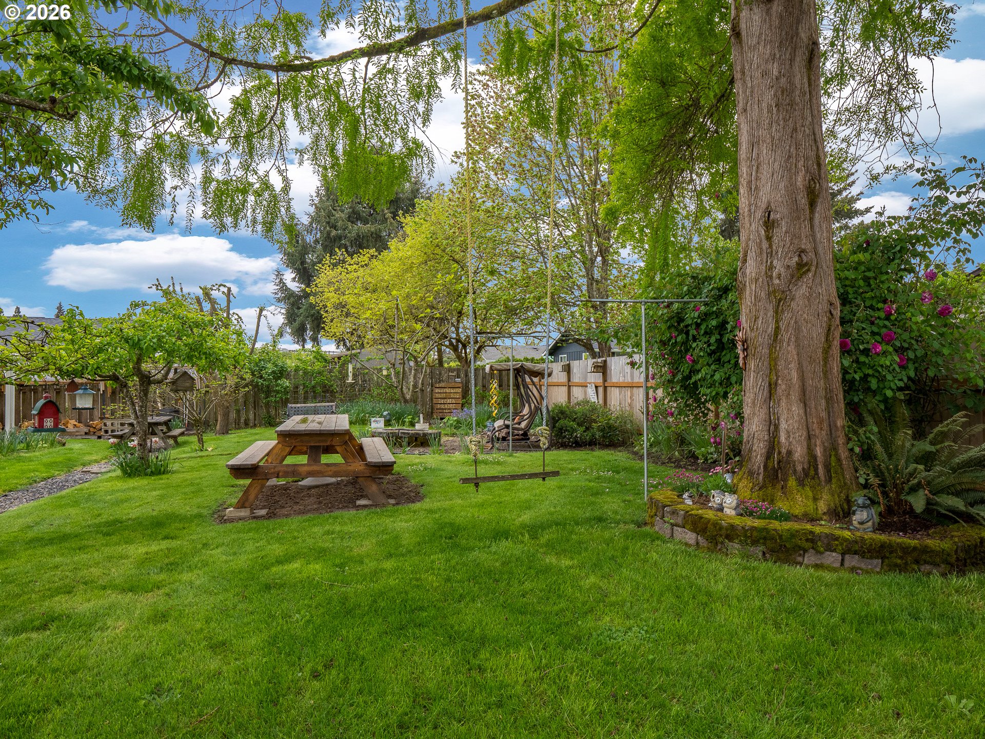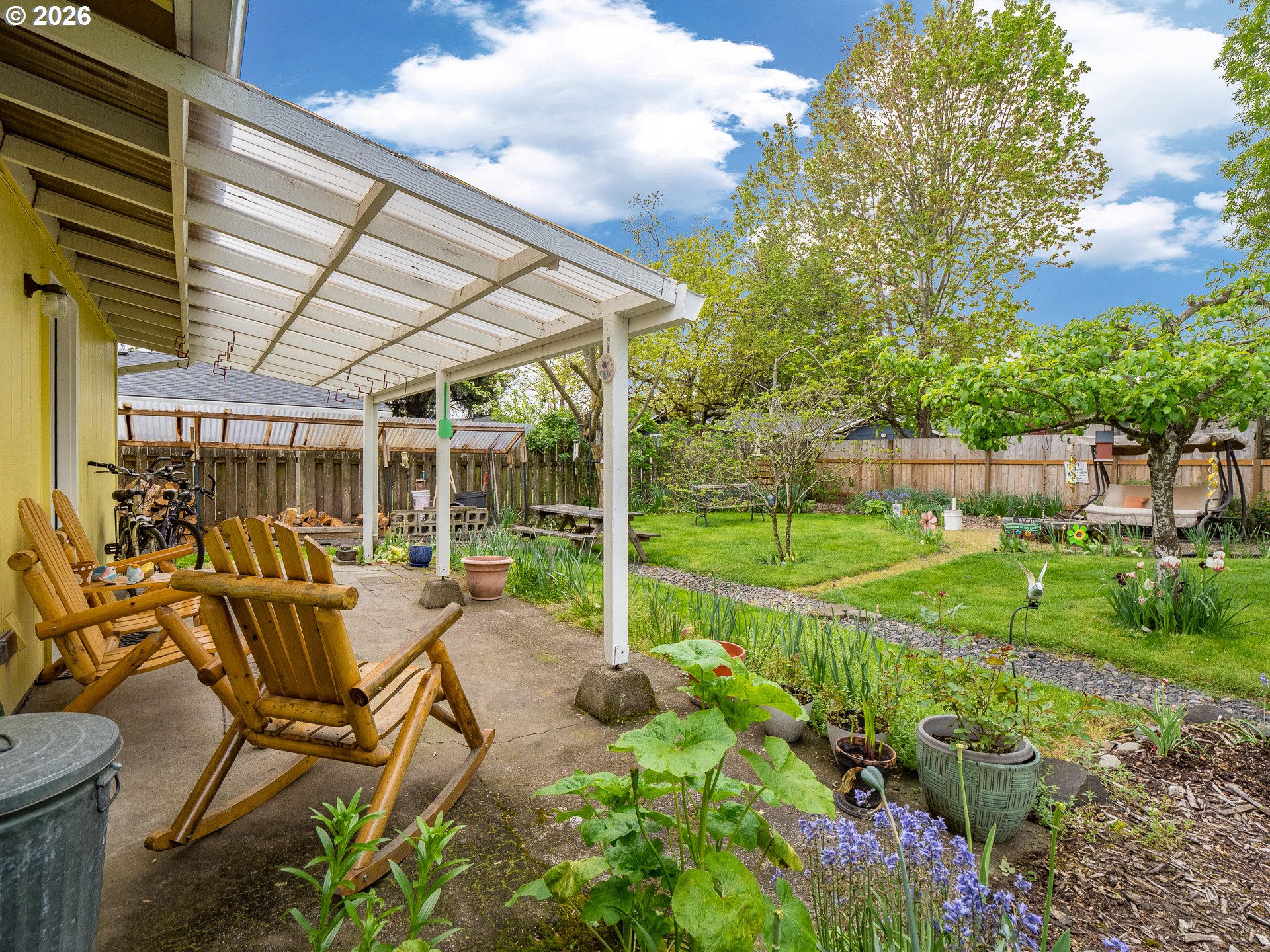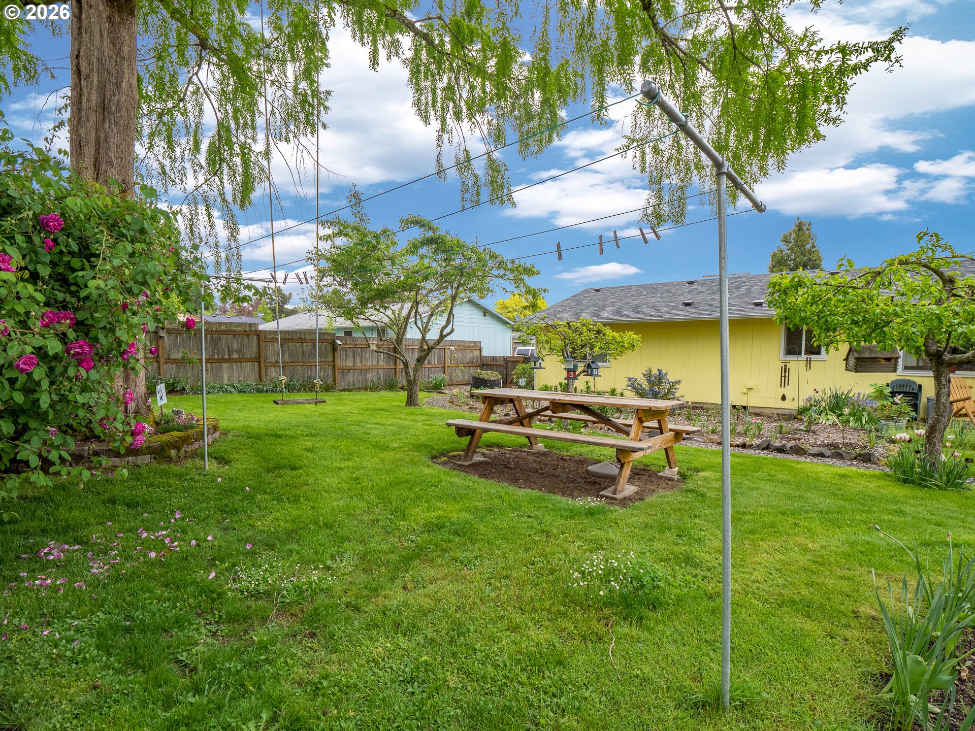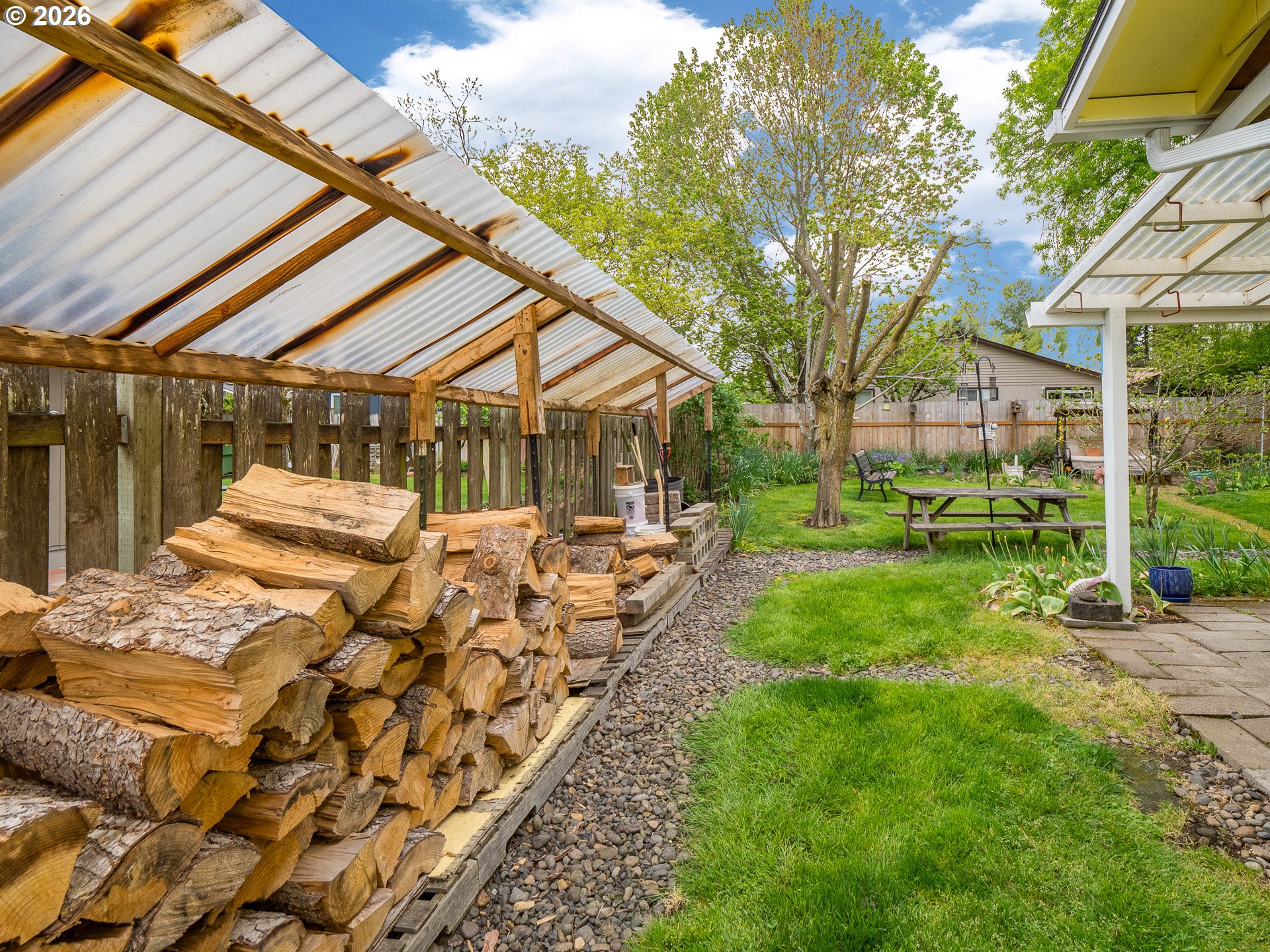 Right in the heart of Oregon wine country, this thoughtfully updated single-level ranch keeps things simple, comfortable, and easy to love. A smart garage conversion creates a finished home office while still preserving space for storage, tools, or outdoor gear. Need a full garage again down the road? The option is there. Inside, laminate flooring runs throughout the home, creating a clean, cohesive feel, while a large picture window fills the living room with natural light. The kitchen has been refreshed with updated counters, sink, and backsplash, and the home is dialed in for everyday comfort with cadet heaters in every room, a high-rise toilet, and a walk-in shower with added grab bars. Recent improvements over the past three years include a new roof, gutters, double-pane windows, water heater, and backyard fencing, along with a new bathroom subfloor and flooring. Step outside and the space really opens up. A covered patio sets the stage for year-round use, while the gravel firepit area, firewood shelter, and walk-in storage shed add both function and charm. Mature trees provide shade across the yard, complemented by a large, established rose garden. A french drain system surrounds the home for added peace of mind. Connected and ready for modern living with Ziply Fiber already installed, this is a well-cared-for home that blends practical updates with relaxed wine country living.
