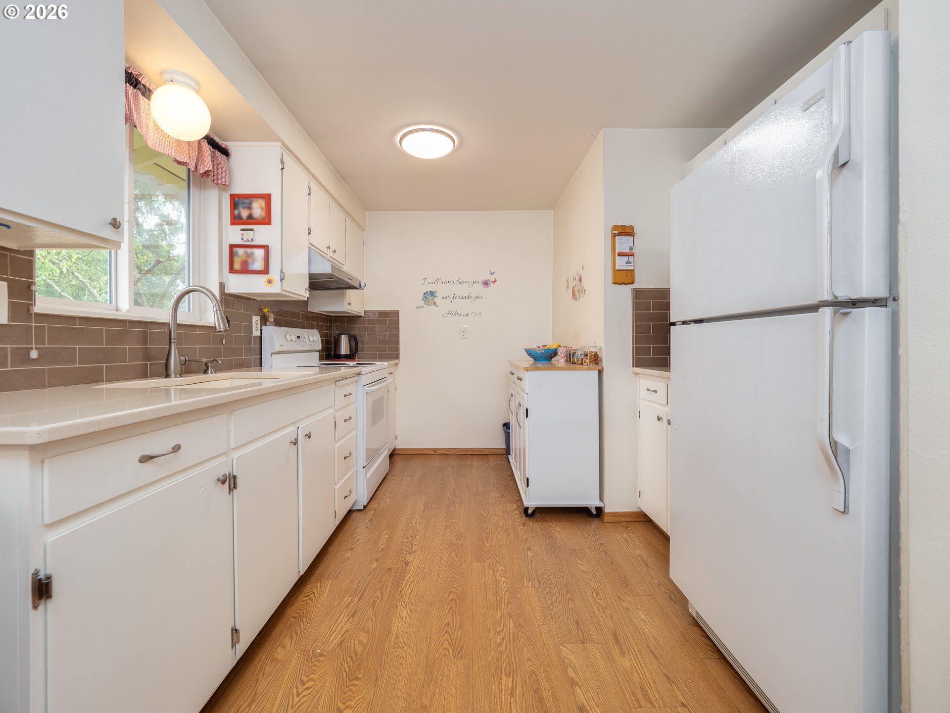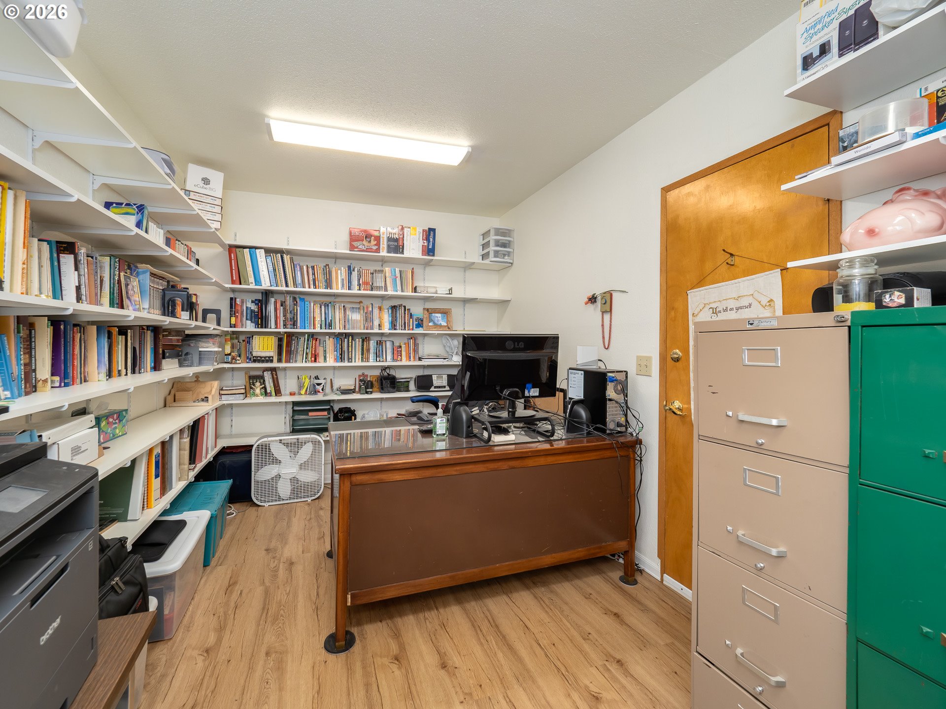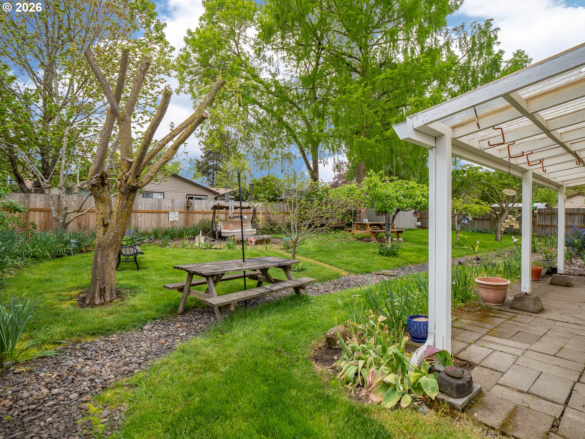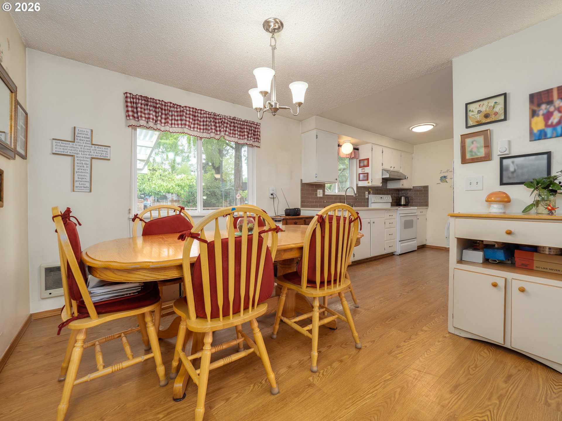 Right in the heart of Oregon wine country, this thoughtfully updated single-level ranch keeps things simple, comfortable, and easy to love. A smart garage conversion creates a finished home office while still preserving space for storage, tools, or outdoor gear. Need a full garage again down the road? The option is there. Inside, laminate flooring runs throughout the home, creating a clean, cohesive feel, while a large picture window fills the living room with natural light. The kitchen has been refreshed with updated counters, sink, and backsplash, and the home is dialed in for everyday comfort with cadet heaters in every room, a high-rise toilet, and a walk-in shower with added grab bars. Recent improvements over the past three years include a new roof, gutters, double-pane windows, water heater, and backyard fencing, along with a new bathroom subfloor and flooring. Step outside and the space really opens up. A covered patio sets the stage for year-round use, while the gravel firepit area, firewood shelter, and walk-in storage shed add both function and charm. Mature trees provide shade across the yard, complemented by a large, established rose garden. A french drain system surrounds the home for added peace of mind. Connected and ready for modern living with Ziply Fiber already installed, this is a well-cared-for home that blends practical updates with relaxed wine country living.