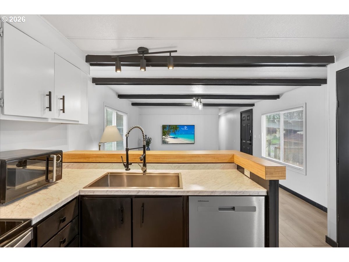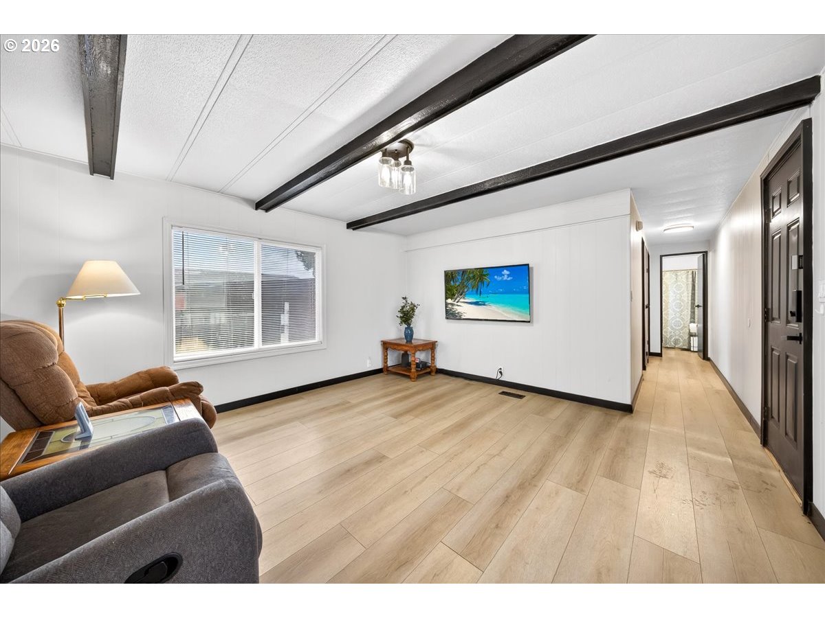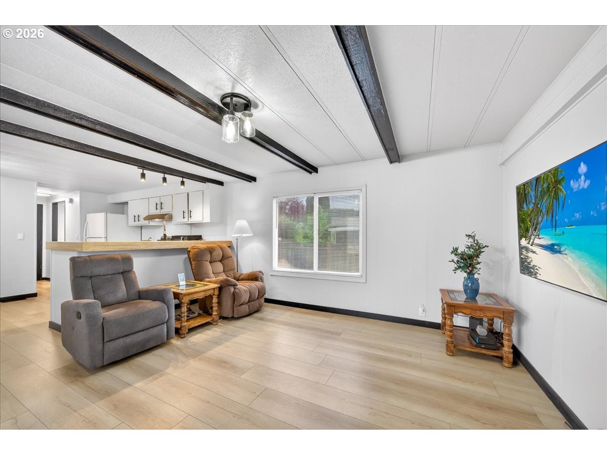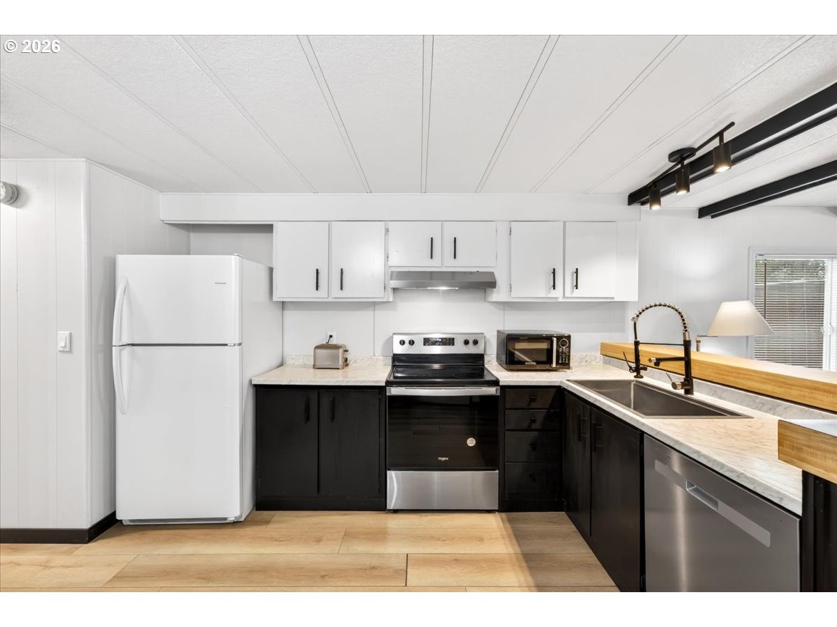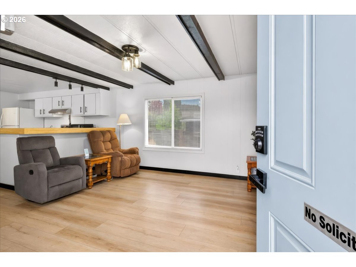 Completely updated in 2024 with fresh paint, new windows, flooring, lighting, appliances, plumbing, faucets, and countertops. Big windows fill the home with natural light, creating a bright and welcoming feel throughout. Enjoy a large open yard with plenty of space to spread out, room for all your cars to park, and a big shed for additional storage. The community offers open streets, ample parking, quiet neighbors, and fun events like BBQs and garden gatherings