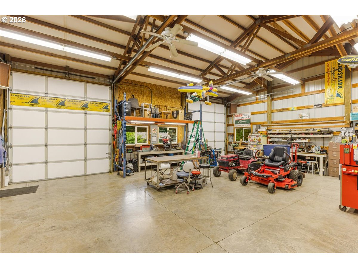 Imagine arriving home via your own private, paved driveway, leading to a manicured property in the heart of wine country only minutes from Newberg. The setting is quiet and peaceful, you will feel like you're in the country yet you're still only minutes from Newberg shopping and restaurants. This well-maintained split-level home exudes care and attention in every detail. The lower level features its own private entrance, complete with a sitting room, bedroom, bathroom, and laundry—easily closed off from the main level for potential dual living. Upstairs, the kitchen, dining, and living areas flow seamlessly to a beautiful covered deck overlooking the lush landscape along the private drive.With three full bathrooms, the layout offers remarkable flexibility. The primary suite boasts a spacious walk-in closet, walk-in shower, and private deck with views of the back portion of the property. The kitchen showcases granite countertops, stainless steel appliances, and oak cabinetry with pull-out drawers. Extensive landscaping is enhanced by a well-kept sprinkler system in both the front and back yards, complemented by native plants. Outbuildings are in pristine condition, including a 30' x 36' shop built on 4" concrete with 220v power, fully plumbed for air, and an 80 gal air compressor in a sound-insulated room. There is a 12' x 12' insulated garden shed with power—perfect for a “she shed” or "man cave". An additional 12' x 20' covered storage shed for tools or equipment and a 5' x 7' well house built in 2025 with updated well pump and storage tank. Recent updates include: New 30-year roof (2019)Heat pump & 2-ton air handler (2016)Water heater (2018) Exterior paint (2023) New front sprinkler manifold with 7 valves (2024) and water filtration system for the well. High-speed Xfinity internet keeps you connected while you enjoy this peaceful, private retreat.Don't miss this opportunity to own a home in one of the most desirable areas in Newberg.