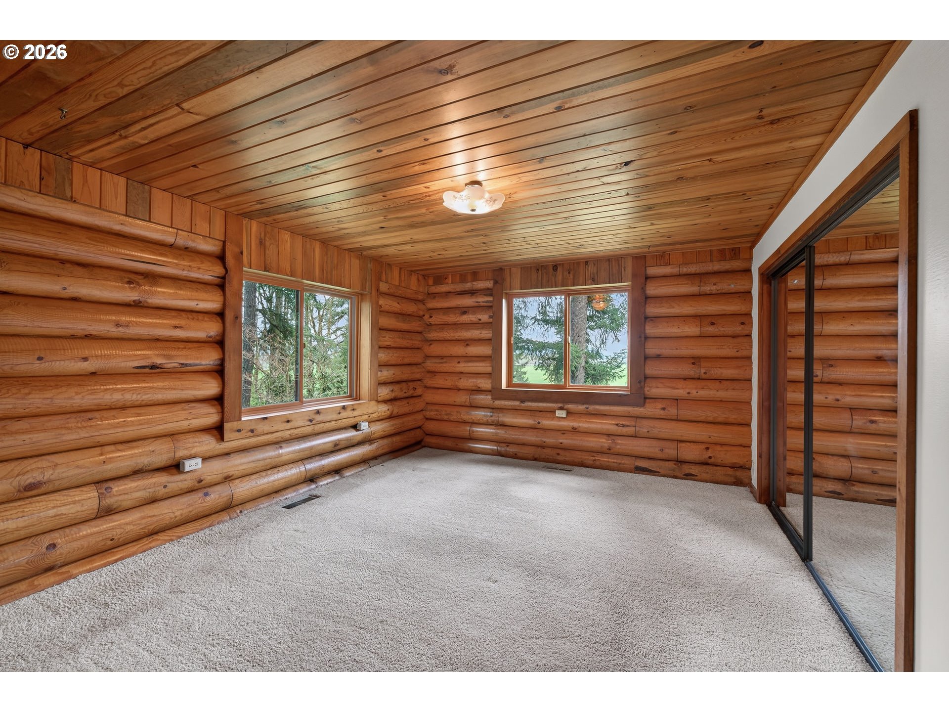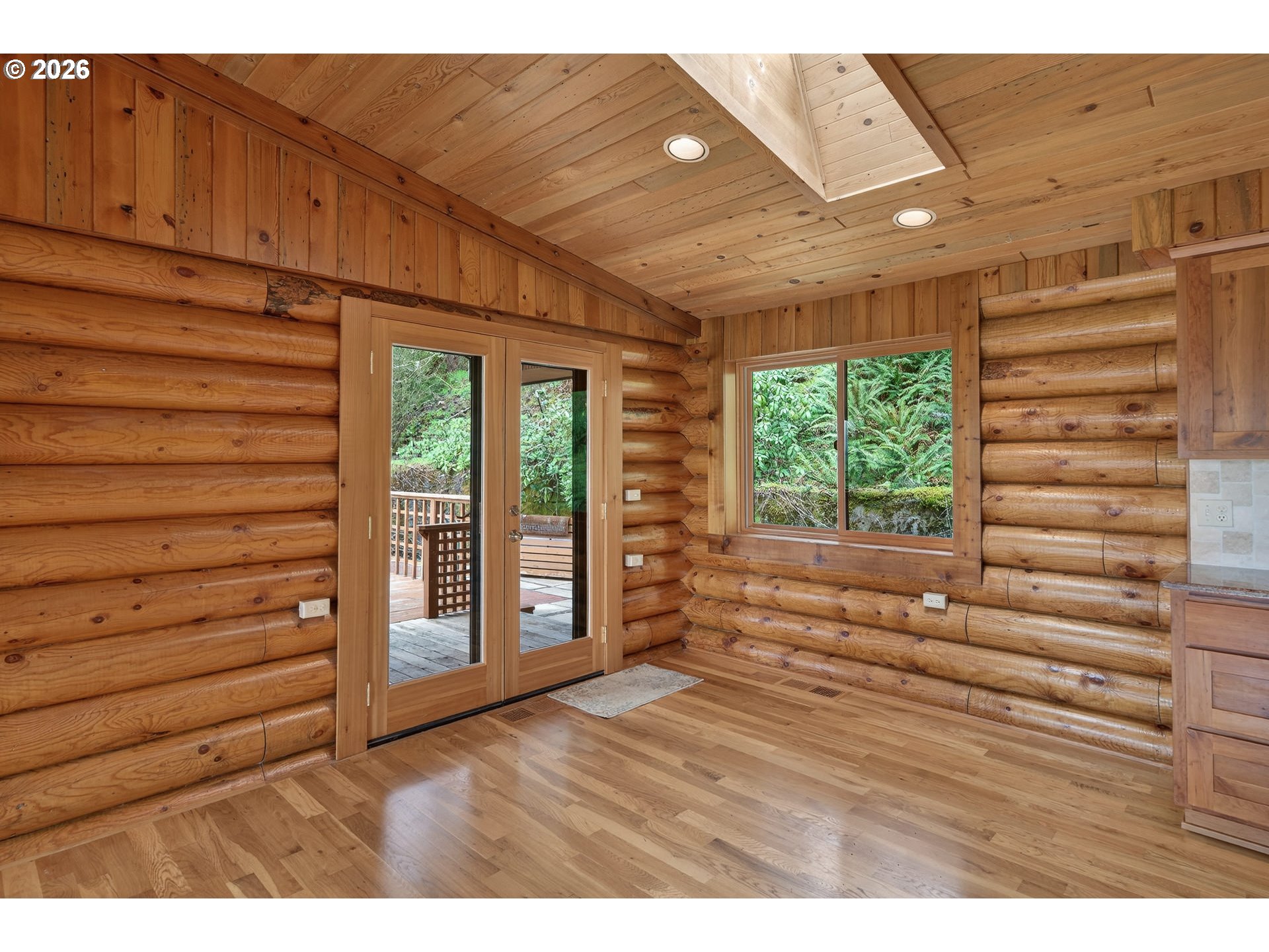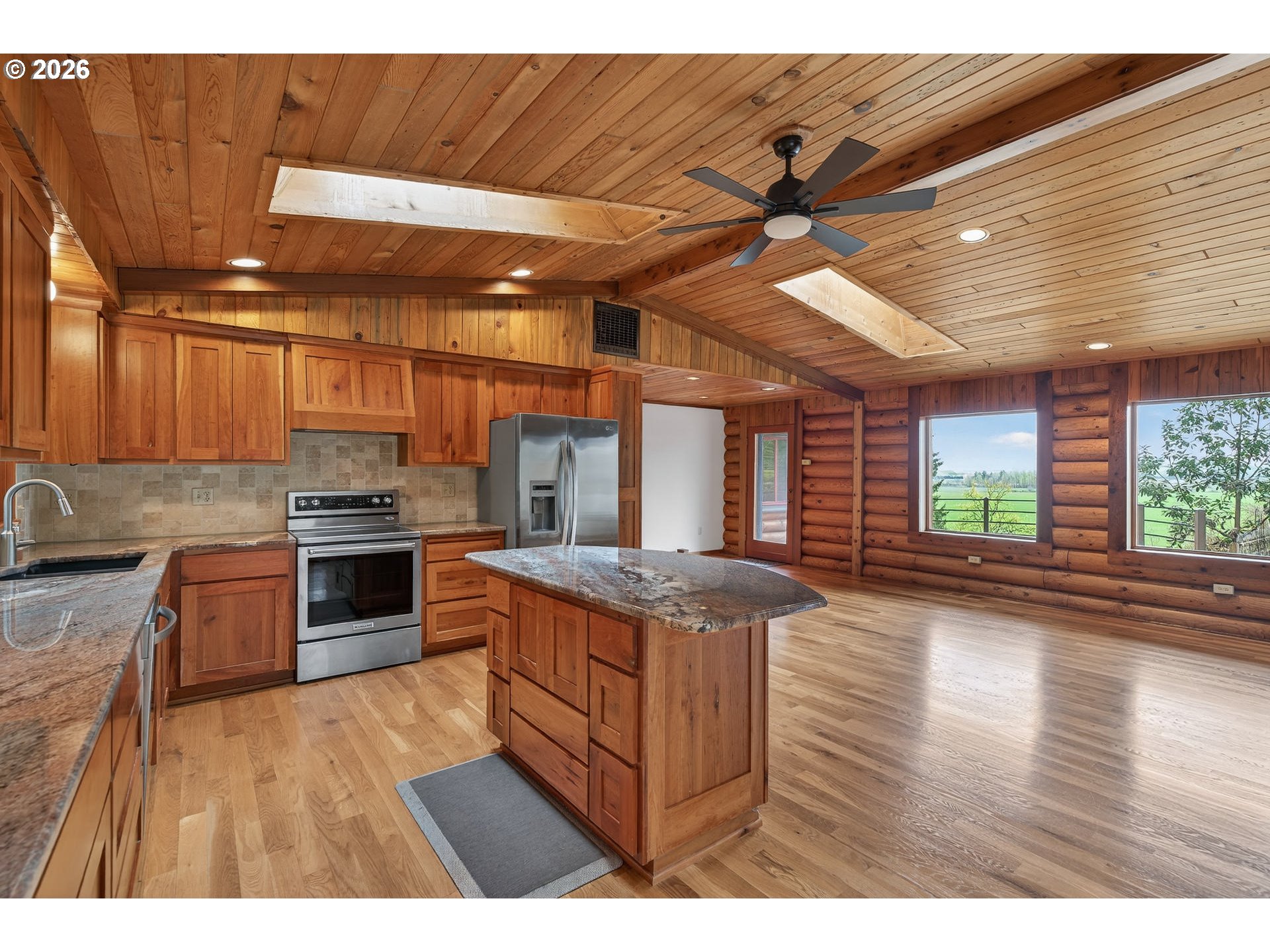 Experience peaceful country living in this beautiful log home set on 5.36 acres, offering endless views and serene surroundings. Designed with a modern touch, the open-concept living, kitchen, and dining areas create a warm and inviting space perfect for both relaxing and entertaining.This thoughtfully designed single-level home features three bedrooms, a versatile office/den, and a dedicated laundry room with ample storage. The kitchen is filled with natural light and boasts newer stainless steel appliances, a spacious island, granite countertops, and abundant cabinetry.Outside, the detached garage/shop provides incredible flexibility for hobbies, storage, or workspace needs. Unwind on the front patio as you take in the breathtaking scenery and enjoy watching local wildlife in their natural habitat.A rare opportunity to own a tranquil retreat with modern comforts and room to roam.