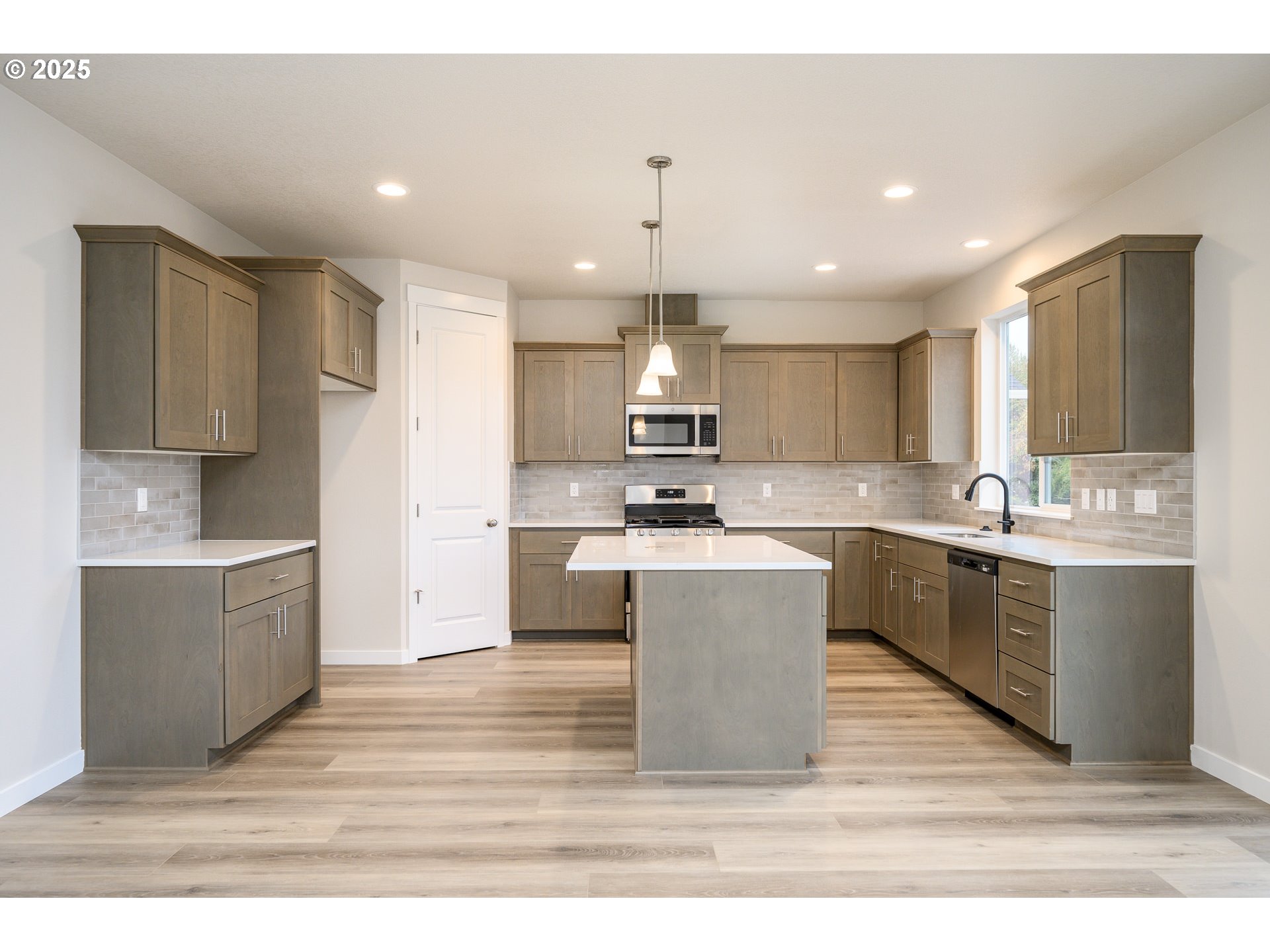 Enjoy the nature and wooded views! 4 Bedroom Home on Large 7500sqft Green Space Lot! Impressive Kitchen that is perfect for entertaining! Quartz counter tops, stainless steel gas appliances, beautiful tile backsplash, farmhouse sink, Island with seating, large walk-in pantry and tons of storage. Gas fireplace, lots of natural light, laminate flooring throughout the main level. Primary suite has two sinks, shower and large walk-in closet. Move in by Christmas!! End of year SAVINGS! Interior photos are of model home.