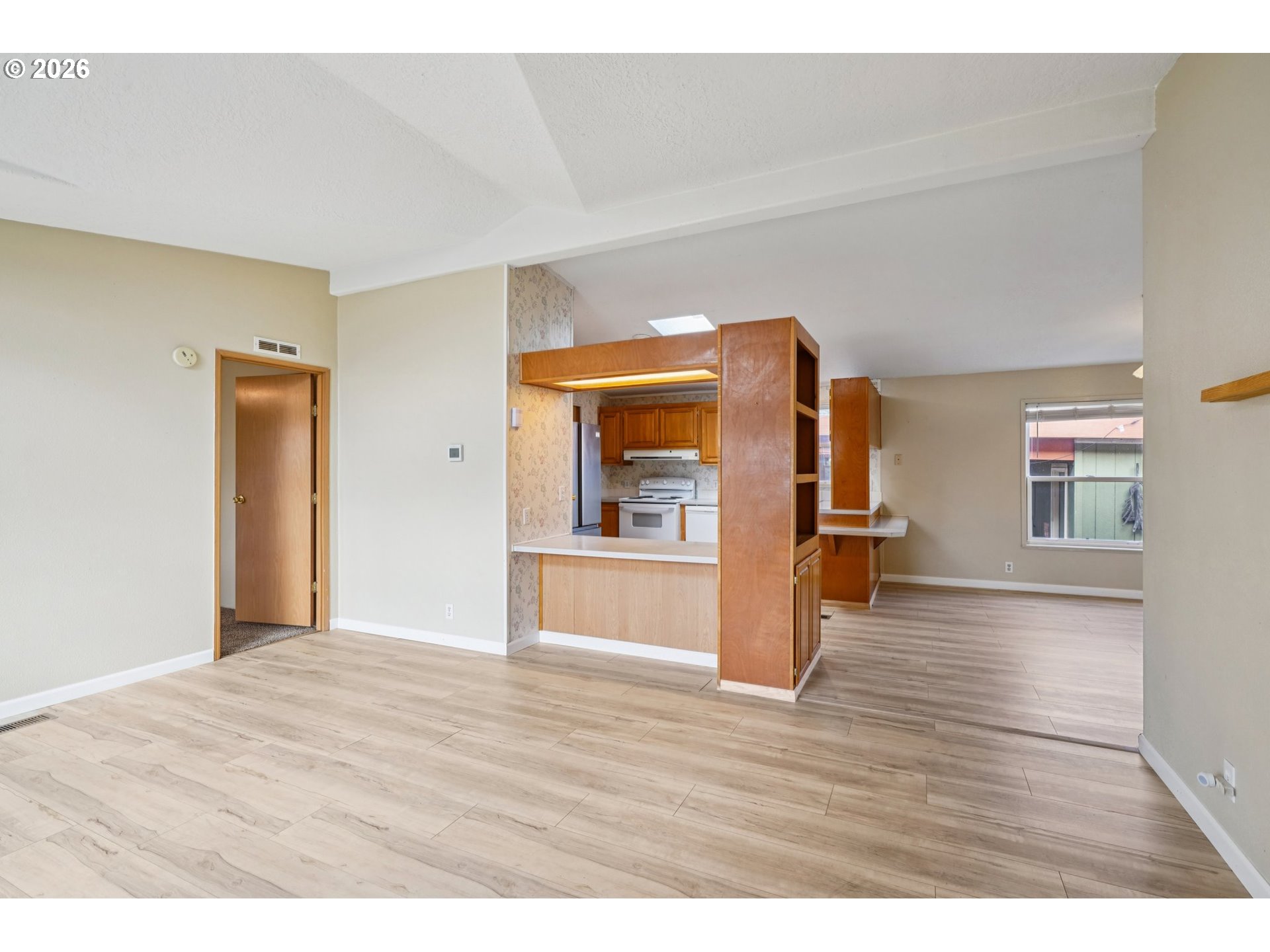Well-maintained 3 bed, 2 bath home on a large corner lot in a quiet McMinnville cul-de-sac. Thoughtful floor plan with separate living and family rooms, vaulted ceilings, and abundant windows that fill the home with natural light. Recent updates include all new flooring in the laundry room, kitchen, living room, and family room, plus a new roof last year and a newer heat pump for efficient year-round comfort.The fully fenced backyard offers privacy and charm with established plants and trees, raised garden beds, and even a small chicken coop. All appliances are included, making this home truly move-in ready. Convenient access to a nearby park, schools, shopping, and local amenities — easy living in a great location.