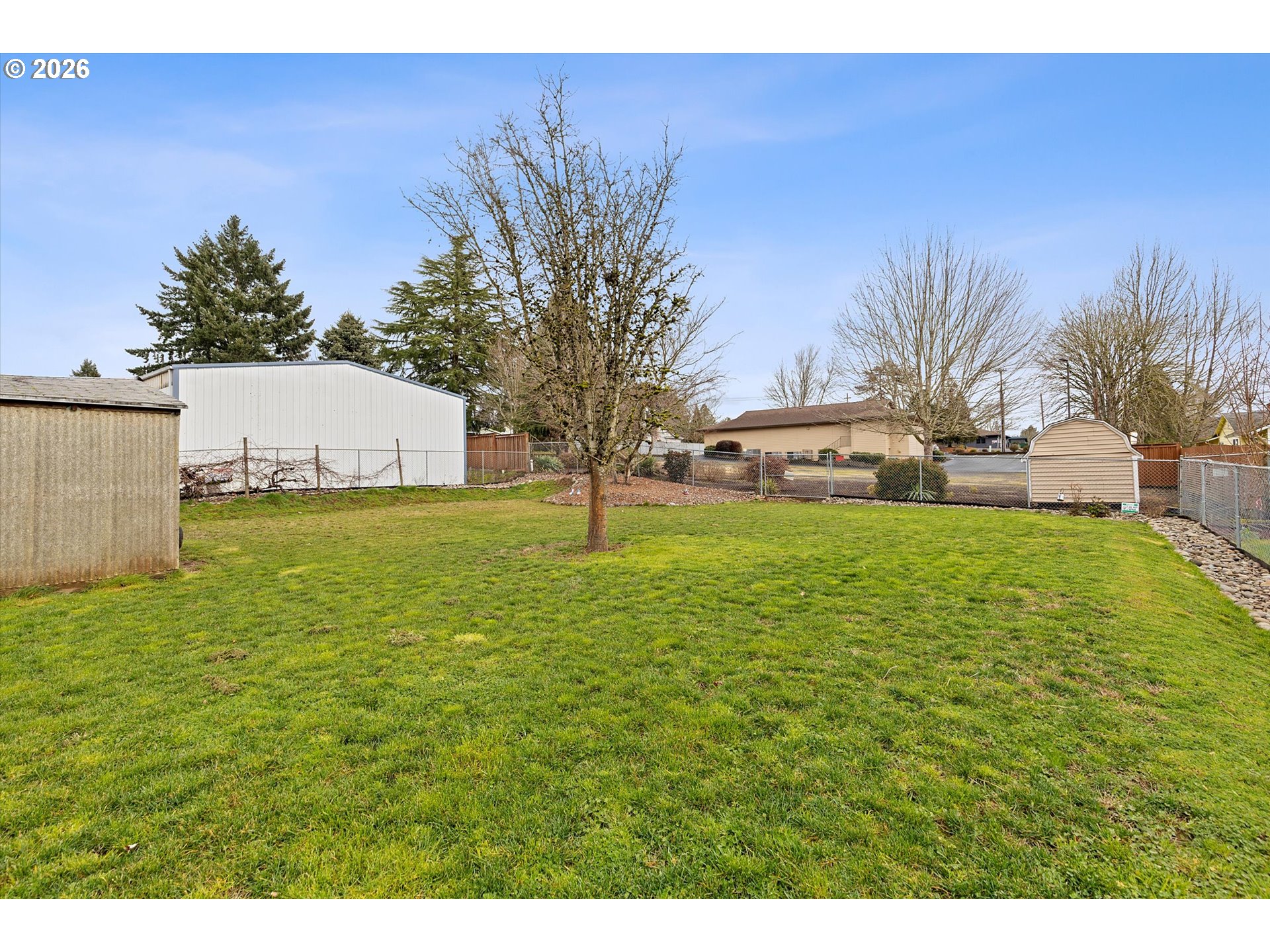 This charming 3 bedroom, 2 bathroom, single level, ranch style home offers great flexibility and comfort with the open floor plan, making entertaining and relaxing easy. The primary bedroom has it's own full bathroom. All appliances, window coverings and Ring security system are included with the sale of the home, making it move in ready. Step outside into the fully fenced, beautiful backyard where you can enjoy the view of the flowers and greenery as you reach the outbuilding/greenhouse that centers the yard, allowing level space on both sides and the back for outdoor activities or to soak up the sun. The back deck is partially covered for BBQ's or to sit back, relax and enjoy the peaceful sound of the water fountain. There is also another covered area behind the garage for storing wood or other items. The double car garage has new insulated doors installed just last year. Extra parking for vehicles, RV's, boats or trailers. So many options with this large lot to customize and make your own!!! Seller is listing agent. Buyer to perform all due diligence