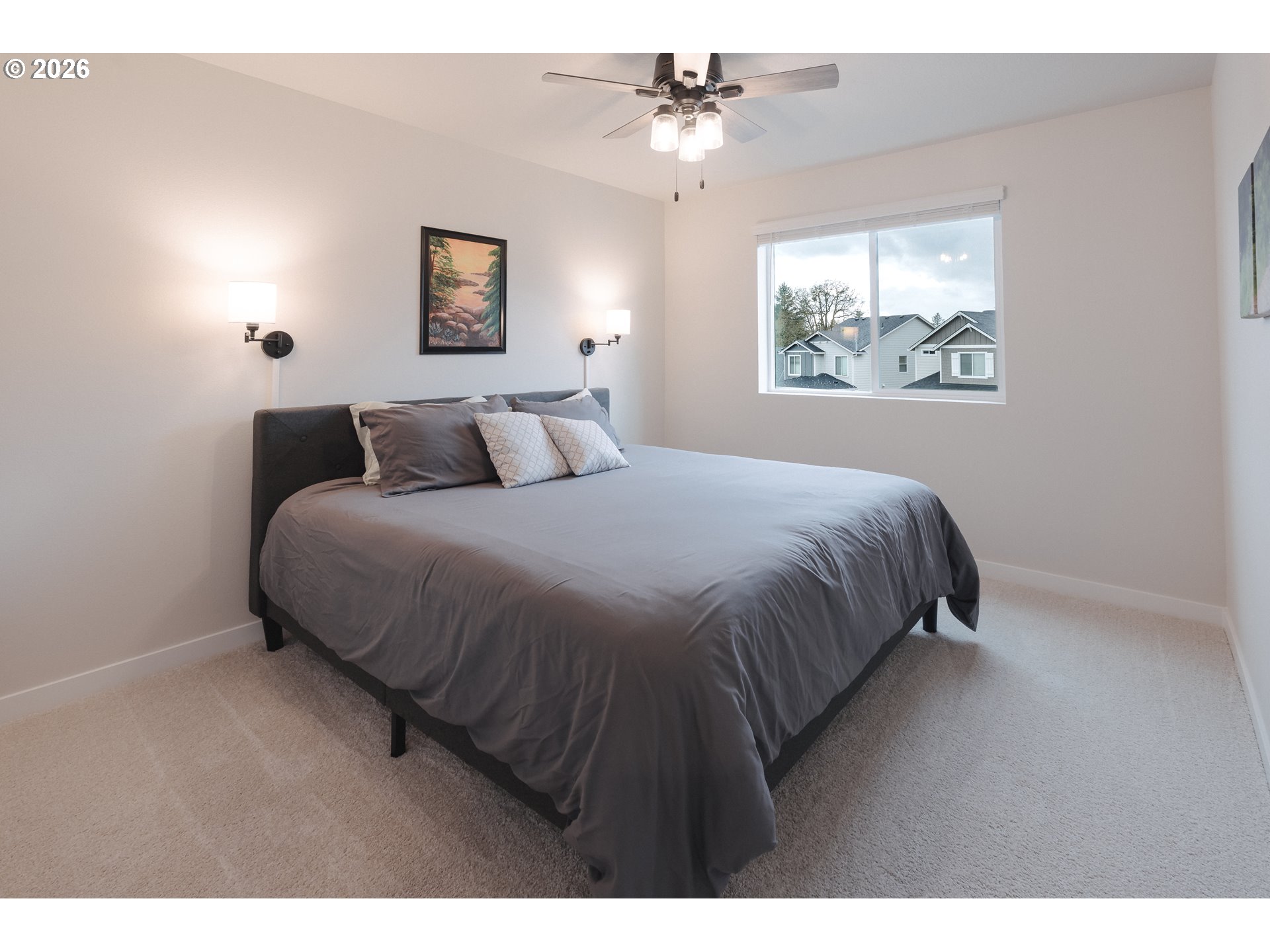 Enjoy year-round comfort with a cozy gas fireplace, newly installed air conditioning, and quality window coverings already in place. Located in the heart of wine country, this home is perfect for wine enthusiasts seeking both lifestyle and convenience. Better than new and thoughtfully finished, it sits on one of the larger lots in the community, complete with landscaping and irrigation. The new patio is ready for summer BBQs and outdoor entertaining. Completed in early 2025 and lightly lived in for just one year, this home offers a fresh, move-in-ready feel with valuable upgrades, including an electric plug for your hybrid vehicle. Light and bright with a well-designed layout, the main level features the primary suite, dedicated office, and convenient laundry. Upstairs, you’ll find a spacious bonus room, two additional bedrooms, and a full bath—ideal for guests or flexible living.