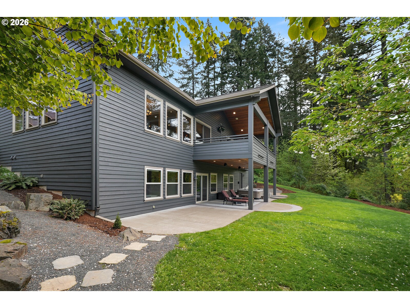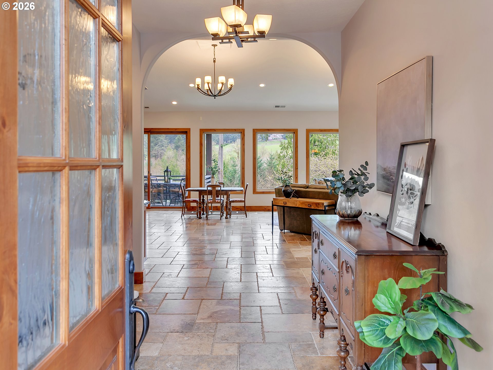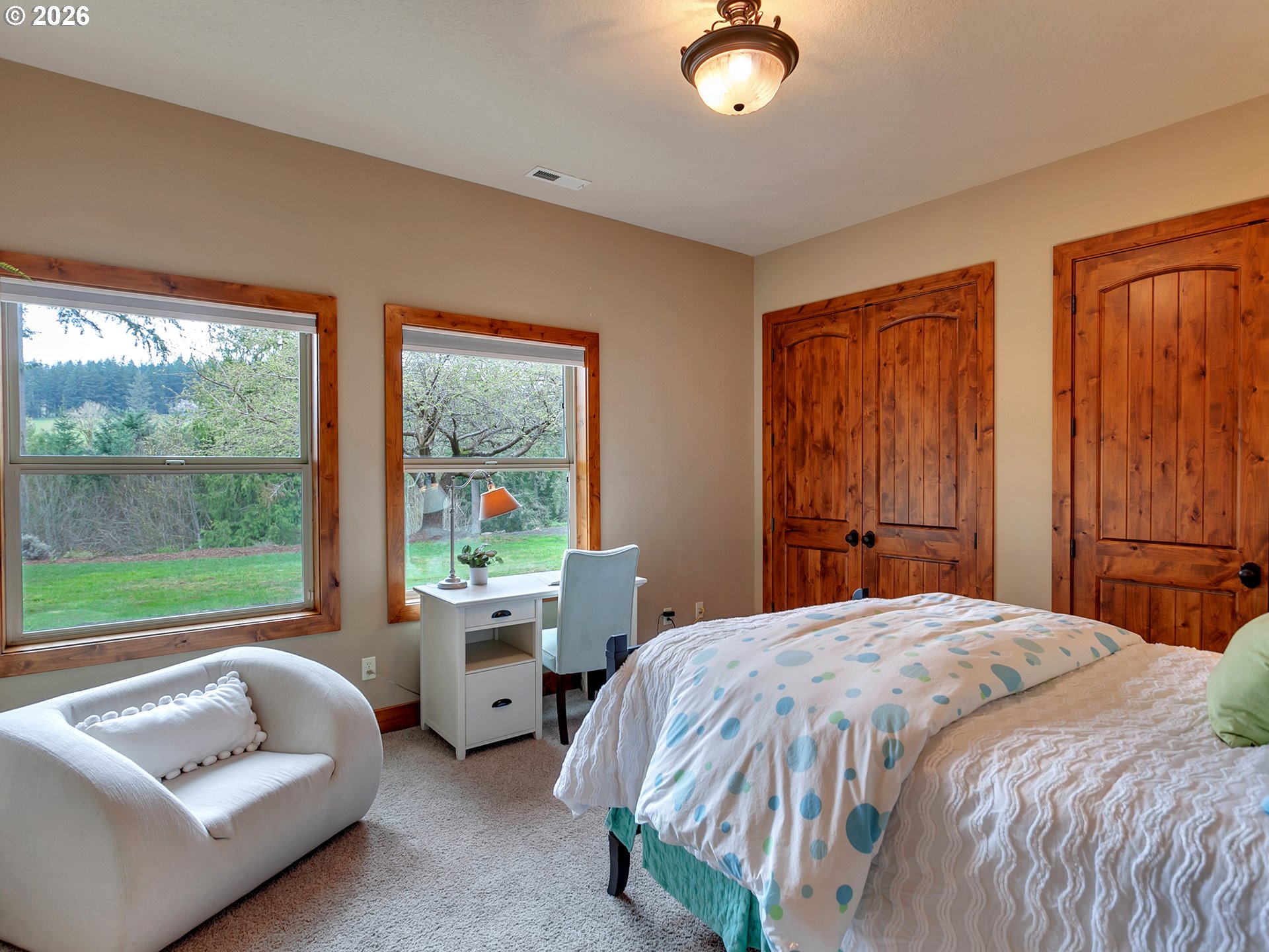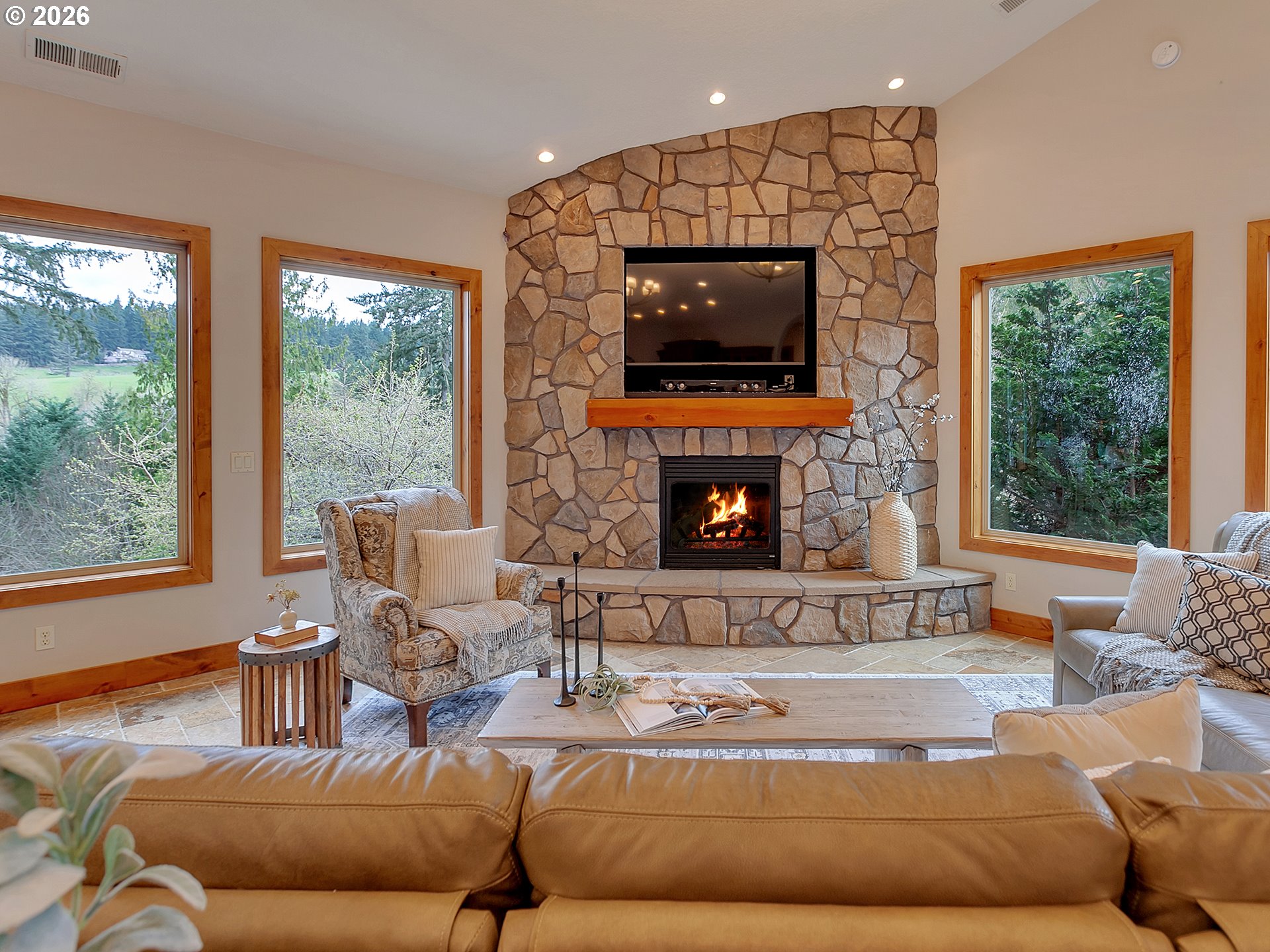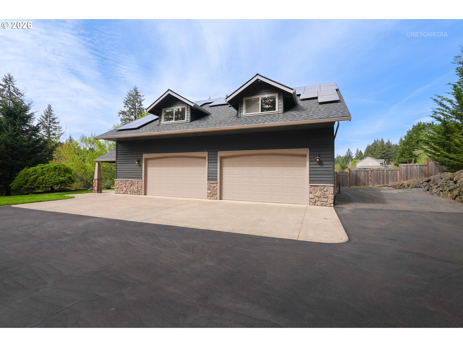 Close-in country estate, Sherwood School District, 6 bedrooms, primary bedroom on the main, 6 car garage, motorcourt, RV parking, detached guest house, and VIEW! And it's not too good to be true! This stunning setting in Sherwood Oregon's sought after wine country offers a perfect blend of luxury and natural beauty. Embellished in stone, natural tile, and warm wood accents, this architectural masterpiece boasts a magnificent floor plan designed to live well and entertain in style! Imagine tranquil moments on the back deck or front porch, surrounded by sky-reaching trees... warming up by the wind-sheltered fire-pit where the concrete radiates warmth while you take in the natural views all around you. It's incredible here! The property's top-quality architecture and finishes are evident throughout from the gourmet kitchen adorned with stone and tile accents, to the rich cabinetry and built-ins. The kitchen and dining room flow into the spacious living room with floor to ceiling fireplace and walls of windows that frame the views. You'll also find the primary bedroom on the main, and downstairs, a spacious family/bonus room providing additional space for relaxation, activities watching movies, hosting, and endless possibilities. The estate's expansive outdoor spaces are a testament to its thoughtful design, offering so much room for enjoyment and the captivating presence of nature and wildlife, including the serene ambiance and sound of trickling water from the nearby creek.The expansive driveway affords plenty of parking and play space, and the property's clever positioning lends to its grand appeal, offering the essence of endless nature, with less maintenance required. A detached garage with separate living quarters above rounds out the estate. The carriage house provides versatile options for guests or additional living space. *Square Footage, bedroom and bath quantified for main house and ADU reflecting total living space. A complete list of updates is on file.