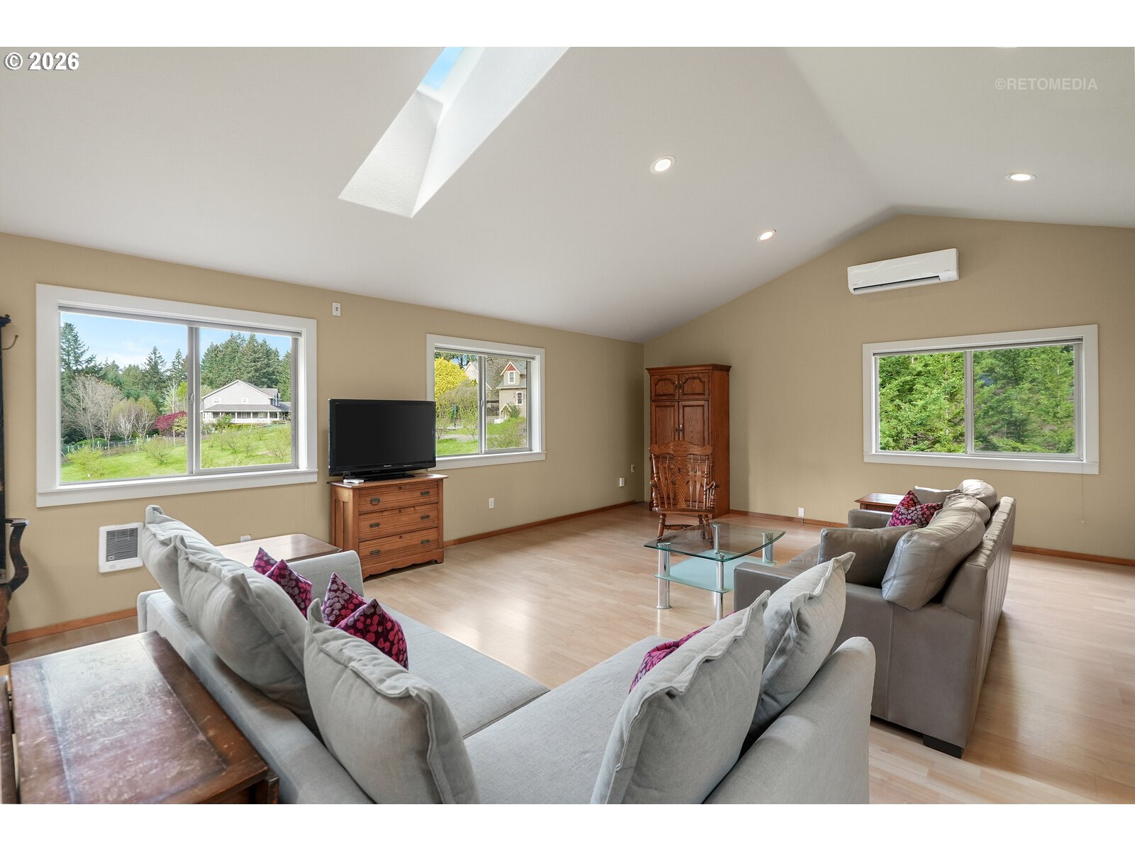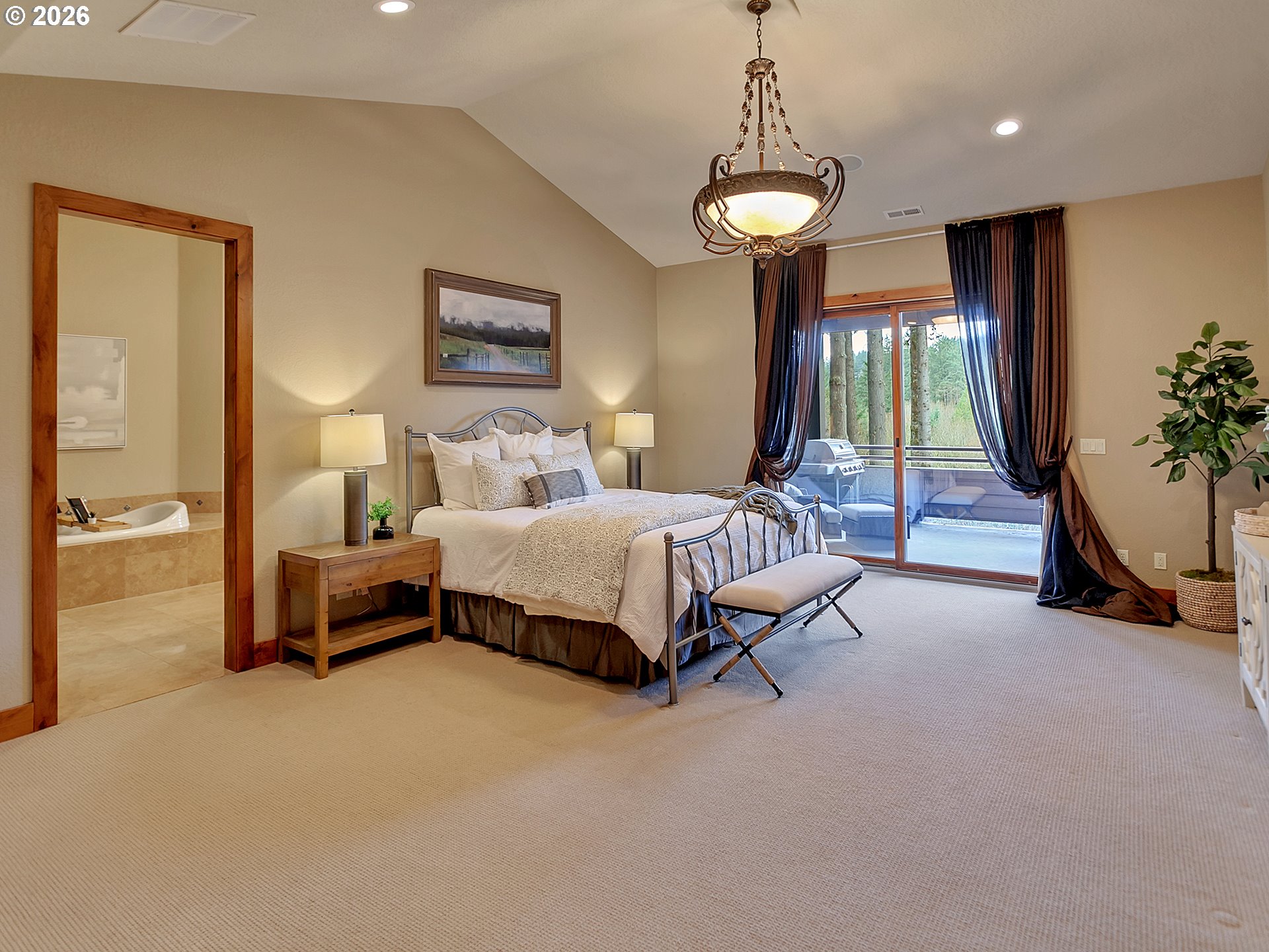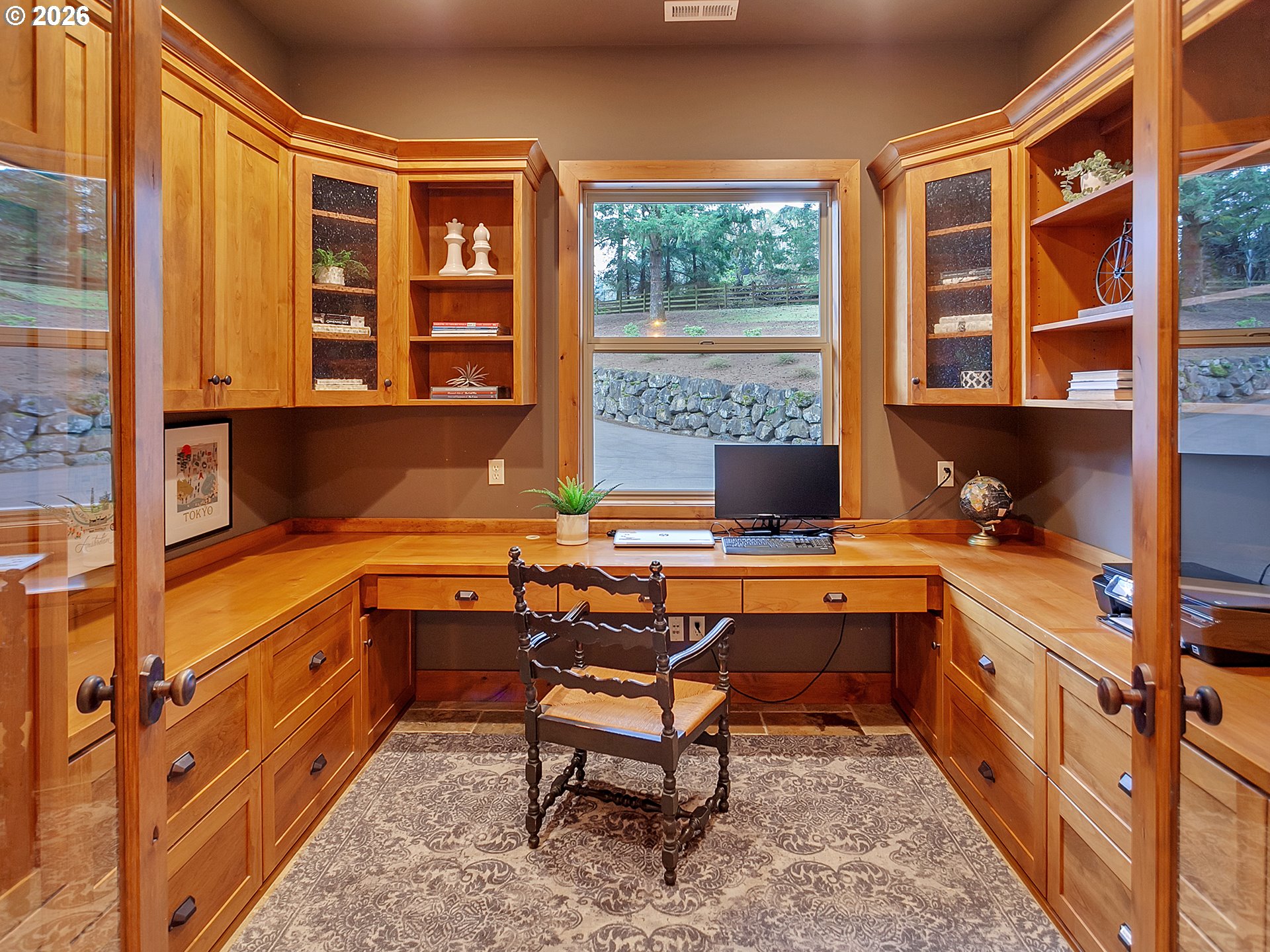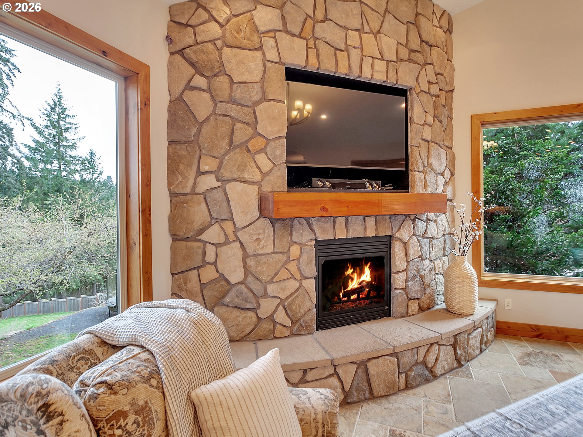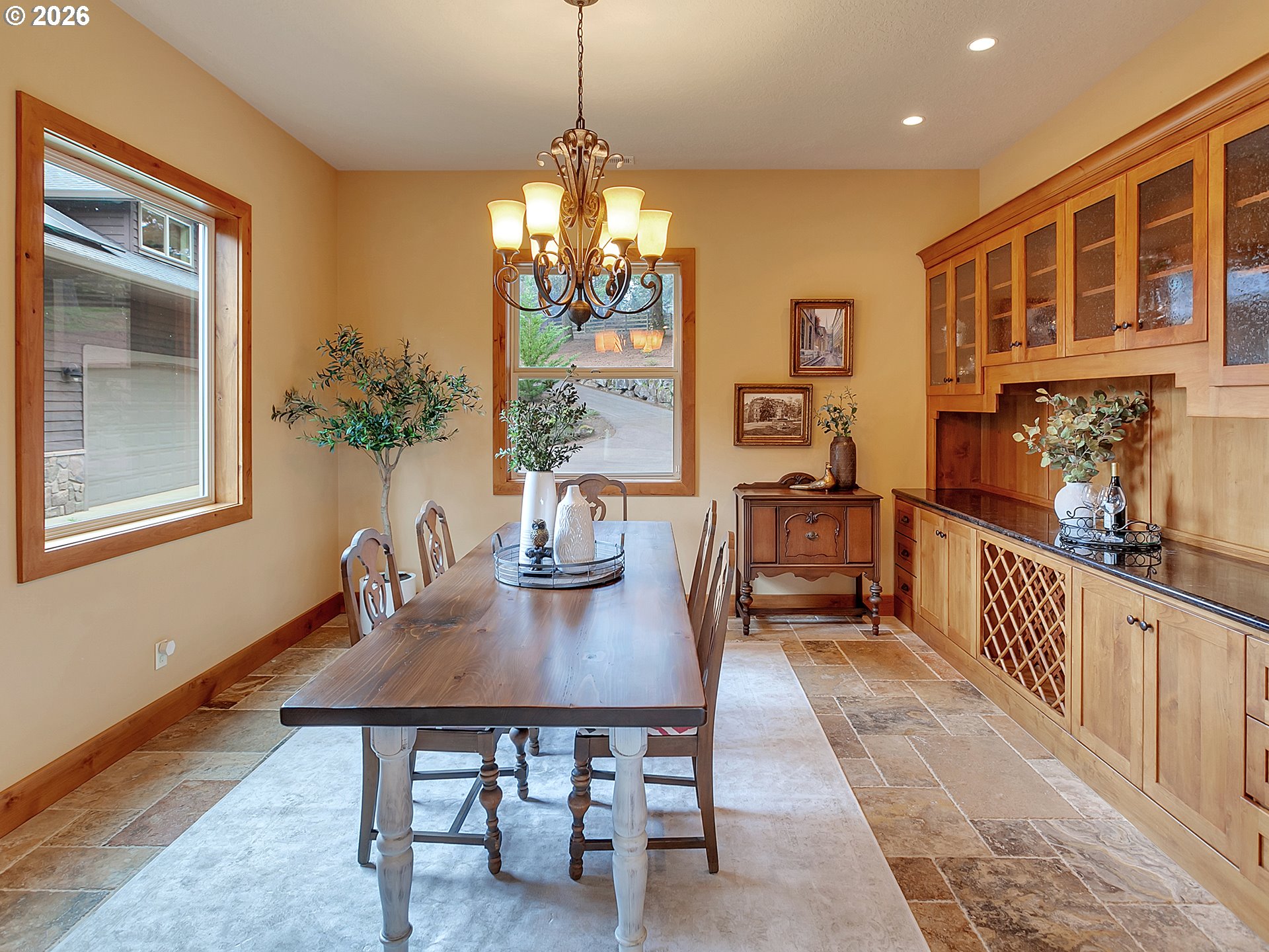 Close-in country estate, Sherwood School District, 6 bedrooms, primary bedroom on the main, 6 car garage, motorcourt, RV parking, detached guest house, and VIEW! And it's not too good to be true! This stunning setting in Sherwood Oregon's sought after wine country offers a perfect blend of luxury and natural beauty. Embellished in stone, natural tile, and warm wood accents, this architectural masterpiece boasts a magnificent floor plan designed to live well and entertain in style! Imagine tranquil moments on the back deck or front porch, surrounded by sky-reaching trees... warming up by the wind-sheltered fire-pit where the concrete radiates warmth while you take in the natural views all around you. It's incredible here! The property's top-quality architecture and finishes are evident throughout from the gourmet kitchen adorned with stone and tile accents, to the rich cabinetry and built-ins. The kitchen and dining room flow into the spacious living room with floor to ceiling fireplace and walls of windows that frame the views. You'll also find the primary bedroom on the main, and downstairs, a spacious family/bonus room providing additional space for relaxation, activities watching movies, hosting, and endless possibilities. The estate's expansive outdoor spaces are a testament to its thoughtful design, offering so much room for enjoyment and the captivating presence of nature and wildlife, including the serene ambiance and sound of trickling water from the nearby creek.The expansive driveway affords plenty of parking and play space, and the property's clever positioning lends to its grand appeal, offering the essence of endless nature, with less maintenance required. A detached garage with separate living quarters above rounds out the estate. The carriage house provides versatile options for guests or additional living space. *Square Footage, bedroom and bath quantified for main house and ADU reflecting total living space. A complete list of updates is on file.