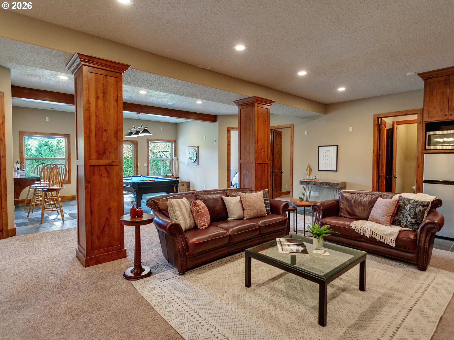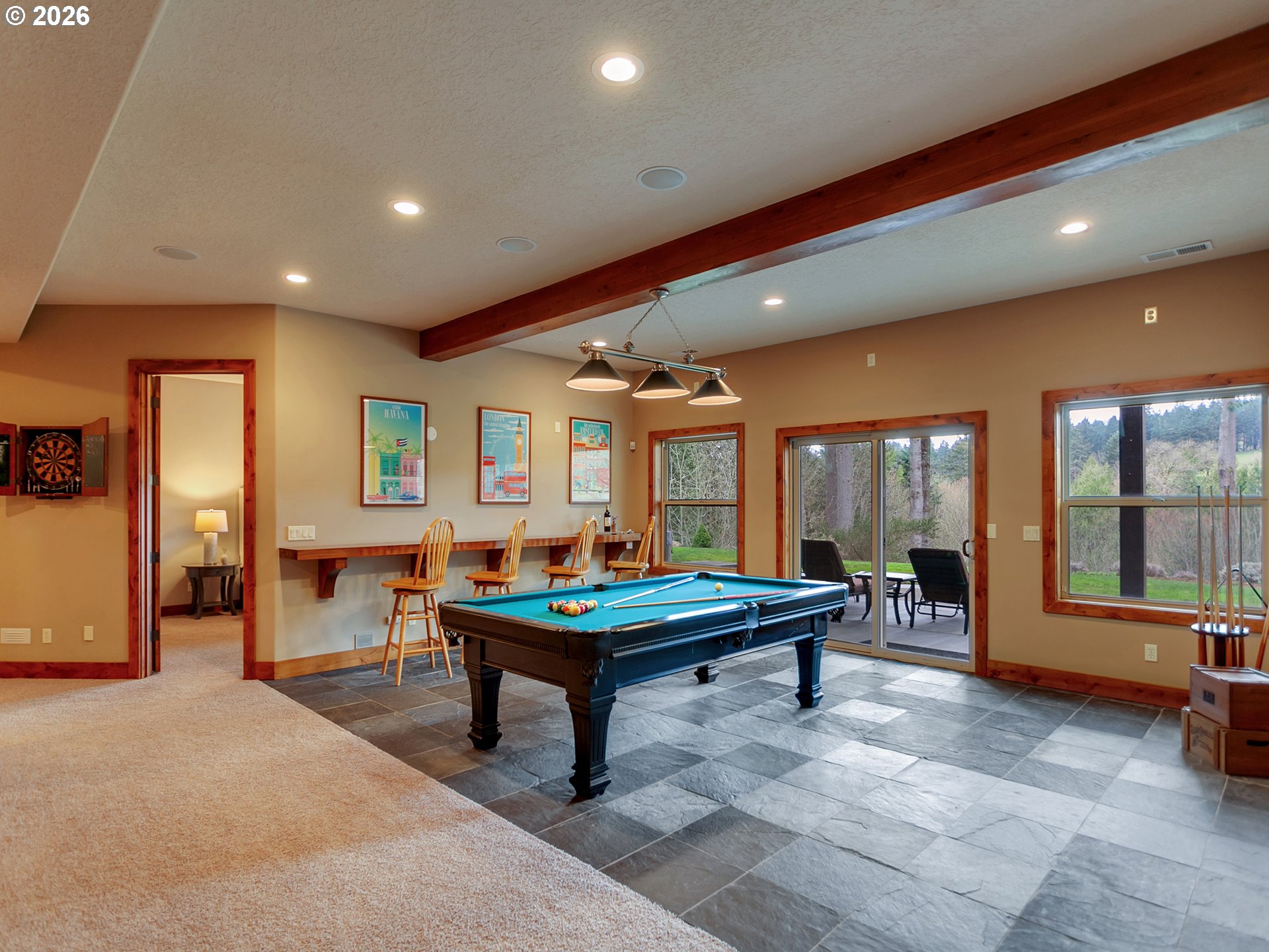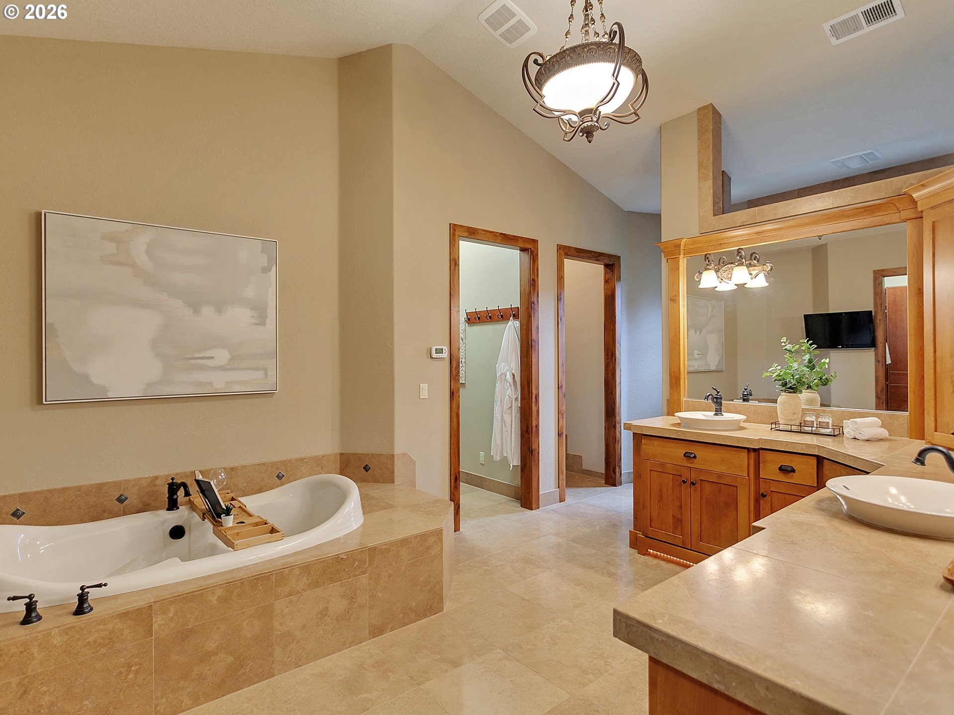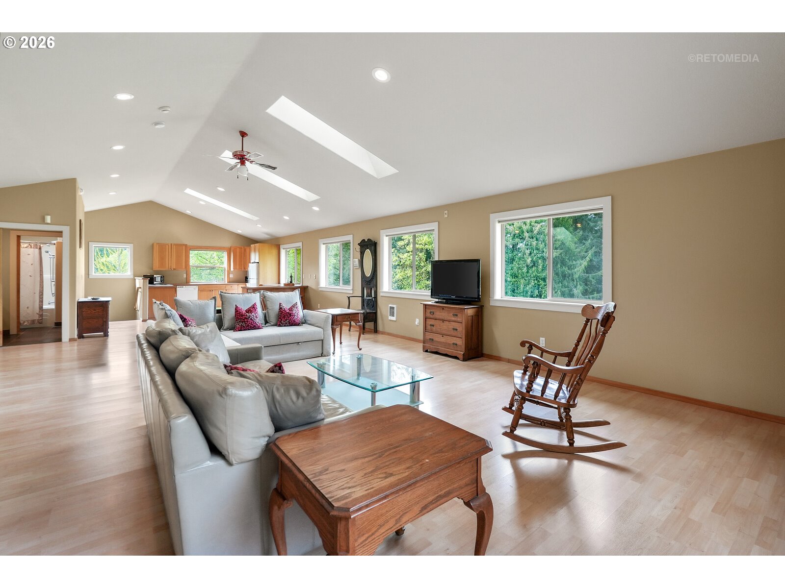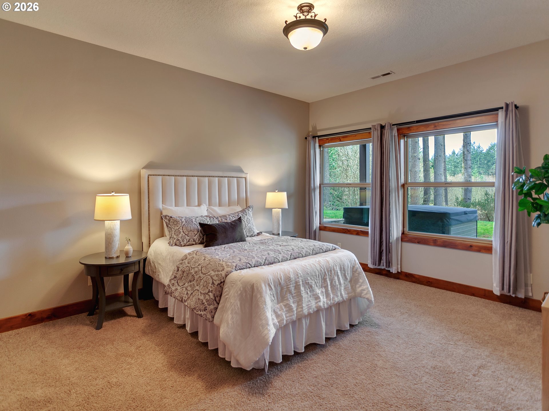 Close-in country estate, Sherwood School District, 6 bedrooms, primary bedroom on the main, 6 car garage, motorcourt, RV parking, detached guest house, and VIEW! And it's not too good to be true! This stunning setting in Sherwood Oregon's sought after wine country offers a perfect blend of luxury and natural beauty. Embellished in stone, natural tile, and warm wood accents, this architectural masterpiece boasts a magnificent floor plan designed to live well and entertain in style! Imagine tranquil moments on the back deck or front porch, surrounded by sky-reaching trees... warming up by the wind-sheltered fire-pit where the concrete radiates warmth while you take in the natural views all around you. It's incredible here! The property's top-quality architecture and finishes are evident throughout from the gourmet kitchen adorned with stone and tile accents, to the rich cabinetry and built-ins. The kitchen and dining room flow into the spacious living room with floor to ceiling fireplace and walls of windows that frame the views. You'll also find the primary bedroom on the main, and downstairs, a spacious family/bonus room providing additional space for relaxation, activities watching movies, hosting, and endless possibilities. The estate's expansive outdoor spaces are a testament to its thoughtful design, offering so much room for enjoyment and the captivating presence of nature and wildlife, including the serene ambiance and sound of trickling water from the nearby creek.The expansive driveway affords plenty of parking and play space, and the property's clever positioning lends to its grand appeal, offering the essence of endless nature, with less maintenance required. A detached garage with separate living quarters above rounds out the estate. The carriage house provides versatile options for guests or additional living space. *Square Footage, bedroom and bath quantified for main house and ADU reflecting total living space. A complete list of updates is on file.