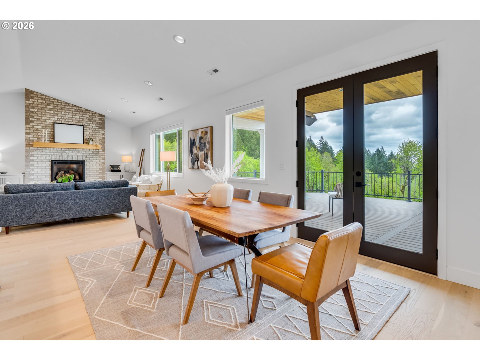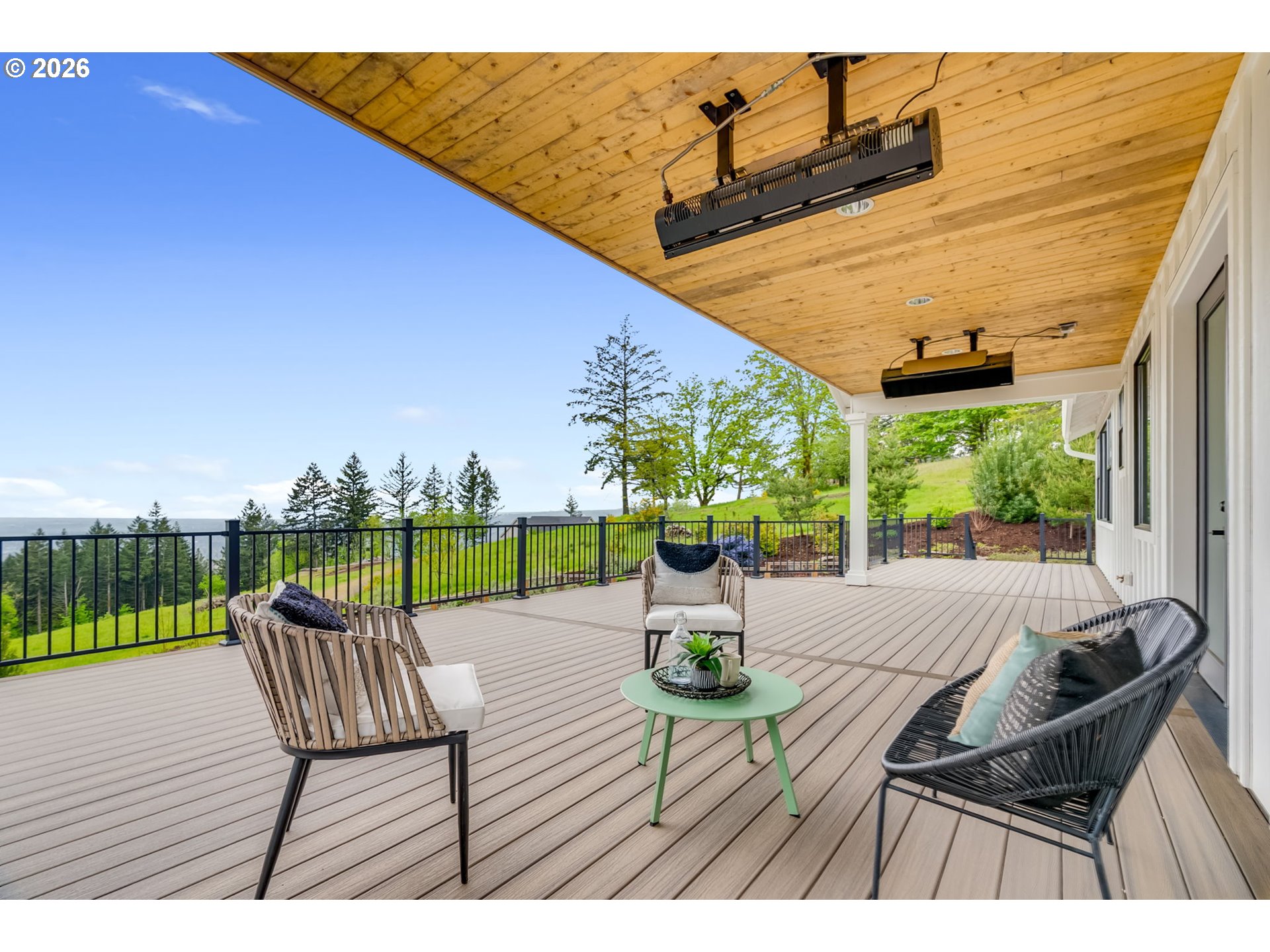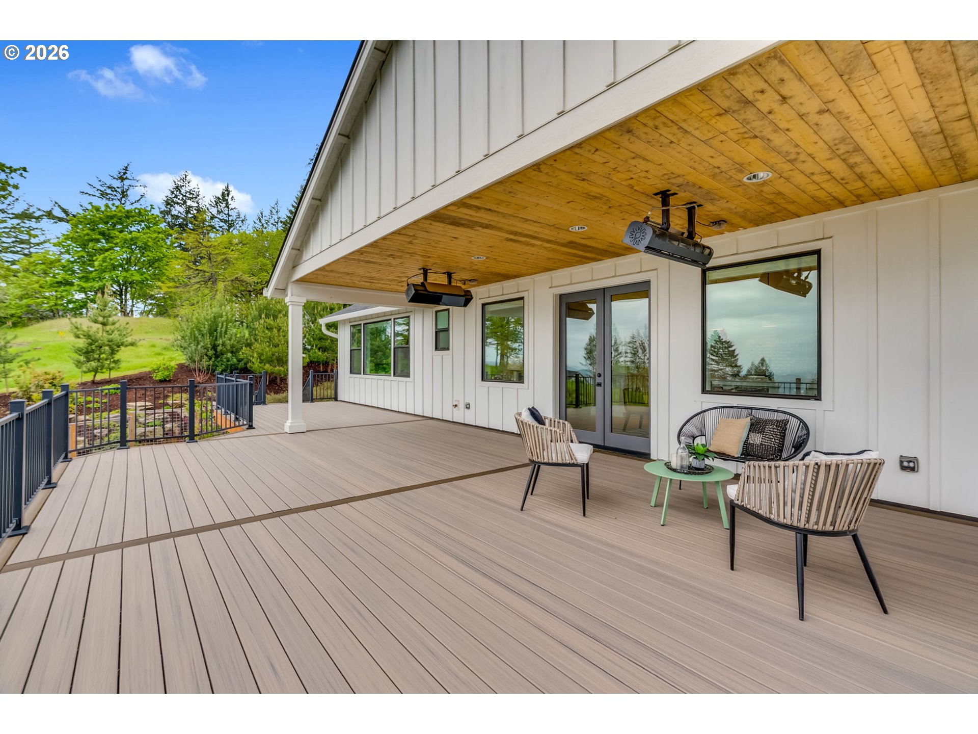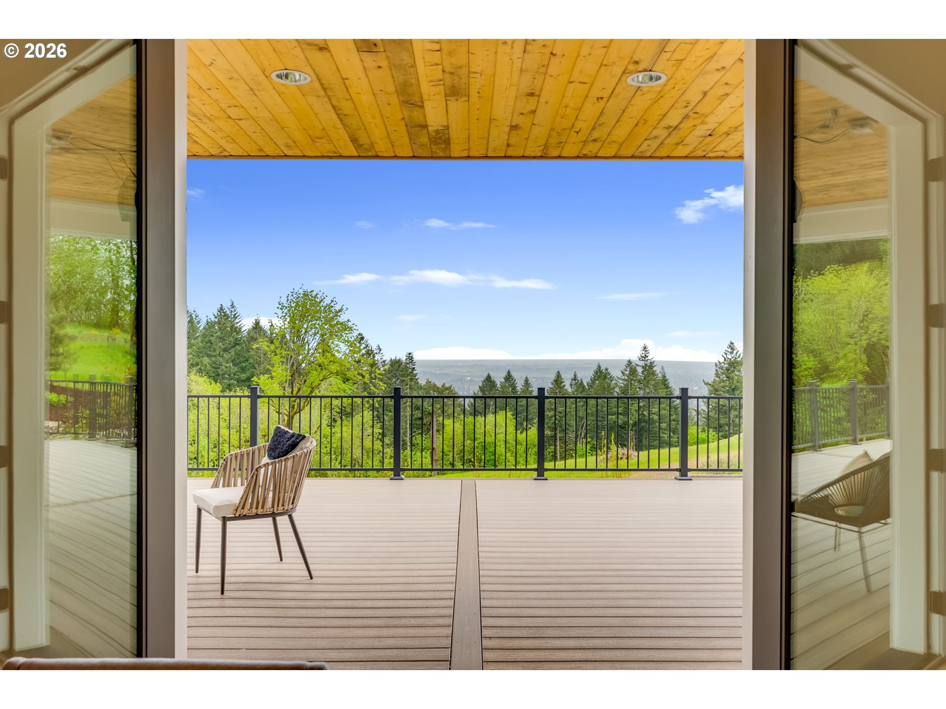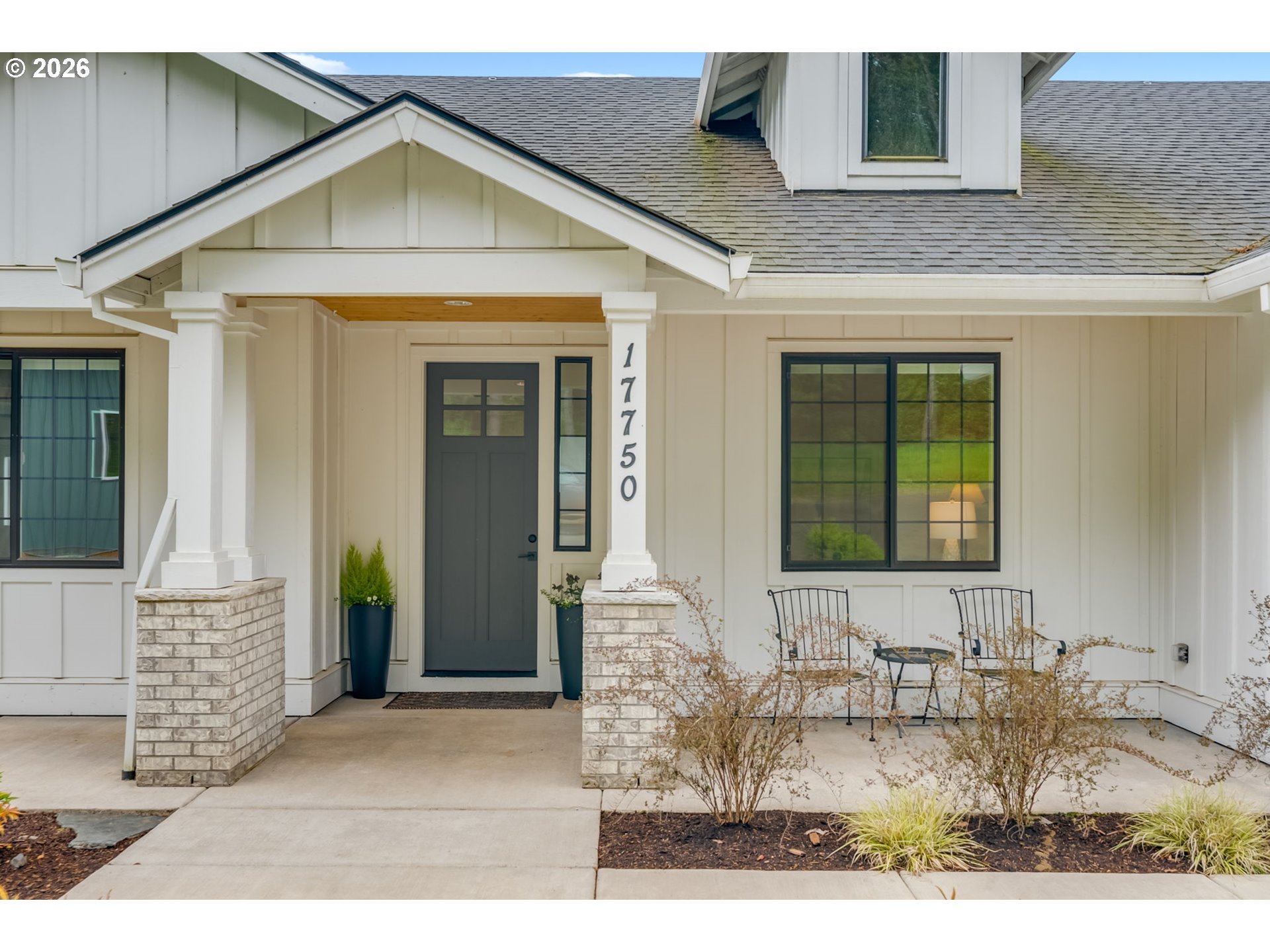 Set on just over four private acres in the heart of wine country, this exceptional estate offers luxury living surrounded by breathtaking natural beauty. A long, private lane winds through Douglas fir, vine maple, and sword fern, leading to a serene retreat with sweeping valley views. Abundant wildlife are frequent visitors, and a seasonal creek can be heard from the deck, enhancing the tranquil setting. Professionally designed native perennial gardens offer year-round interest, alongside a deer-fenced veggie garden—both fully irrigated with an app-controlled system. The balance of the property blends meadow and forest, creating a perfect mix of open space and privacy, with views and spectacular sunsets from nearly every vantage point. Inside, the single-level home is filled with natural light, with large windows that bring the outside in. The open-concept layout centers around a gourmet kitchen with a large island, Italian Bertazzoni range, quartz surfaces, tile accents, and abundant storage. The dining area opens through French doors to the deck, overlooking the gardens, meadow and views and featuring a covered, heated area for year-round use. The living room offers built-ins and a brick fireplace with hearth—an inviting space for gathering while enjoying the scenery beyond. The home offers 4 bedrooms plus a den, two full baths, and a half bath. The primary suite includes a walk-in closet and ensuite with a walk-in tiled shower. Custom blinds throughout—including programmable remote-controlled options—add both comfort and convenience. A fully insulated and climate-controlled shop (heat & AC) features 10-foot pull-through doors and a bath, perfect for hobbies or workspace. Solar panels with battery storage provide approximately 77% of the home’s annual energy needs, enhancing efficiency and sustainability. Located near some of Oregon’s most celebrated wineries, this exceptional property offers refined living surrounded by nature, privacy, and panoramic views.