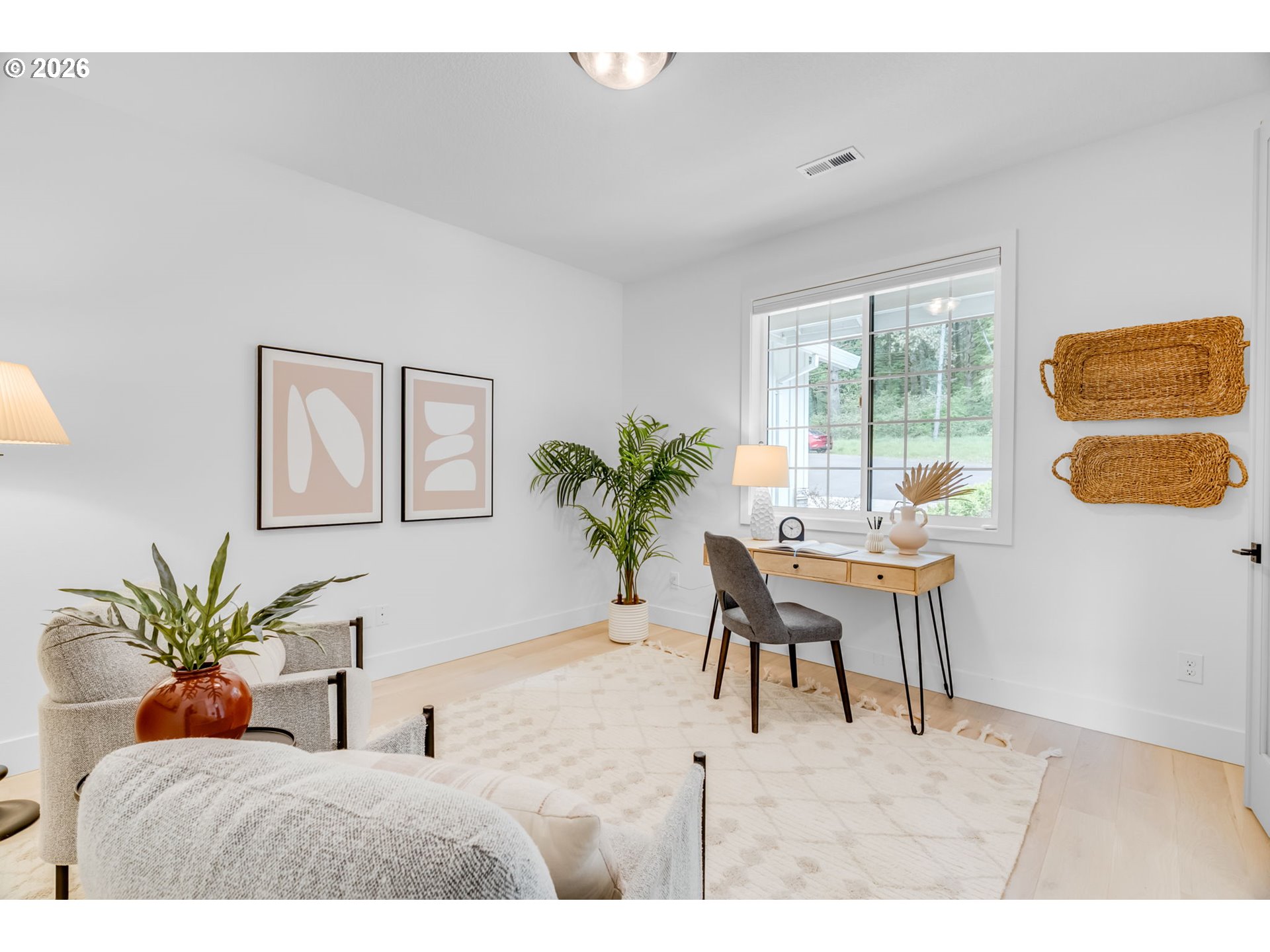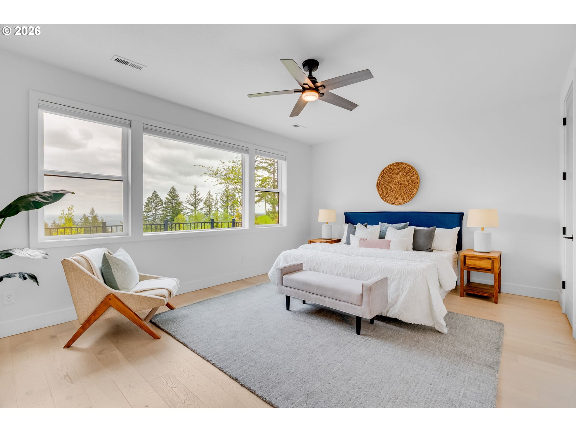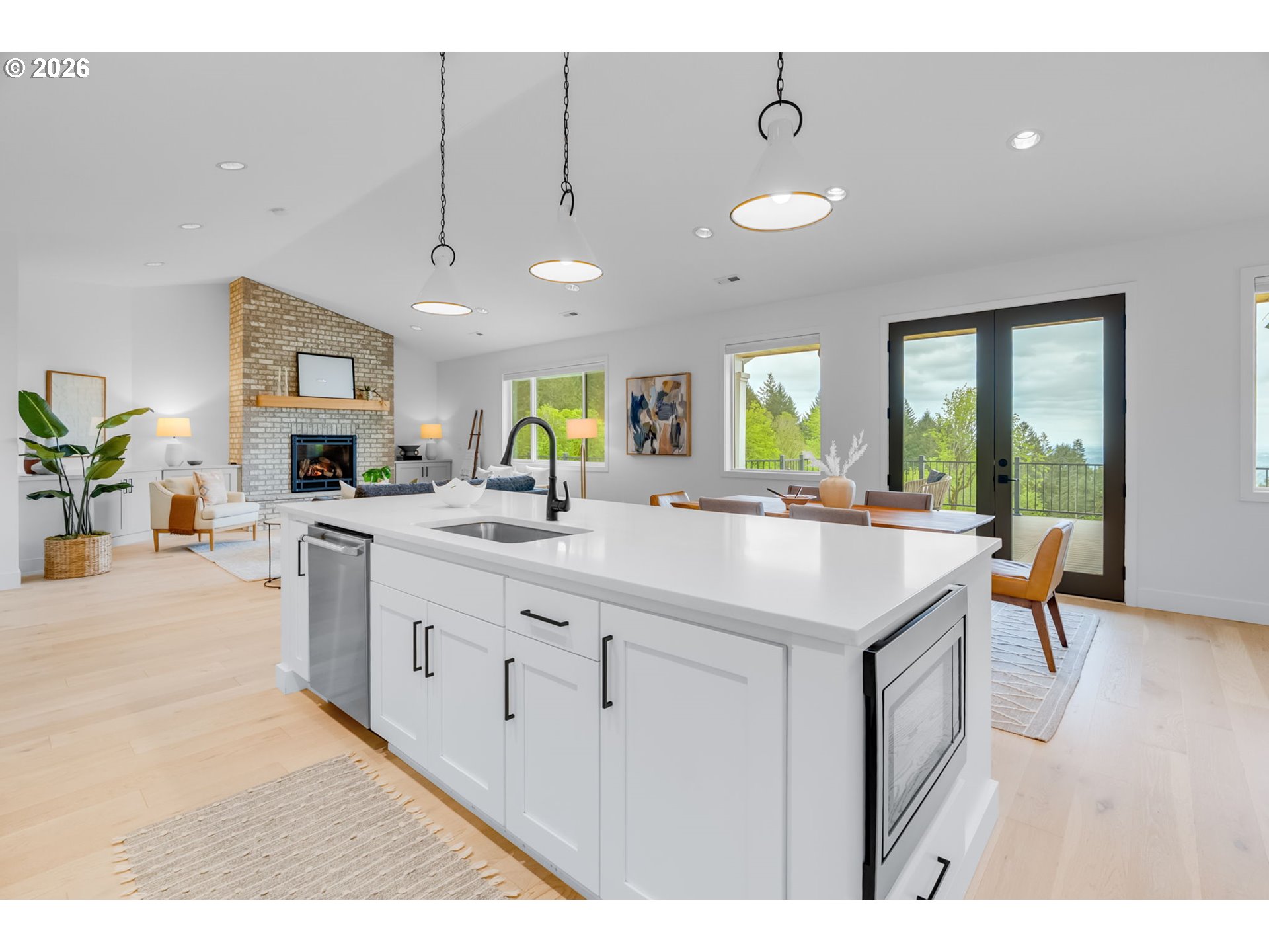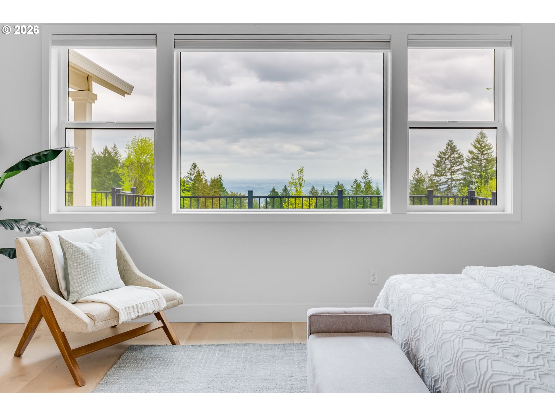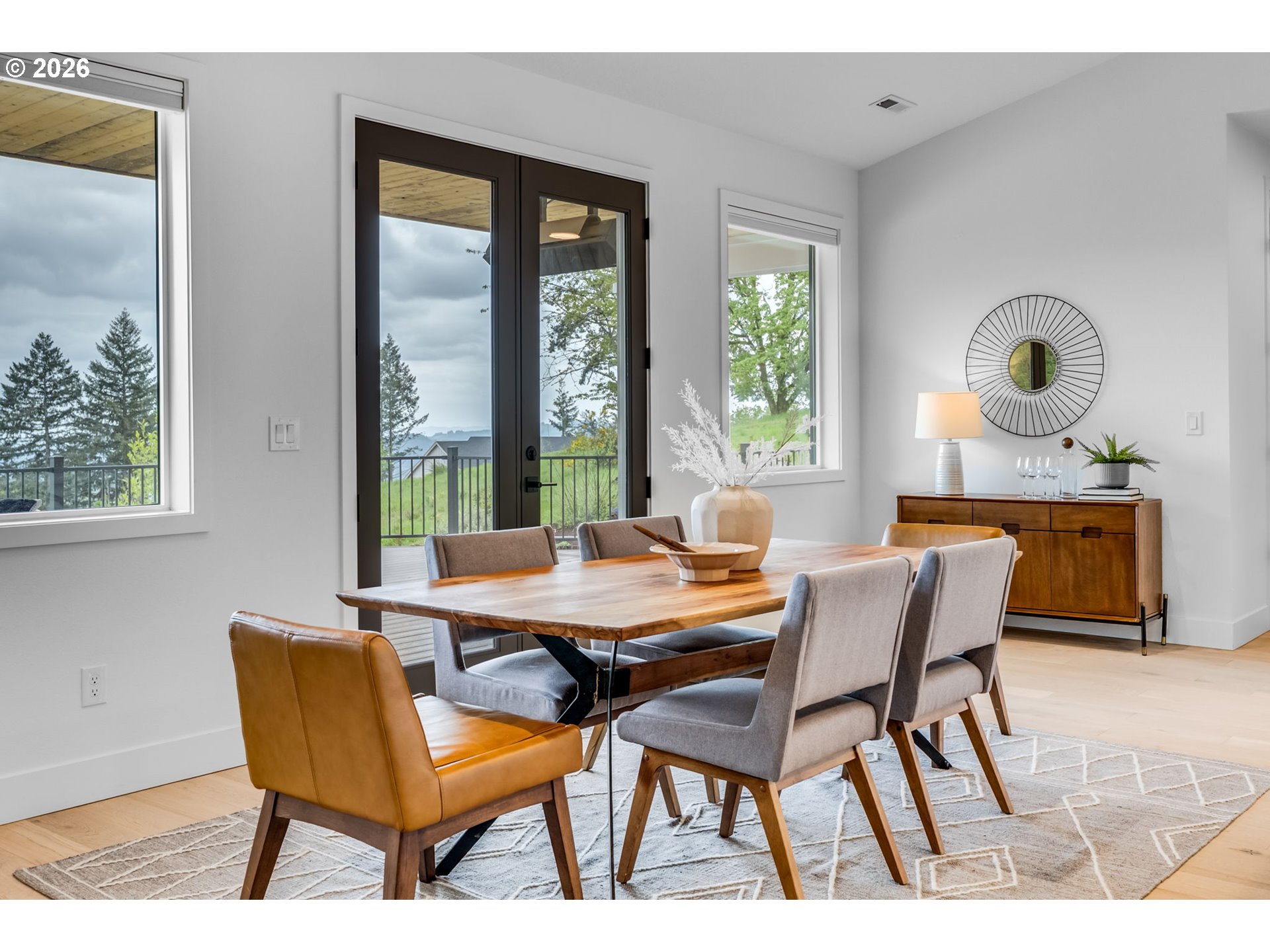 Set on just over four private acres in the heart of wine country, this exceptional estate offers luxury living surrounded by breathtaking natural beauty. A long, private lane winds through Douglas fir, vine maple, and sword fern, leading to a serene retreat with sweeping valley views. Abundant wildlife are frequent visitors, and a seasonal creek can be heard from the deck, enhancing the tranquil setting. Professionally designed native perennial gardens offer year-round interest, alongside a deer-fenced veggie garden—both fully irrigated with an app-controlled system. The balance of the property blends meadow and forest, creating a perfect mix of open space and privacy, with views and spectacular sunsets from nearly every vantage point. Inside, the single-level home is filled with natural light, with large windows that bring the outside in. The open-concept layout centers around a gourmet kitchen with a large island, Italian Bertazzoni range, quartz surfaces, tile accents, and abundant storage. The dining area opens through French doors to the deck, overlooking the gardens, meadow and views and featuring a covered, heated area for year-round use. The living room offers built-ins and a brick fireplace with hearth—an inviting space for gathering while enjoying the scenery beyond. The home offers 4 bedrooms plus a den, two full baths, and a half bath. The primary suite includes a walk-in closet and ensuite with a walk-in tiled shower. Custom blinds throughout—including programmable remote-controlled options—add both comfort and convenience. A fully insulated and climate-controlled shop (heat & AC) features 10-foot pull-through doors and a bath, perfect for hobbies or workspace. Solar panels with battery storage provide approximately 77% of the home’s annual energy needs, enhancing efficiency and sustainability. Located near some of Oregon’s most celebrated wineries, this exceptional property offers refined living surrounded by nature, privacy, and panoramic views.