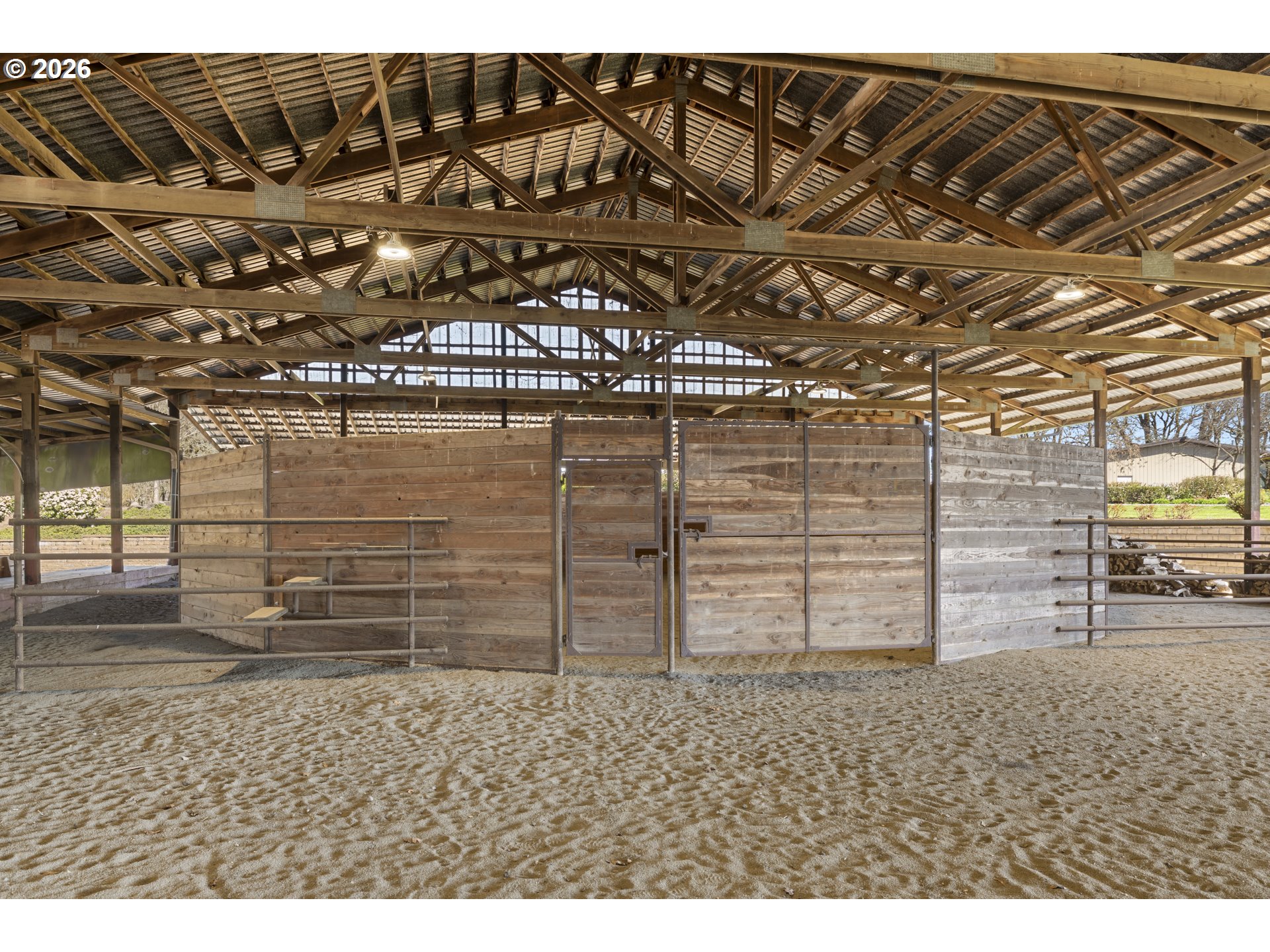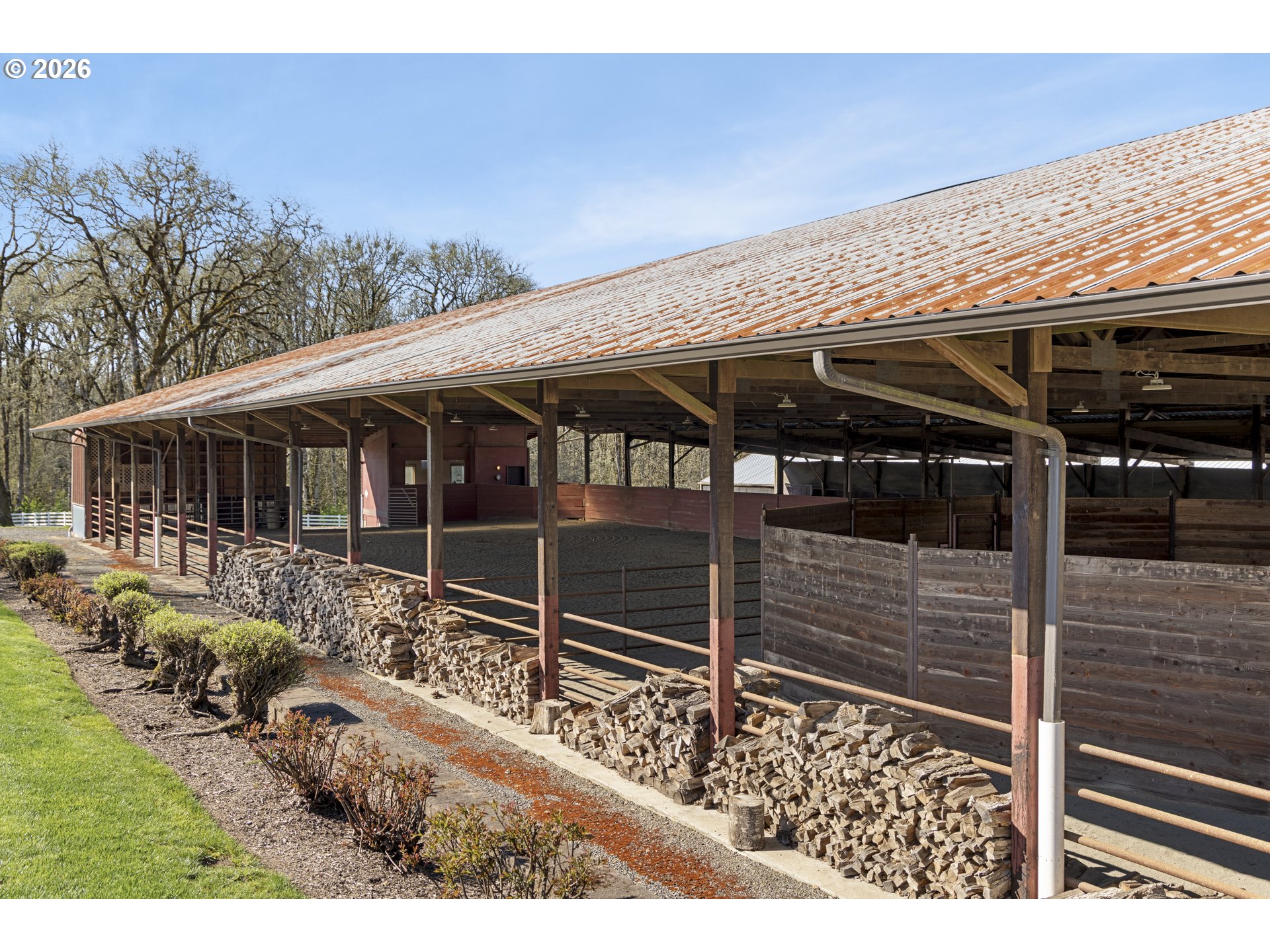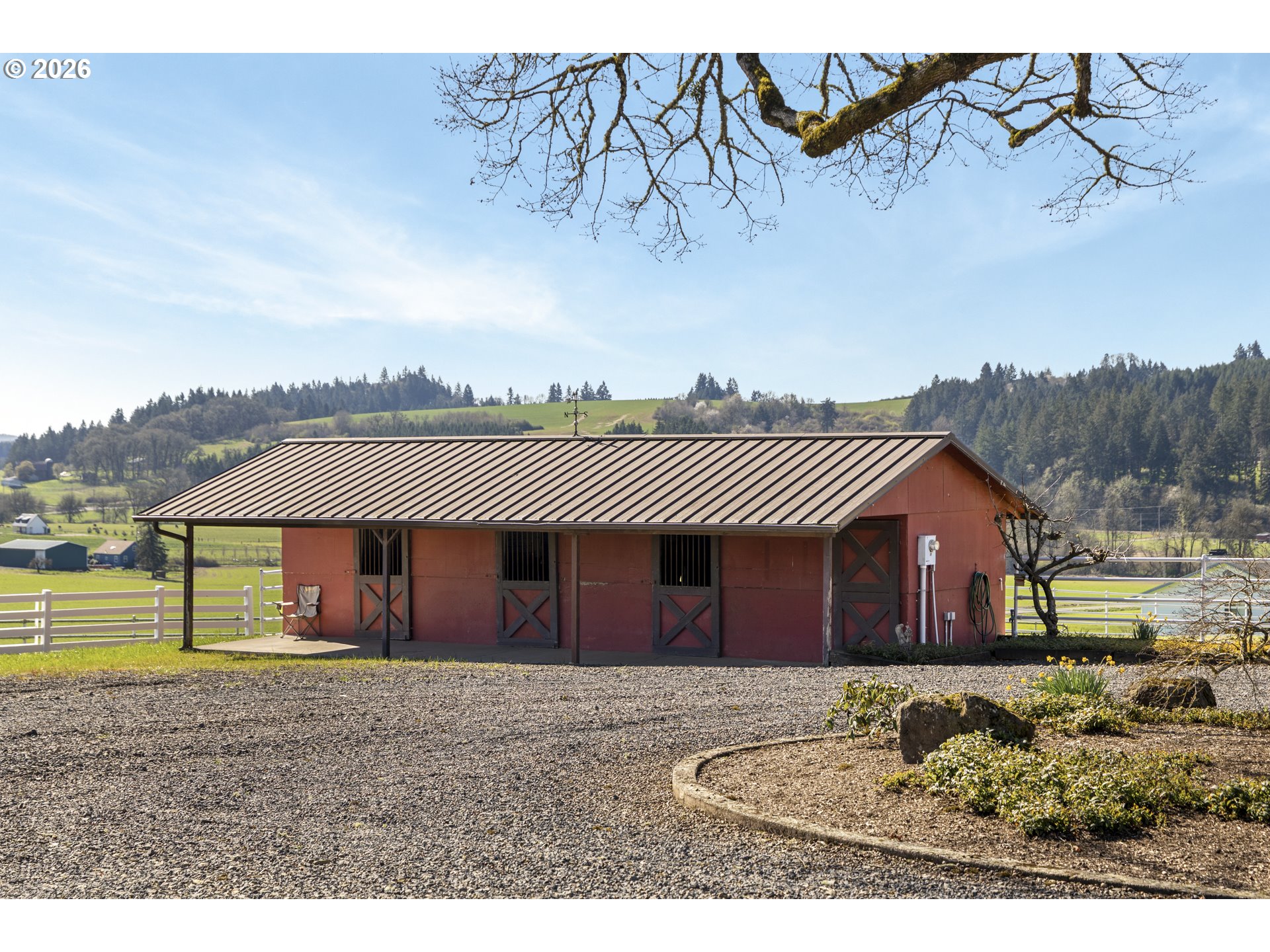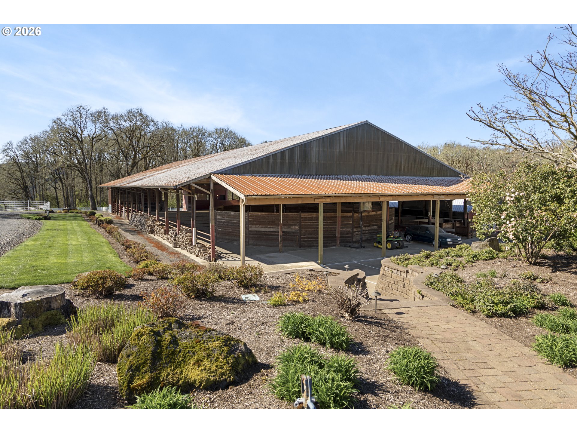 A truly special 43.35-acre property offering refined country living, sweeping views, and a fully equipped equestrian facility built to perform at the highest level. Designed for the serious equestrian, this turnkey setup is both impressive and highly functional. The barn features 29 stalls, complemented by a covered arena with an office and viewing room, a well-appointed tack room with bathroom, round pen, hay storage, and multiple dry lots. The fully fenced acreage is thoughtfully arranged with multiple pastures and easy trailer access, allowing for smooth day-to-day operation. Inside, the main residence showcases vaulted wood-beamed ceilings, built-in shelving, and expansive windows that frame the surrounding countryside. The home offers a sense of warmth and craftsmanship, with living spaces that feel both elevated and comfortable, all positioned to take full advantage of the setting. The grounds are equally compelling. Manicured lawns, curated gardens, and a beautifully designed courtyard create a private, resort-like feel, with inviting spaces to relax, entertain, and take in the panoramic views in every direction. A separate 1,411 sq ft residence with 2 bedrooms and 2 baths provides flexibility for a farm manager, trainer, extended living, or guests. Formerly the training facility of renowned horseman Bob Avila, this property carries a notable legacy and is exceptionally well suited for its next chapter.