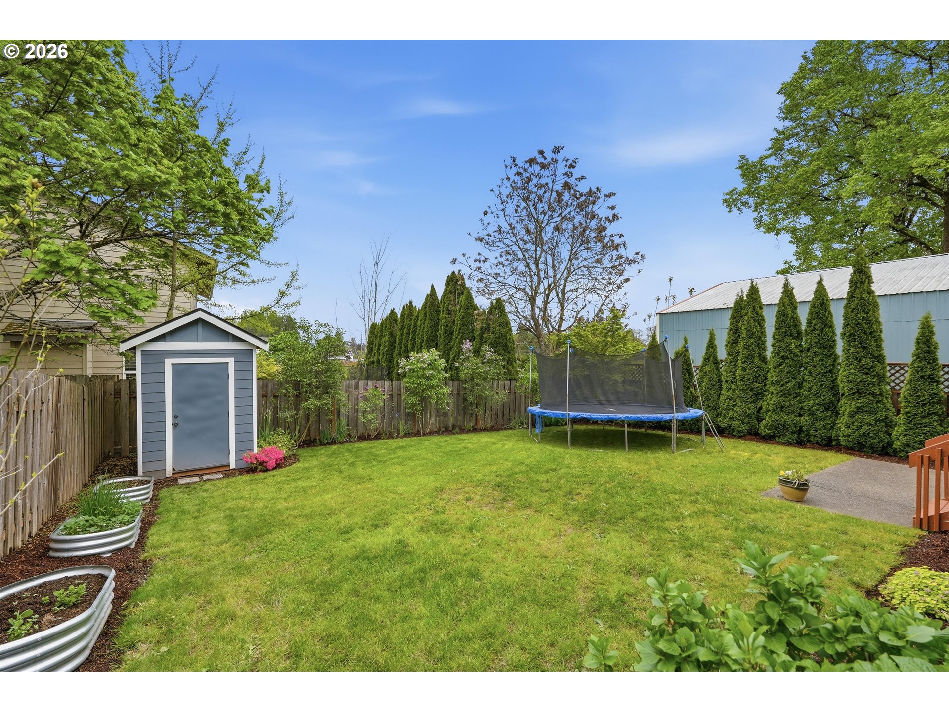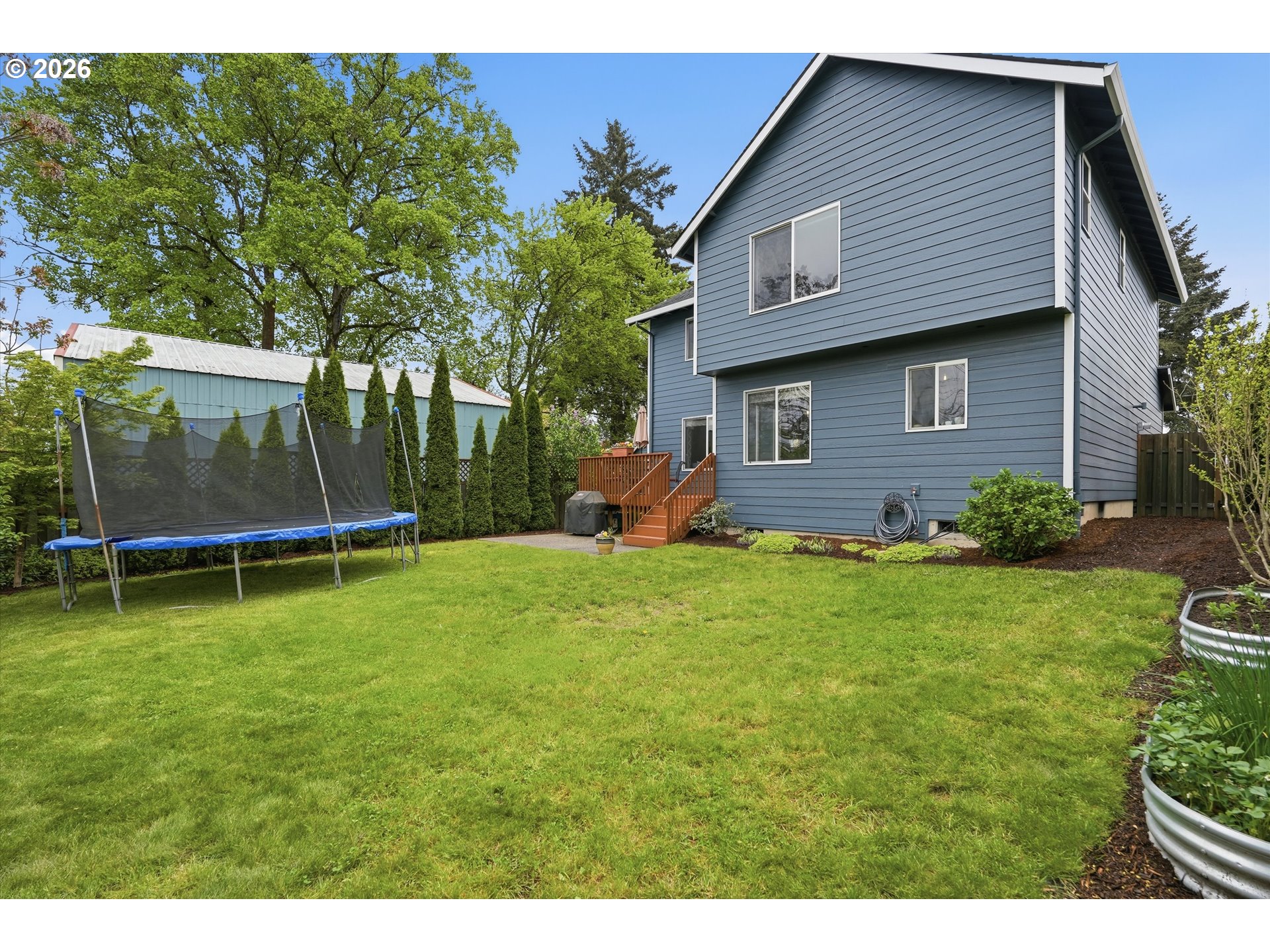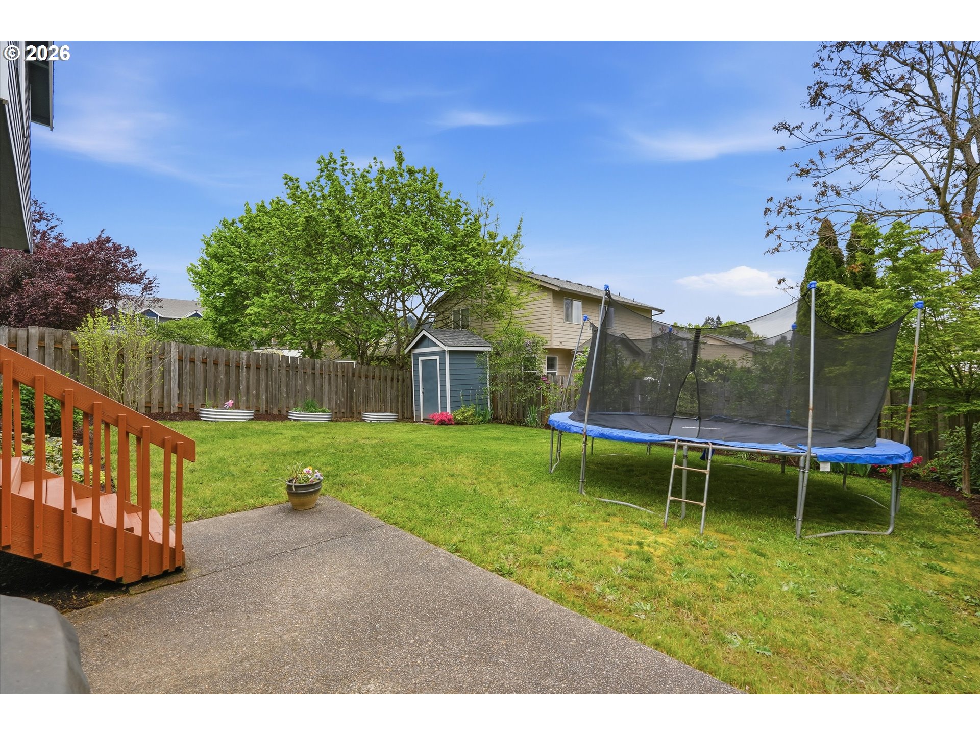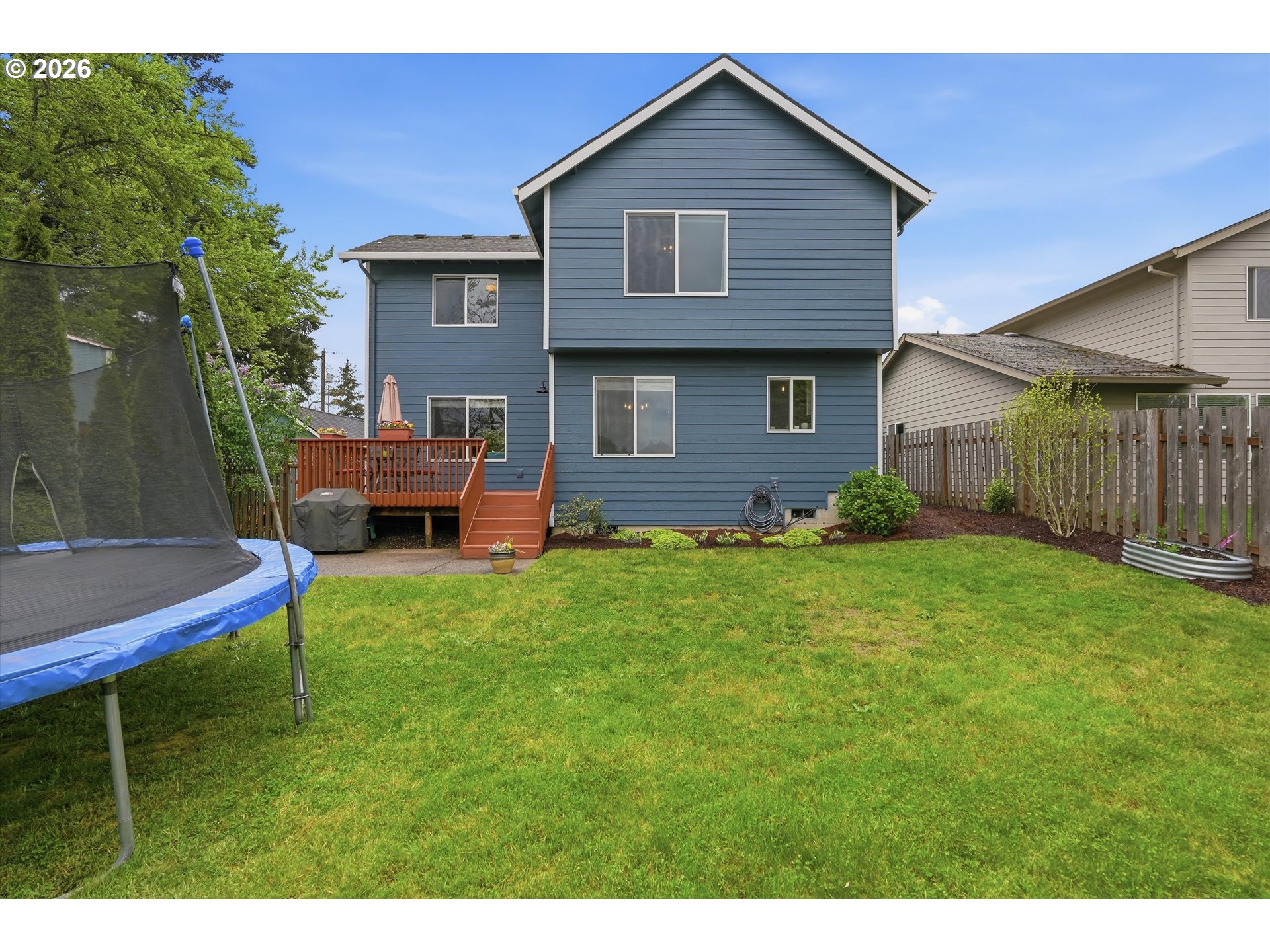 Deck, Fenced, Garden, Patio, Porch, RaisedBeds, Sprinkler, Yard