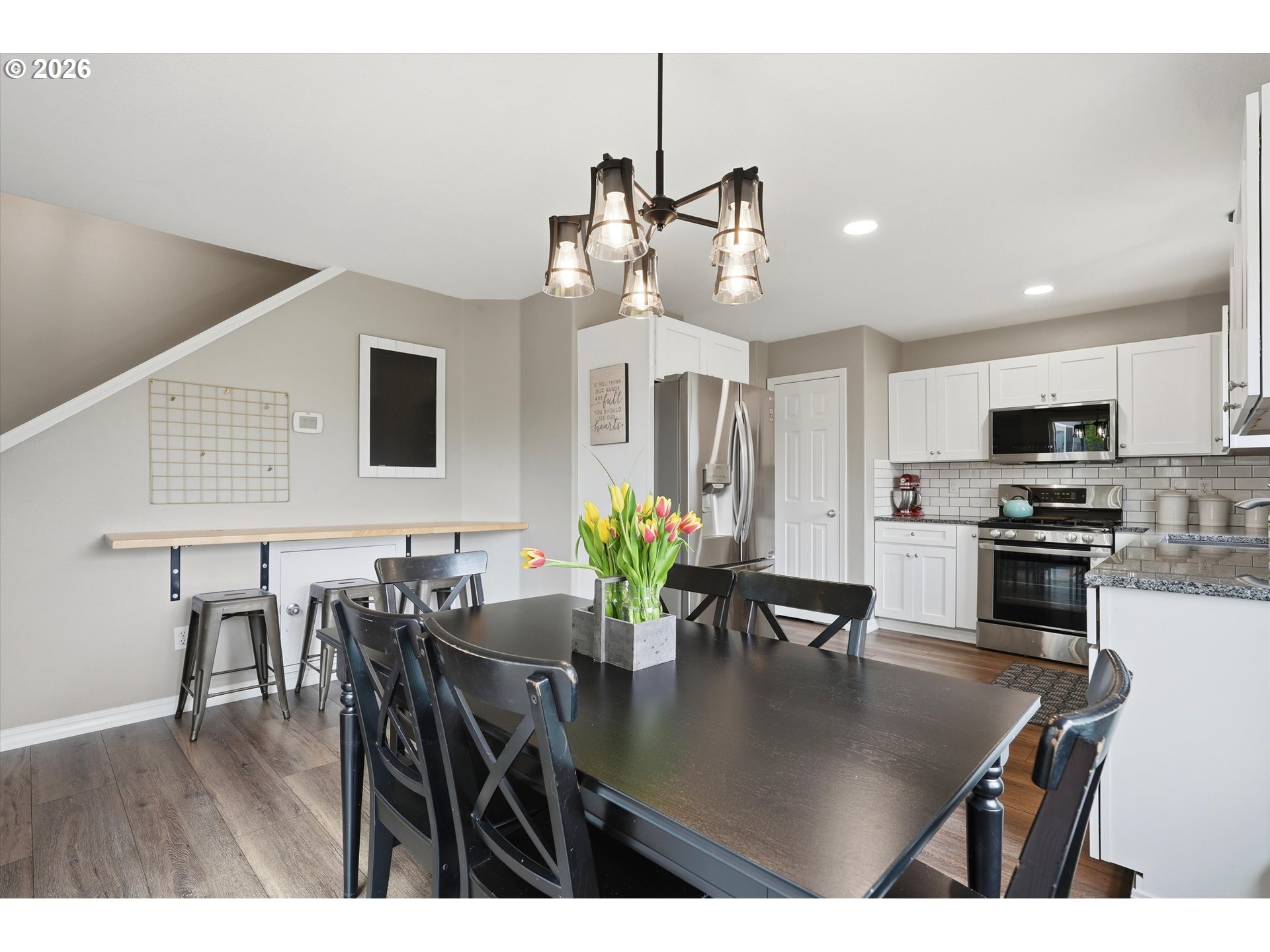 Open house Sunday, April 26th from 12-2 pm! Welcome to 180 SW 3rd Street in Dundee! From the moment you arrive, you’ll be charmed by the inviting front porch. Also take note of the extra parking and mature blueberries and raspberries. Inside, you’ll love the open flow from living to dining to kitchen, plus a cozy eat-at bar that doubles as the perfect homework spot or coffee bar. The kitchen features granite counters, a gas range, a pantry and dishwasher. LVP floors throughout the main level, new carpet upstairs and new flooring in upstairs bathrooms. Upstairs = 3 spacious bedrooms + a large bonus room (great for a 4th bedroom, play room, or bonus room). Both bathrooms have been beautifully updated. The backyard is just as sweet with a deck, garden beds, and a shed—ready for summer nights. And the location? So good. One block to Dundee Billick Park, near the new Sanders Estate Park (coming August 2026), and minutes to wineries + amazing local spots. Welcome home!