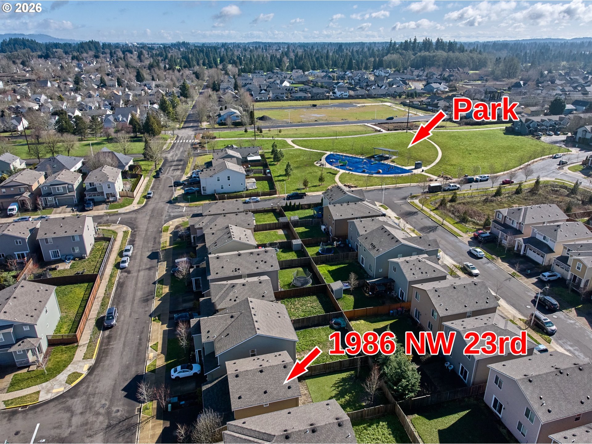 Enjoy an open-concept main level designed for modern living, with a spacious upper-level offering room to spread out. High ceilings and newer flooring enhance the bright kitchen, dining, and living areas. The kitchen features quartz countertops, a large functional island, and abundant counter space—perfect for everyday living and entertaining. Step through the slider to a fully fenced, private backyard complete with a patio, removable low-maintenance turf, and included storage shed. The home is A/C ready. Upstairs, the spacious primary suite includes a convenient pass-through walk-in closet. Additional highlights include interior laundry and a two-car garage. Located in Baker Creek West with a neighborhood greenway and park just steps away, this home combines comfort, functionality, and community living.