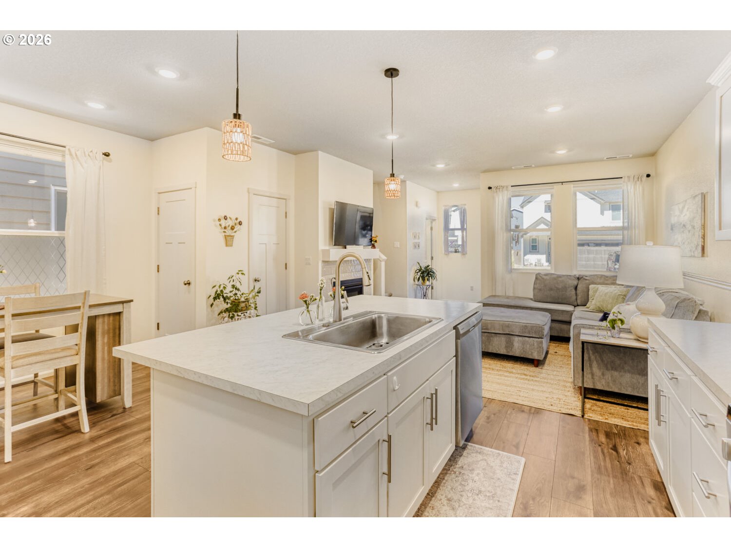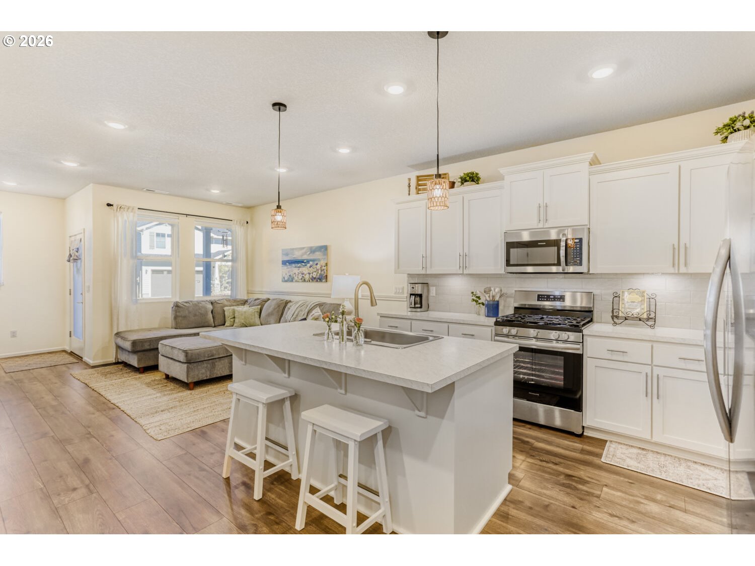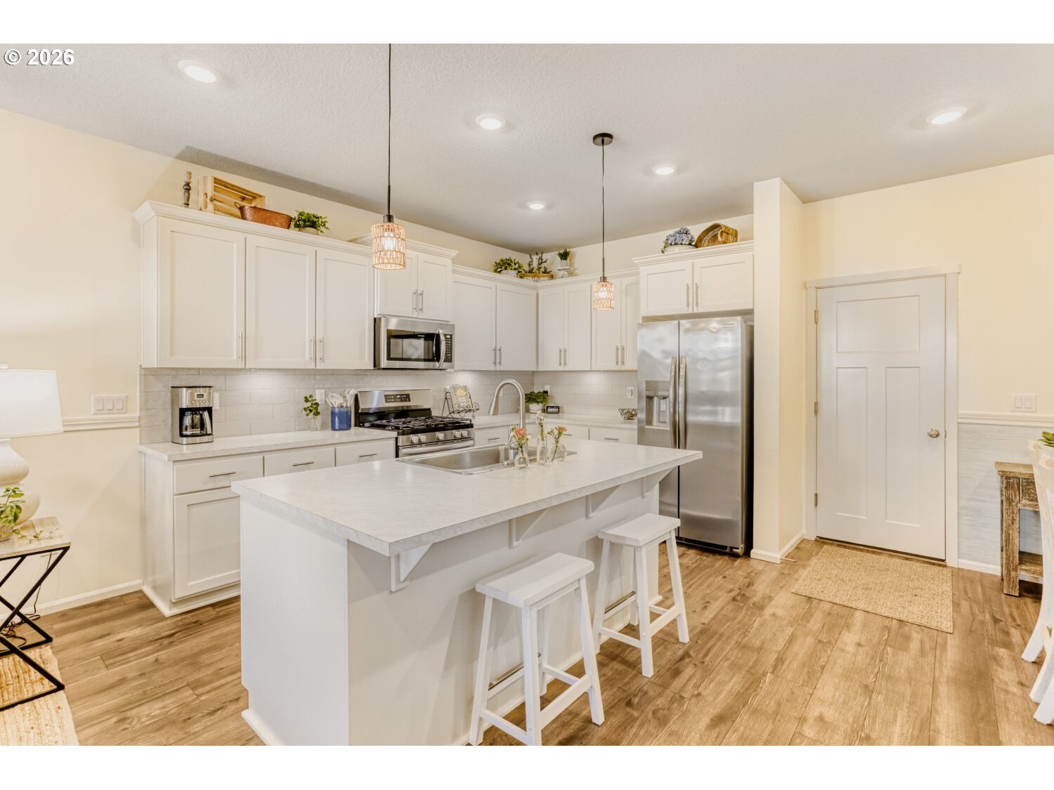 Experience refined living in this beautifully curated 3-bedroom, 2.1-bath residence in the sought-after Baker Creek North community of McMinnville. Thoughtfully designed with both elegance and functionality in mind, the home offers a versatile layout ideal for modern lifestyles, including a seamless work-from-home environment. Set amid the rolling beauty of Oregon wine country, you’re moments from the charm of downtown McMinnville, acclaimed vineyards, and premier educational institutions—while still enjoying effortless access to the Oregon Coast for scenic escapes. Inside, soaring ceilings and a light-filled, open-concept design create an atmosphere of understated sophistication. The main living space is anchored by a warm gas fireplace and flows effortlessly into a well-appointed kitchen featuring stainless steel appliances, a pantry, and an expansive island—perfect for intimate gatherings or elevated entertaining. Upstairs, a generous loft offers a flexible retreat for work, relaxation, or creativity. The primary suite is a private sanctuary, complete with a walk-in closet and a spa-inspired ensuite featuring dual vanities, a soaking tub, and a walk-in shower designed for unwinding at day’s end. Outdoors, a charming fenced front yard with manicured, low-maintenance landscaping invites peaceful mornings and relaxed evenings. Turnkey and impeccably maintained, this home offers a rare opportunity to enjoy comfort, style, and the best of McMinnville living in one of its most desirable neighborhoods, surrounded by parks and scenic trails.