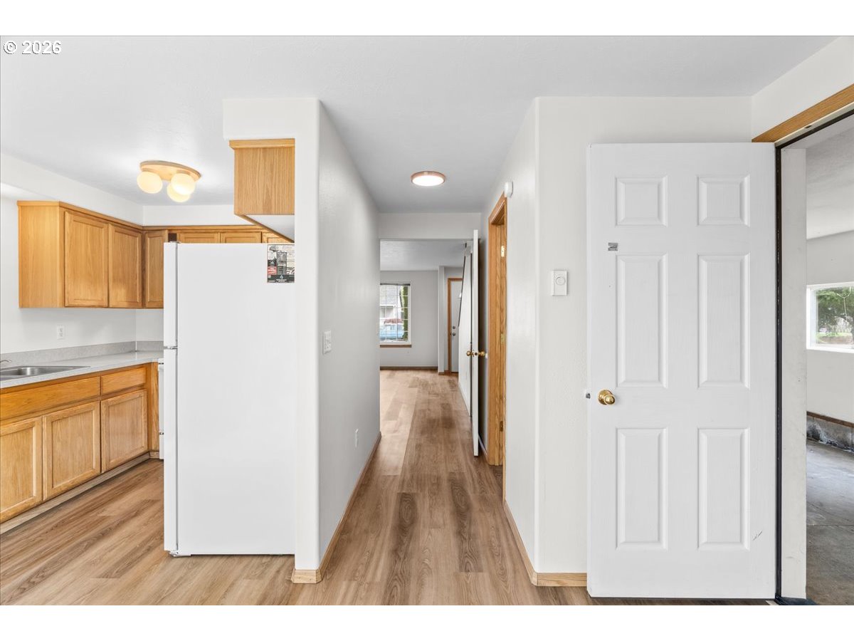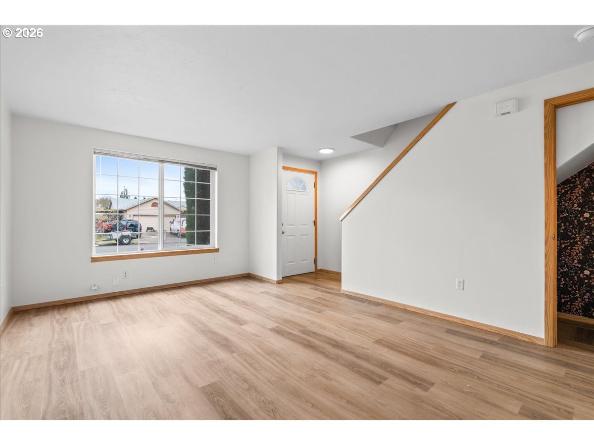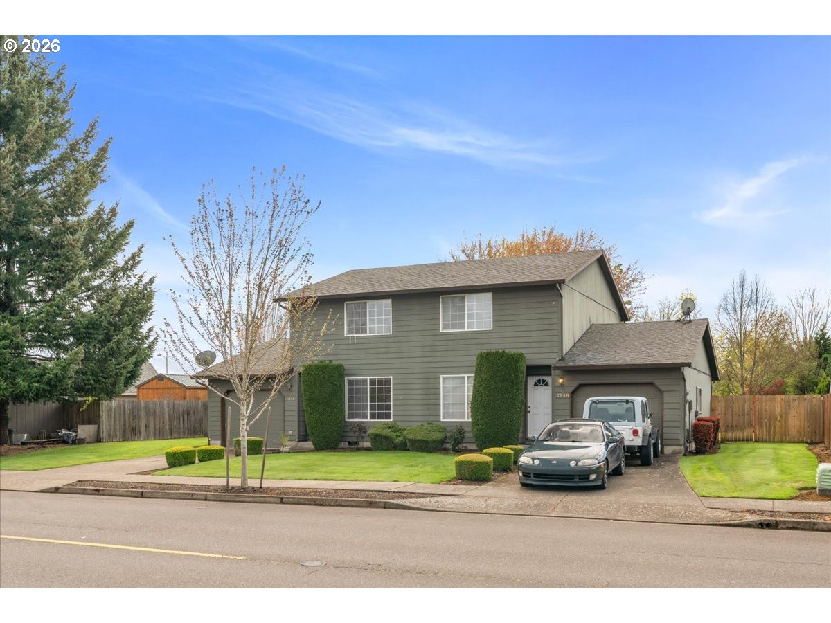 Pride-of-ownership duplex in a sought-after McMinnville southwest neighborhood. This two-story duplex offers 2 bed / 1.5 bath per side at approximately 1,050 SF each, totaling ~2,100 SF. Both units feature an attached garage, oak cabinetry, full appliance package, and generous bedroom closets. The vacant unit has been freshly updated with new LVP flooring throughout the main level and is move-in ready for an owner-occupant or new tenant. The right unit is occupied by a long-term tenant, providing immediate cash flow from day one. Out back, both units feature a large, fully fenced yard with a concrete patio, sliding glass door access, a stone fire pit, and a lush established lawn — rare outdoor space for a duplex. No HOA. Built in 1996 and meticulously cared for. Located minutes from Linfield University, downtown McMinnville, and the heart of Willamette Valley wine country. House-hack your way into homeownership or hold both units as a long-term income property.