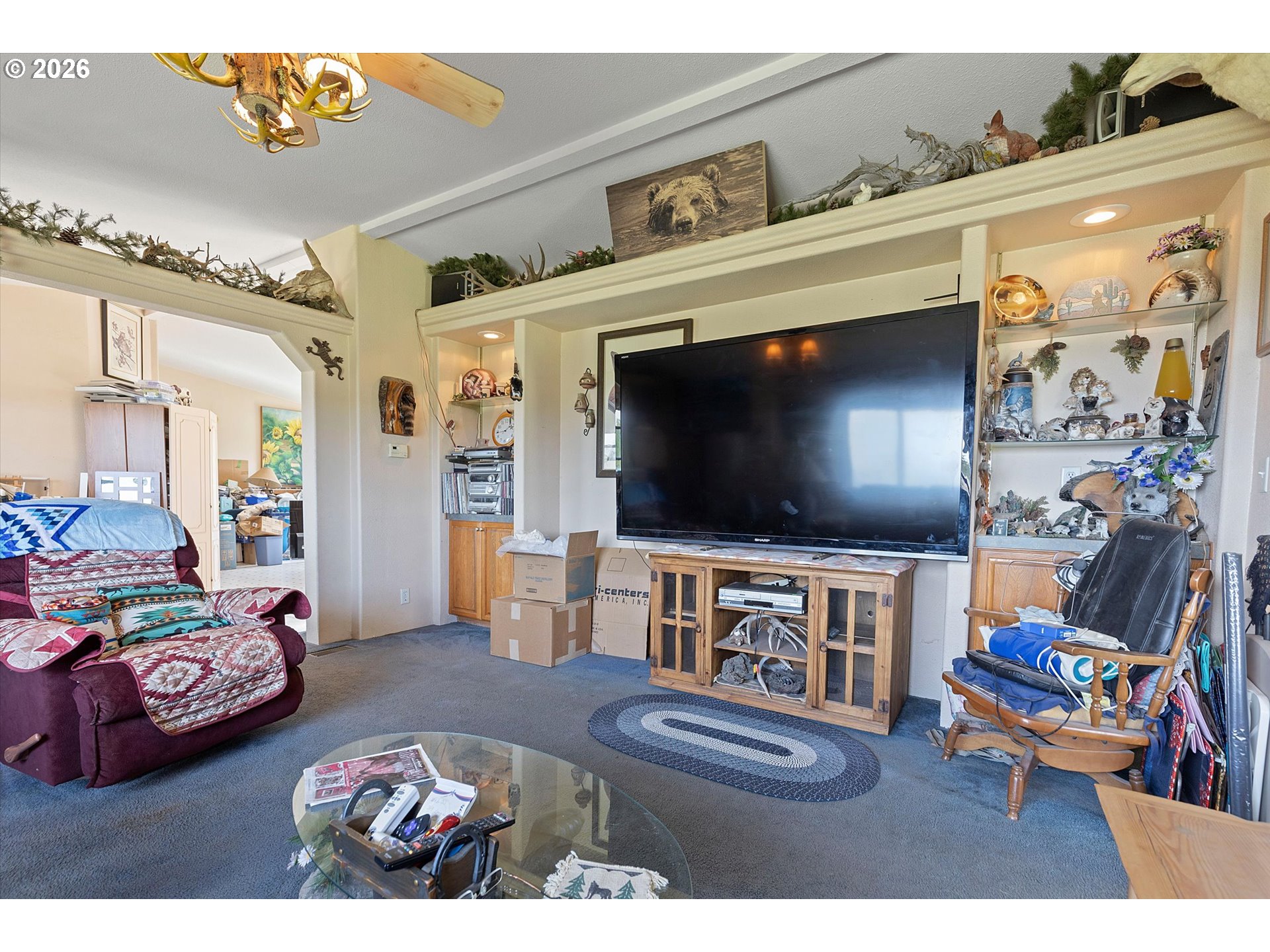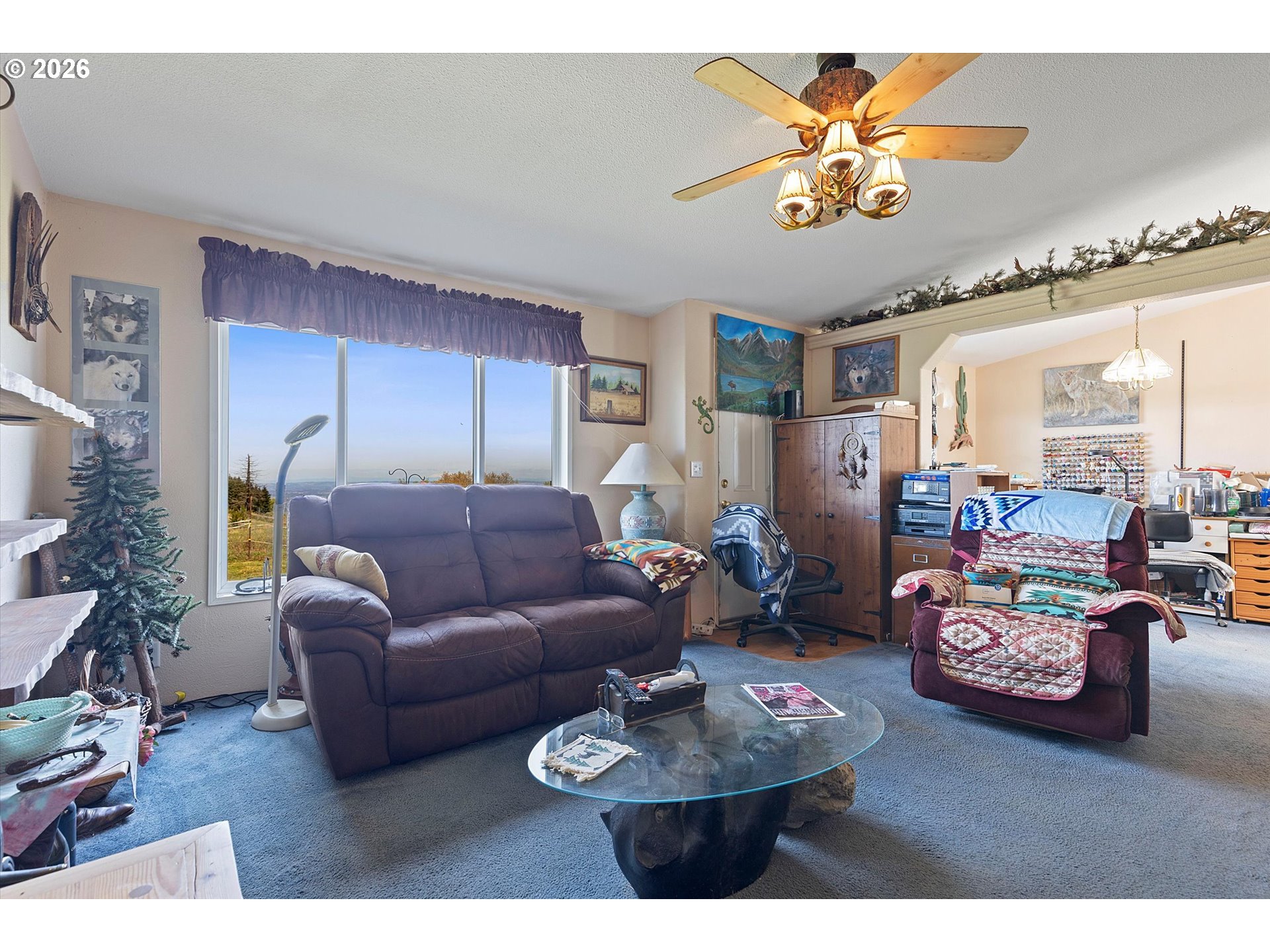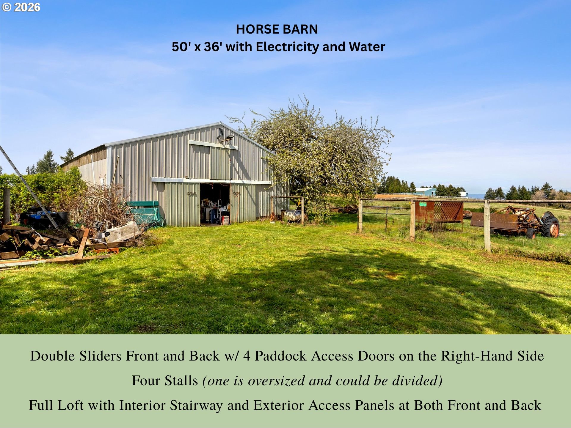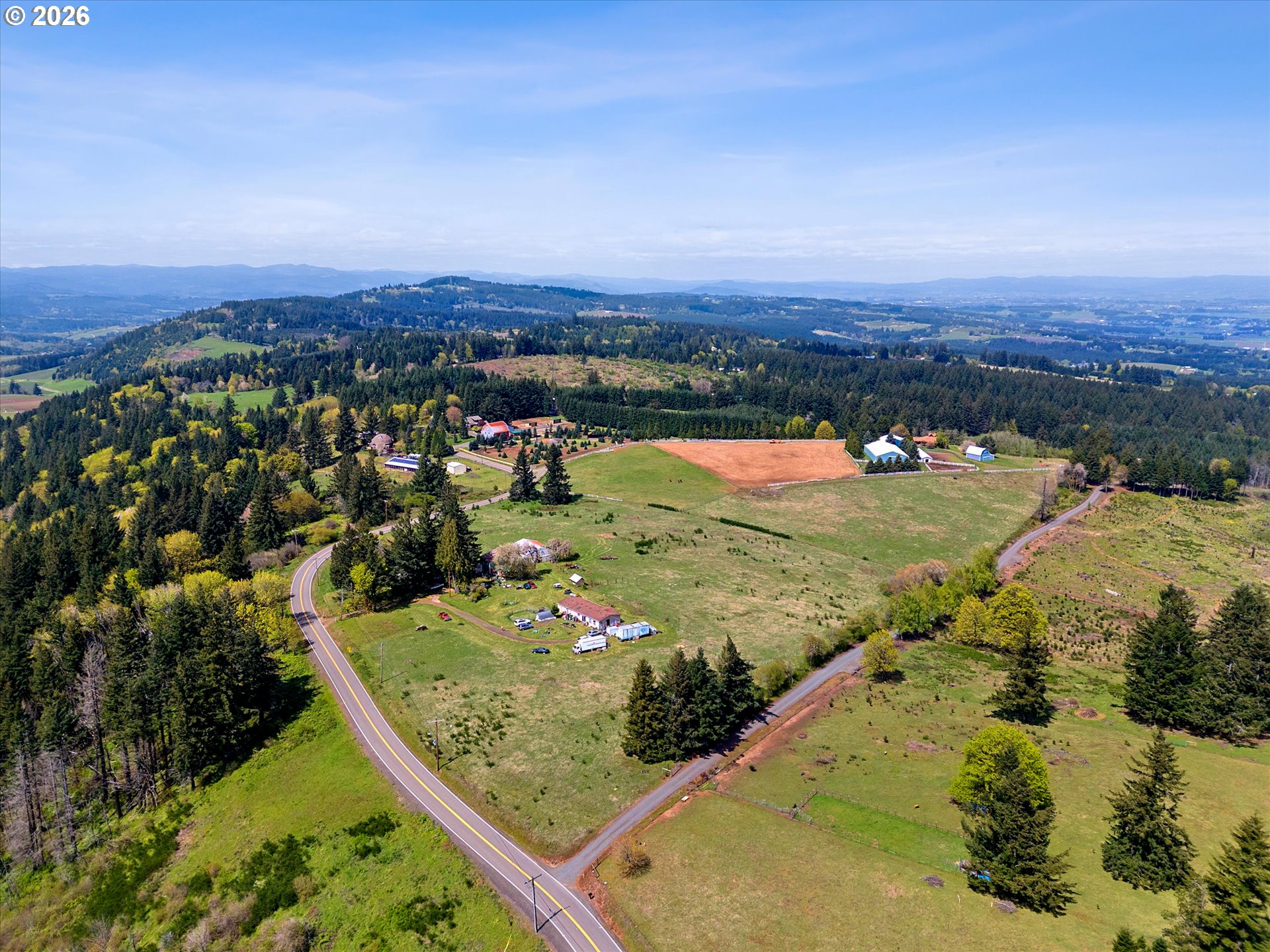 Absolutely stunning mountaintop acreage with sweeping views on both sides. A peaceful, private setting with plenty of usable land, ideal for horses, hobbies, or simply room to breathe. The 50’ x 36’ horse barn is well-equipped with electricity and water, double sliding doors at both the front and rear, plus four paddock access doors along the right side. Inside, you’ll find four stalls (including one oversized stall that could be divided) and a full loft with both an interior stairway and exterior access panels at the front and back. A 40’ x 30’ shop offers power, approximately 90% concrete slab flooring, and a 15’ x 10’ loft, perfect for storage, workspace, or equipment. The 2008 manufactured home offers a solid structure and a functional, comfortable floor plan ready for your vision. If you’ve been looking for privacy, usable acreage, and a place to unwind while taking in beautiful views, this property delivers.