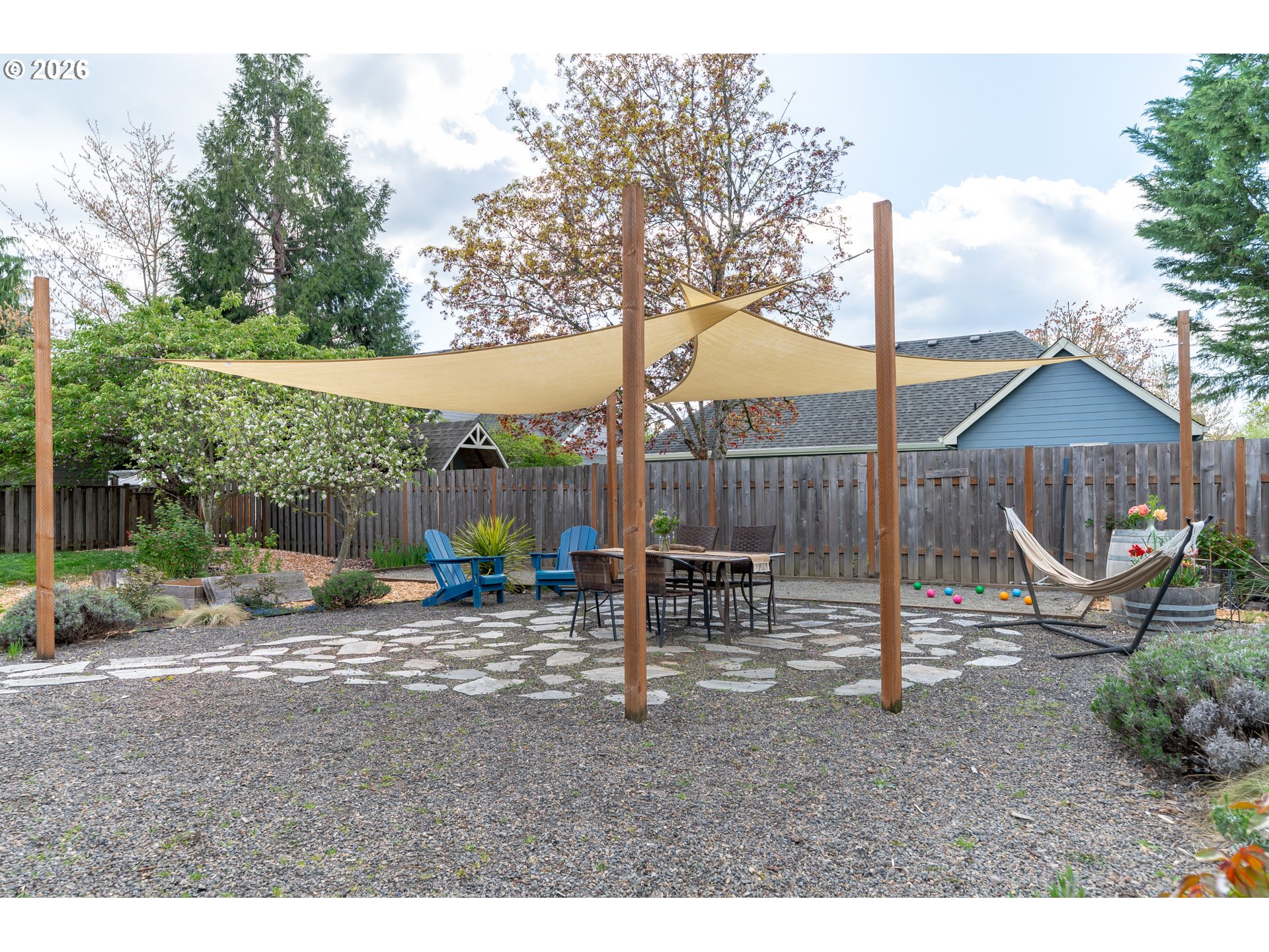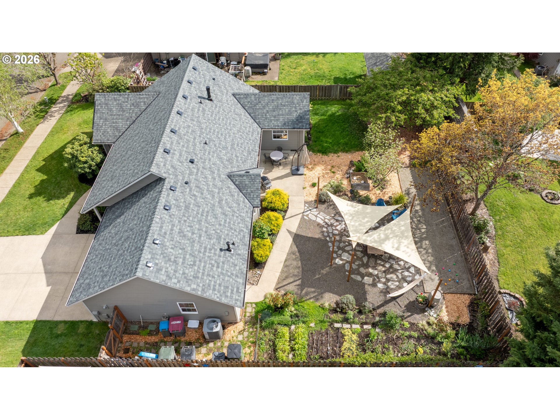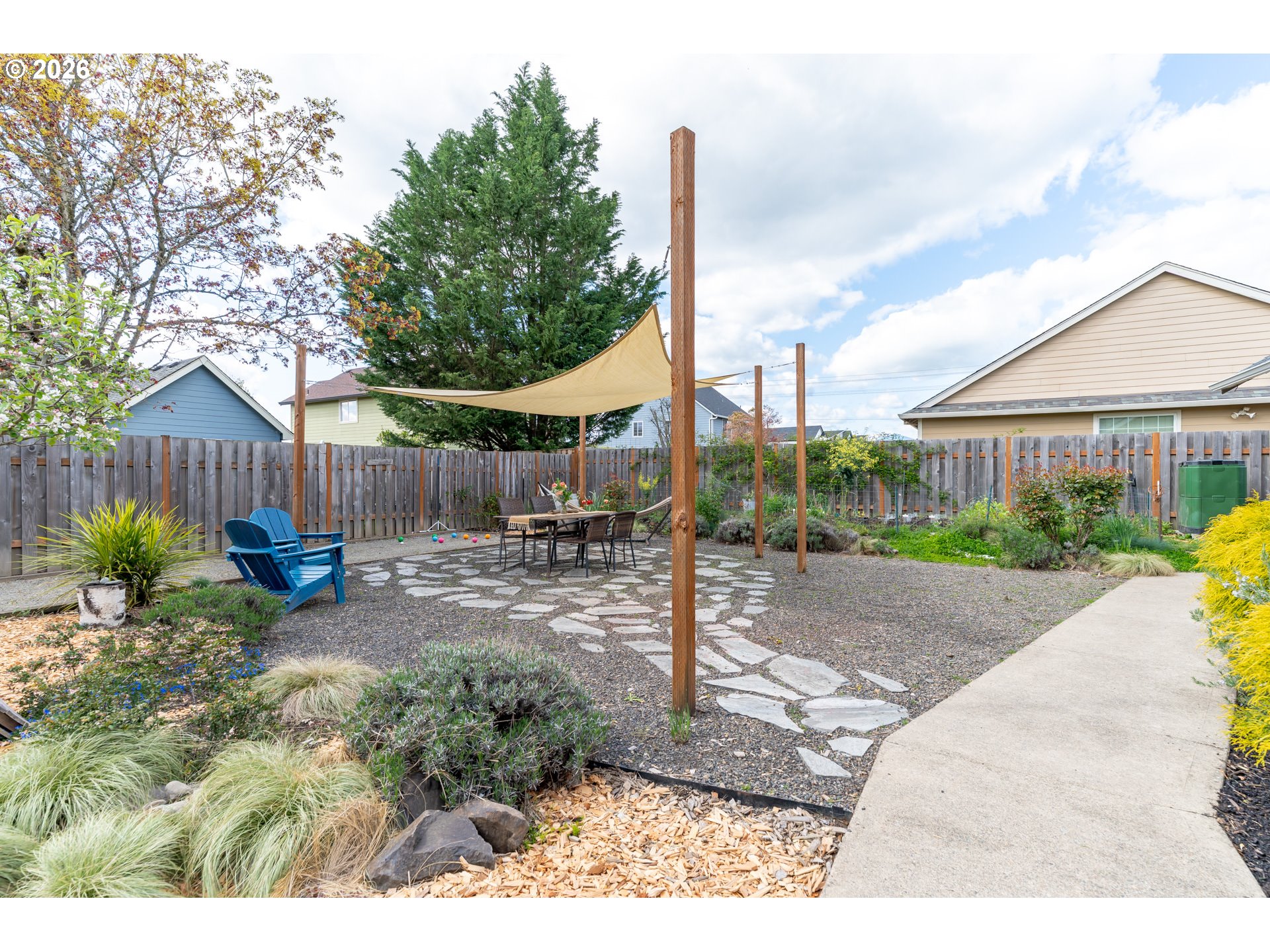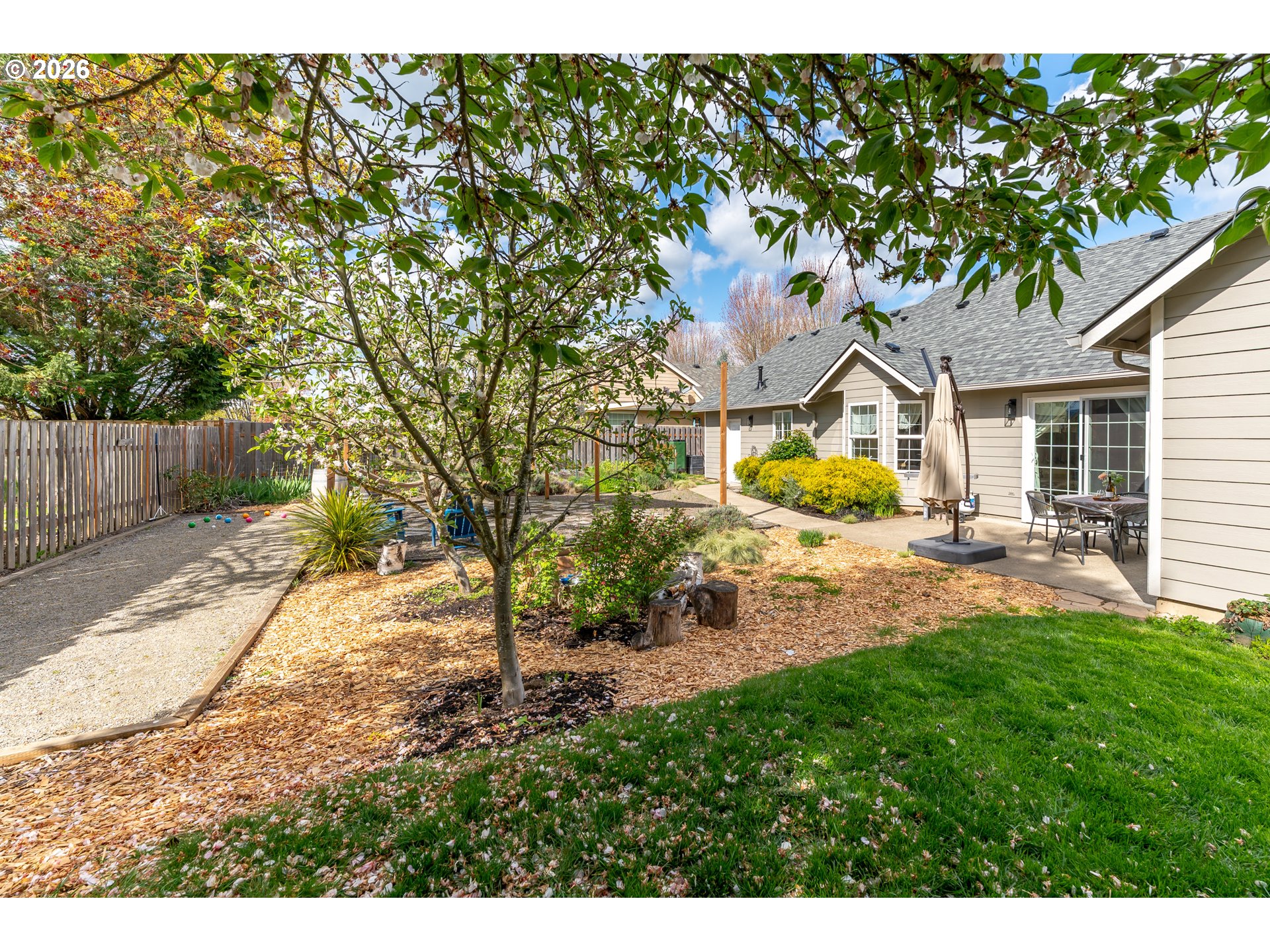 Welcome to this warm and inviting home in a truly special NW McMinnville neighborhood—where community, outdoor living, and natural beauty come together. This home is beaming with natural light, highlighting timeless natural red oak floors that were thoughtfully refinished and expanded in 2023. At the heart of the home, the vaulted living room serves as the central gathering space, anchored by a cozy gas fireplace and designed to flow seamlessly to the outdoors, creating an easy connection between indoor comfort and outdoor living. The kitchen offers a fresh, welcoming feel with updated finishes and a functional layout that makes everyday living easy. A stylish formal dining room provides the perfect space for hosting, while the thoughtfully designed layout features a private primary retreat set apart from the other bedrooms, creating a sense of separation that feels both functional and elevated. Major system updates bring peace of mind, including a brand new roof (2026), fresh exterior paint (2022/23), serviced HVAC (2026), water heater (2020), and a smart Google Nest thermostat. Step outside and the magic really begins. The backyard is a gardener’s dream and entertainer’s retreat—complete with mature apple trees, a stunning flowering cherry tree, edible perennials (blueberries, herbs, currants, and more), and a curated mix of ornamentals perfect for seasonal color and even flower arranging. Enjoy a game on your decomposed granite bocce court, relax in the shaded hardscape patio, or let kids play in the cedar sandbox filled with soft Oregon dune sand. Drip irrigation and established systems support easy maintenance. Located near parks, biking trails, hiking, and access to fresh local produce, this home offers not just a place to live but a lifestyle. All set in a friendly, connected neighborhood that truly feels like community.