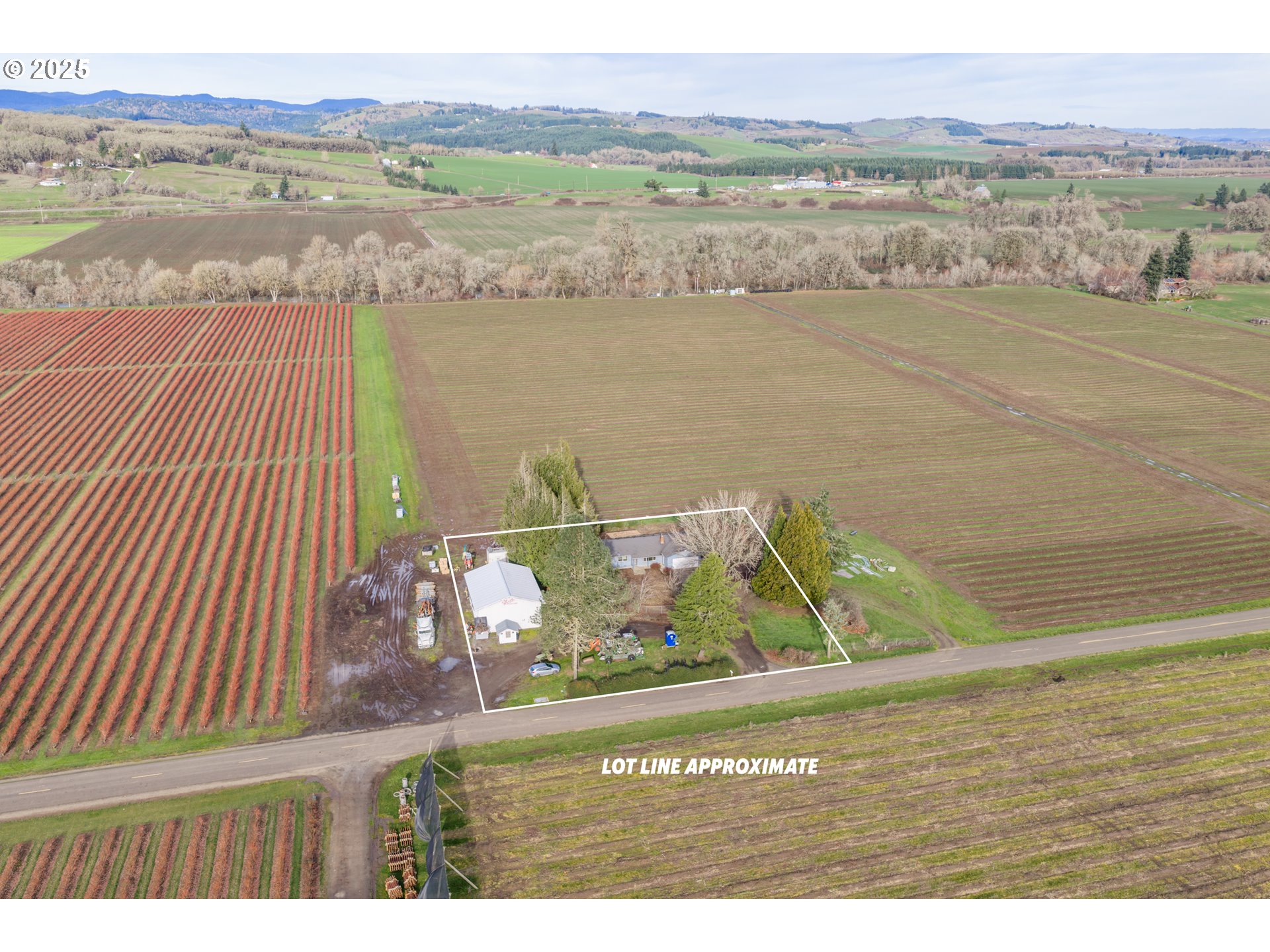 Set on one level acre surrounded by picturesque blueberry fields and working farmland, this single-story property offers peaceful rural living with excellent versatility. Enjoy open views and a quiet country atmosphere while still having the space and infrastructure for hobbies and storage.The 4-bedroom, 2-bath home was built in 1975 and features new LVP flooring extensively throughout along with a recently updated kitchen complete with new cabinets and countertops. The layout is functional and easily accessible, including a single-level design and a walk-in shower in the primary bathroom. The home has a fenced front yard, and a covered back deck, perfect for enjoying the surrounding farmland and territorial views. The property is served by Perrydale Water, with an additional well that services farm activities and the shop. Standard septic system in place.A standout feature is the large approximate 32’ x 45’ oversized shop, equipped with its own 220 power, three bays, and an insulated roof. Two additional storage units are located on the property and may be removed if not needed, offering flexibility for future use.This property offers a rare combination of rural setting, usable acreage, accessibility, and extensive shop space, making it an excellent opportunity for those seeking privacy, comfort and functionality in a country environment.