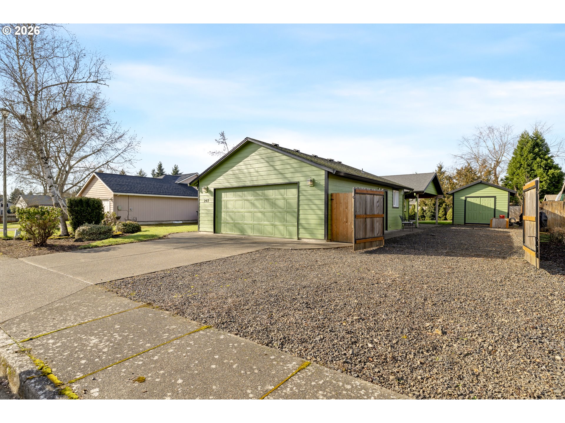 Easy living meets serious function in this well-designed single level ranch that offers the space you want and the flexibility you need. From the moment you step inside, vaulted ceilings create an airy, open feel across the great room, dining area, and kitchen. The layout is both practical and comfortable, with three bedrooms and two bathrooms, plus a spacious laundry room complete with a utility sink and extra storage space. Outside is where this property really shines. Gated RV parking gives you room for toys, trailers, or extra vehicles, while the large outbuilding with electricity opens the door to endless possibilities. Use it for storage, a workshop, hobby space, or the project area you have always wanted but never had room for. A wonderful covered patio extends your living space outdoors, perfect for morning coffee, evening gatherings, and enjoying the fresh air year round. Comfortable, functional, and incredibly versatile, this property is ready to adapt to the way you live. Schedule a showing today!
