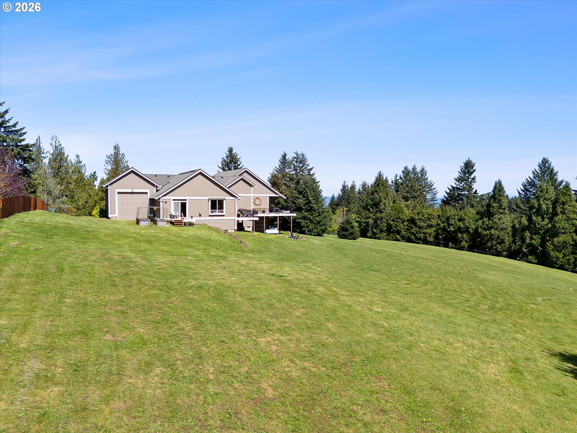 Gorgeous custom home on over 4 acres of open, beautiful land, on quiet dead end street has a full size attached ADU, and view of mountains and valley-plus small section of trees. It is a one-of-a-kind property with so many options and potential! Main house has walls of windows, extra high ceilings and vaults, formal living and dining rooms, a gorgeous gourmet kitchen great room and huge master suite, plus 3 large bedrooms and family room in daylight basement! Grand entry opens to spectacular formal living with soaring vaults, gas fireplace surrounded by windows, arches and columns. Formal dining room is open to living room has wall of windows, high ceilings, wainscotting & slider to huge deck. Gourmet kitchen is partly open to living & dining room, has huge granite cook island with eating bar, beautiful wood cabinets, wine bar, large pantry & sliding doors that go out to deck. Master suite is on the main floor and has soaring vaults, beautiful bathroom with jetted tub, shower and double sinks plus a huge walk-in closet! Large laundry room is also on the main floor with built ins and sink. The ADU is completely separate but attached, a perfect home for parents, live-in care giver, grown kids,or potentially a rental (check code)! It has a large great room with really nice kitchen, living room with gas fireplace, and slider that goes out to deck and yard. The ADU has its own full kitchen, a huge bedroom with gorgeous bathroom and walk-in closet! Oversize garage is also on the main level, and can fit 4 cars, or two cars and an RV or boat and trailer with room left over! It has an EV car charger, and an extra generator panel. The daylight basement has a big family room, 3 large bedrooms and a bathroom with slider to its own deck. The land is so awesome! Deer frequent the back yard and there are vineyards at the end of the road and all around the area. Most of the cleared acreage is covered by sprinklers. There is also a small area of trees at the far side of land.