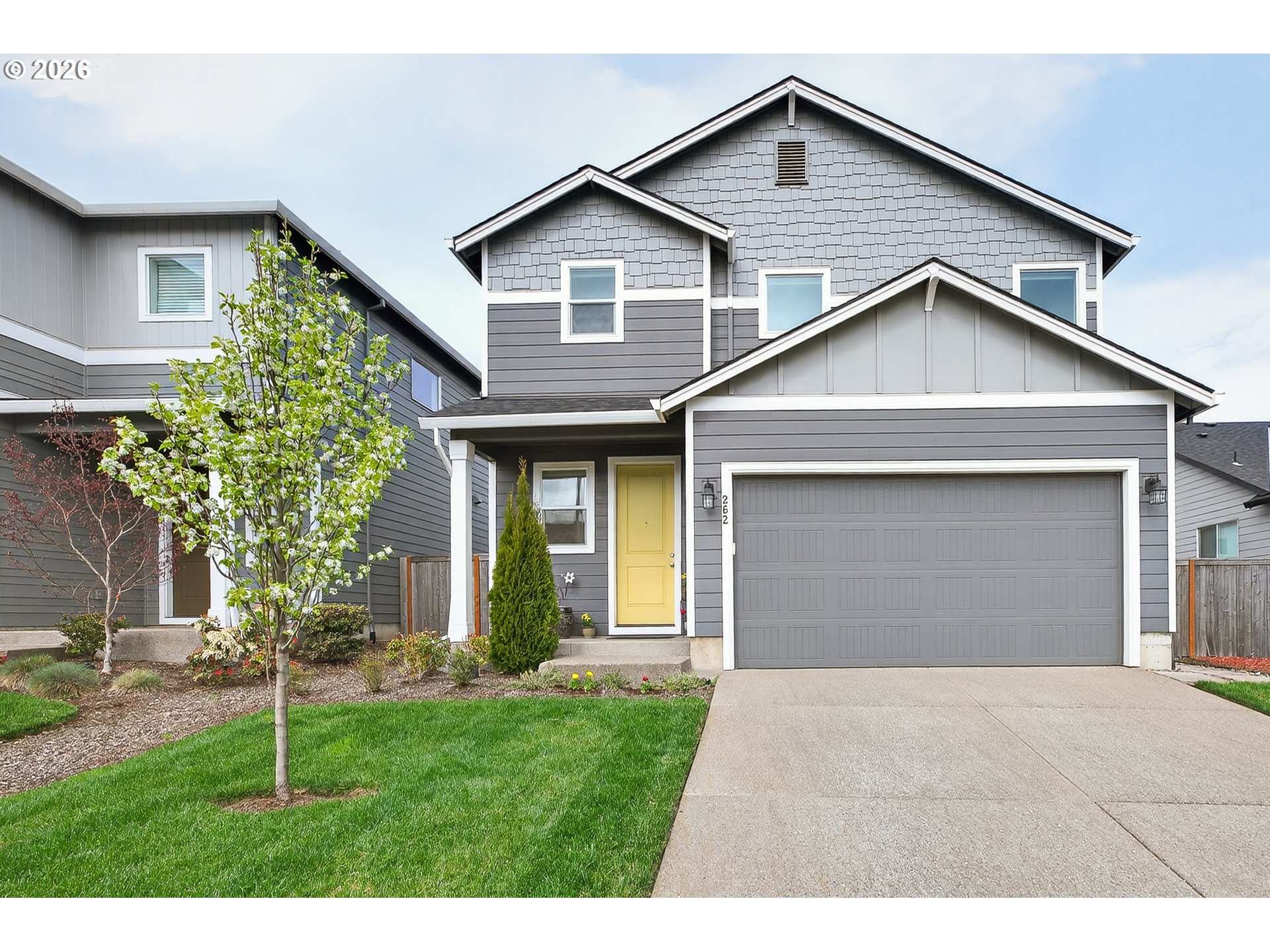 Welcome to this beautiful 2023 home, where thoughtful upgrades make it a standout in the community! Featuring 3 bedrooms and 2.5 bathrooms, this move-in ready property shines with enhancements throughout. The main level is finished with durable luxury vinyl plank flooring, making things look sharp without all the upkeep. The kitchen is equipped with gas appliances, quartz counters, and under-cabinet lighting. It opens into the living area, where a cozy gas fireplace adds both charm and comfort. Upstairs, you’ll find three light & bright bedrooms and a functional layout including an upstairs laundry room. Washer and dryer included! Outside, the low-maintenance backyard is truly a standout feature. Enjoy beautifully planned landscaping with individual drip irrigation for each plant. The upgraded awning over the new paver patio is built to last, with a more substantial feel than standard options and two skylight-style openings for natural light. Located in a desirable new community by Holt Homes, this property offers the perks of new construction along with improvements you won’t find in comparable homes.