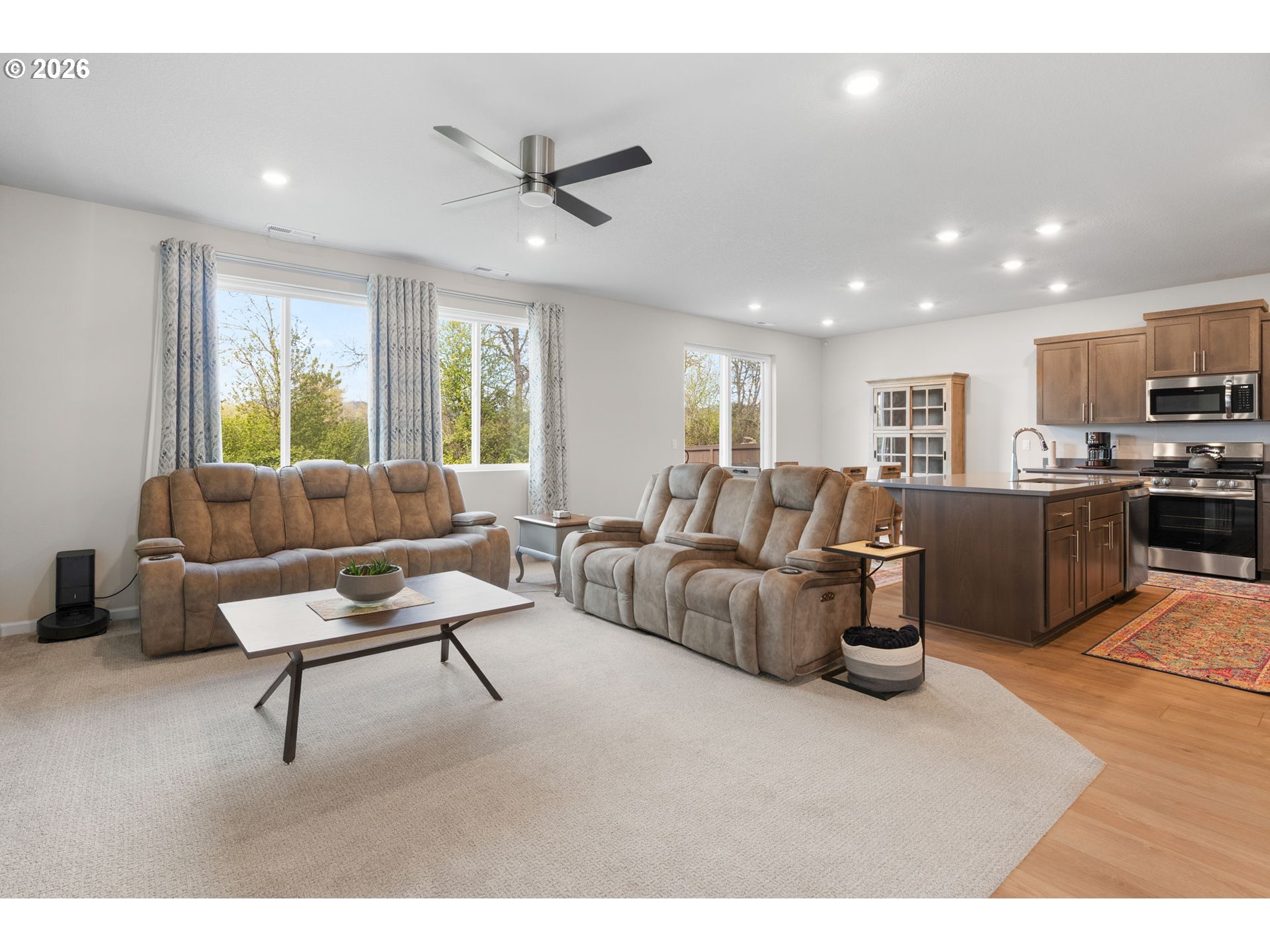 Welcome to 2731 NW Hill Rd in McMinnville—a thoughtfully maintained home offering comfort, convenience, and smart upgrades throughout.Inside, you’ll find a functional layout designed for everyday living.The heart of the home is the gourmet kitchen, featuring a large island that’s perfect for entertaining, cooking, and gathering with family and friends. Just off the main living space, it creates an inviting flow ideal for both everyday living and hosting.The hard-wired ceiling fans provide efficient, year-round comfort. The bedrooms are equipped with sunshades, creating a restful retreat while helping keep the home cool and energy-efficient.The primary suite offers a spacious walk-in closet, providing ample storage and a comfortable, private retreat. Backing up to a green space, the home offers added privacy and a peaceful outdoor setting—ideal for relaxing or entertaining. Spacious back yard and planter boxes—perfect for gardening enthusiasts or anyone looking to grow their own fresh herbs and vegetables.This property also includes a smart-operated sprinkler system, making lawn care simple and convenient with modern technology at your fingertips.Additional perks: washer and dryer and TVs - negotiable.Located in a desirable McMinnville neighborhood, this home combines practical features with everyday comfort—ready for its next owner to enjoy. Come and fall in love with this beauty!