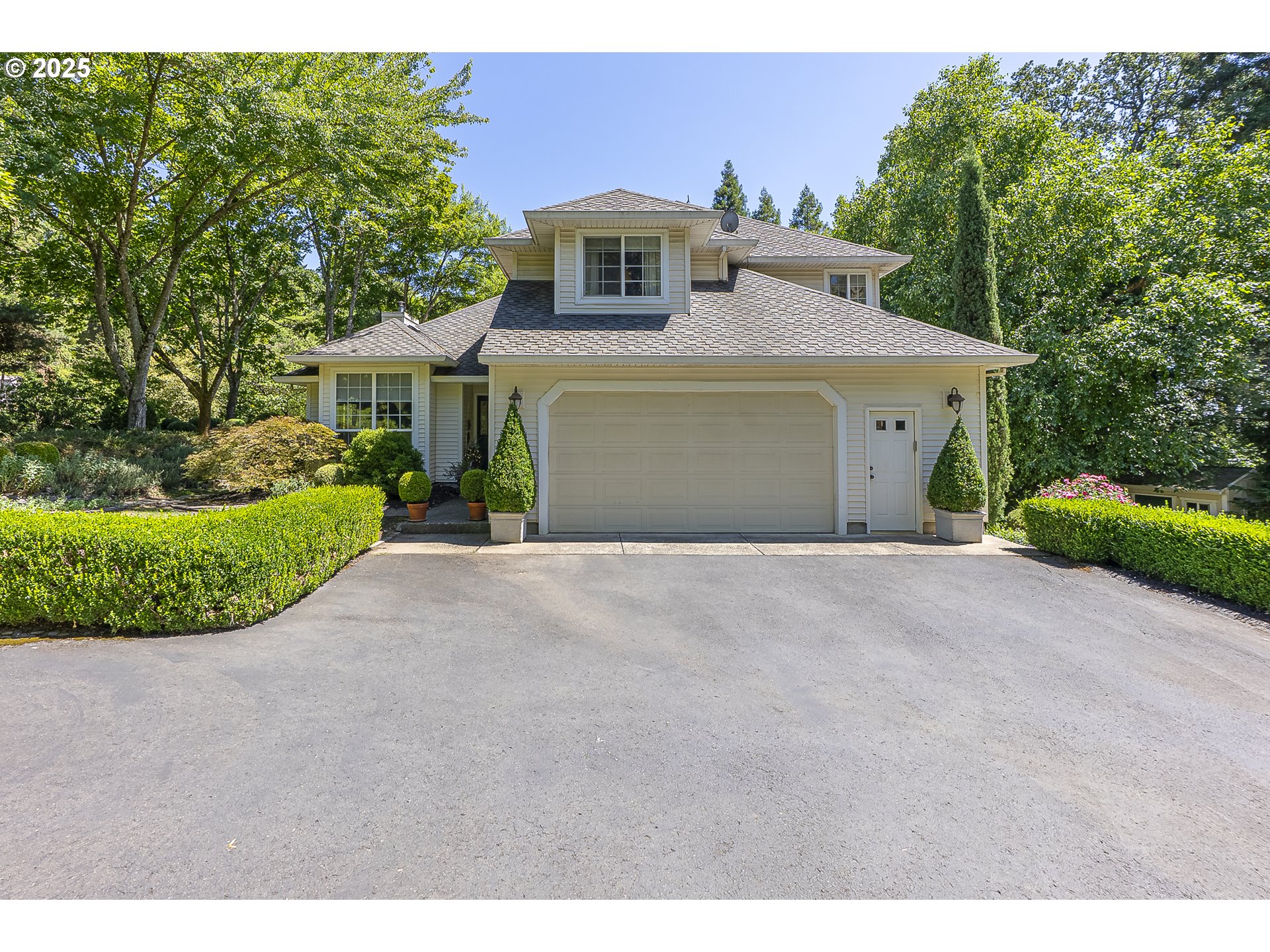 Builder's own custom beauty placed like a gem in a perfectly curated setting: 1.16-acre of scattered deciduous and evergreen trees, close-cropped hedges and flowering perennials crisscrossed by garden paths and bisected by a seasonal creek--with a footbridge, of course, and accented with a gazebo, and all close in to town. Inside: Open concept floorplan with high ceilings, gas fireplace, automated blinds, central vacuum, rich cherrywood cabinets, built-in features and hand-painted Italian tilework. In the kitchen, newer stainless appliances, cook's island with ceramic range and breakfast bar, yards of counterspace and a built-in buffet and wine rack. A front-of-the house office is vaulted, with plenty of natural window light for work...or, practicing your putting. Upstairs: Three spacious bedrooms including a full primary suite with double vanity, walk-in shower and walk-in closet. Need storage? The garage is 640 sf!!