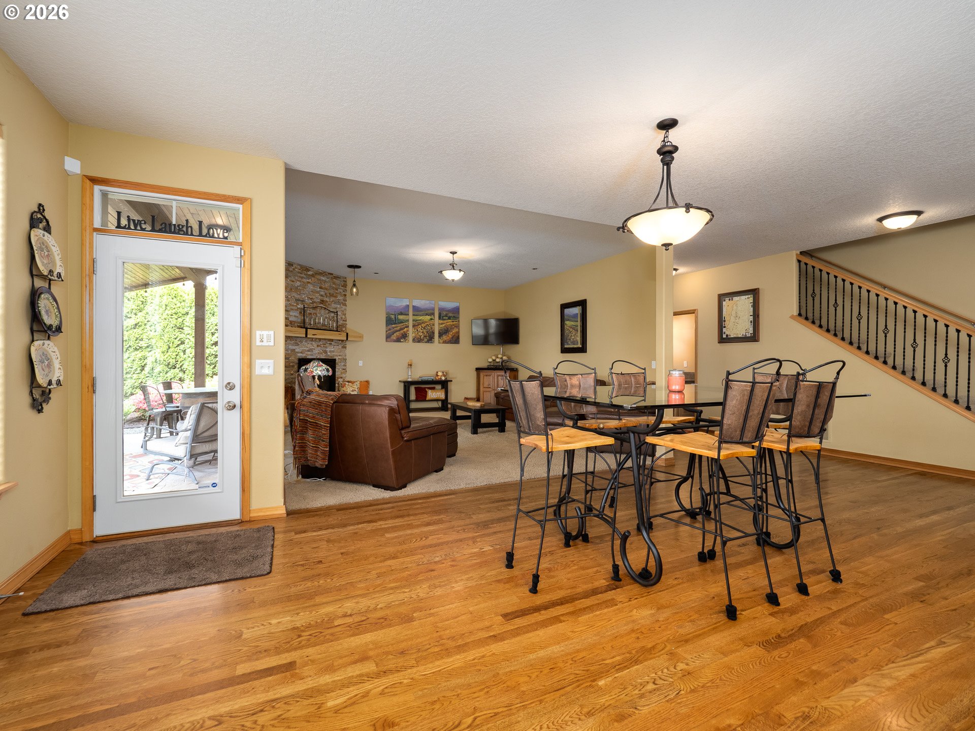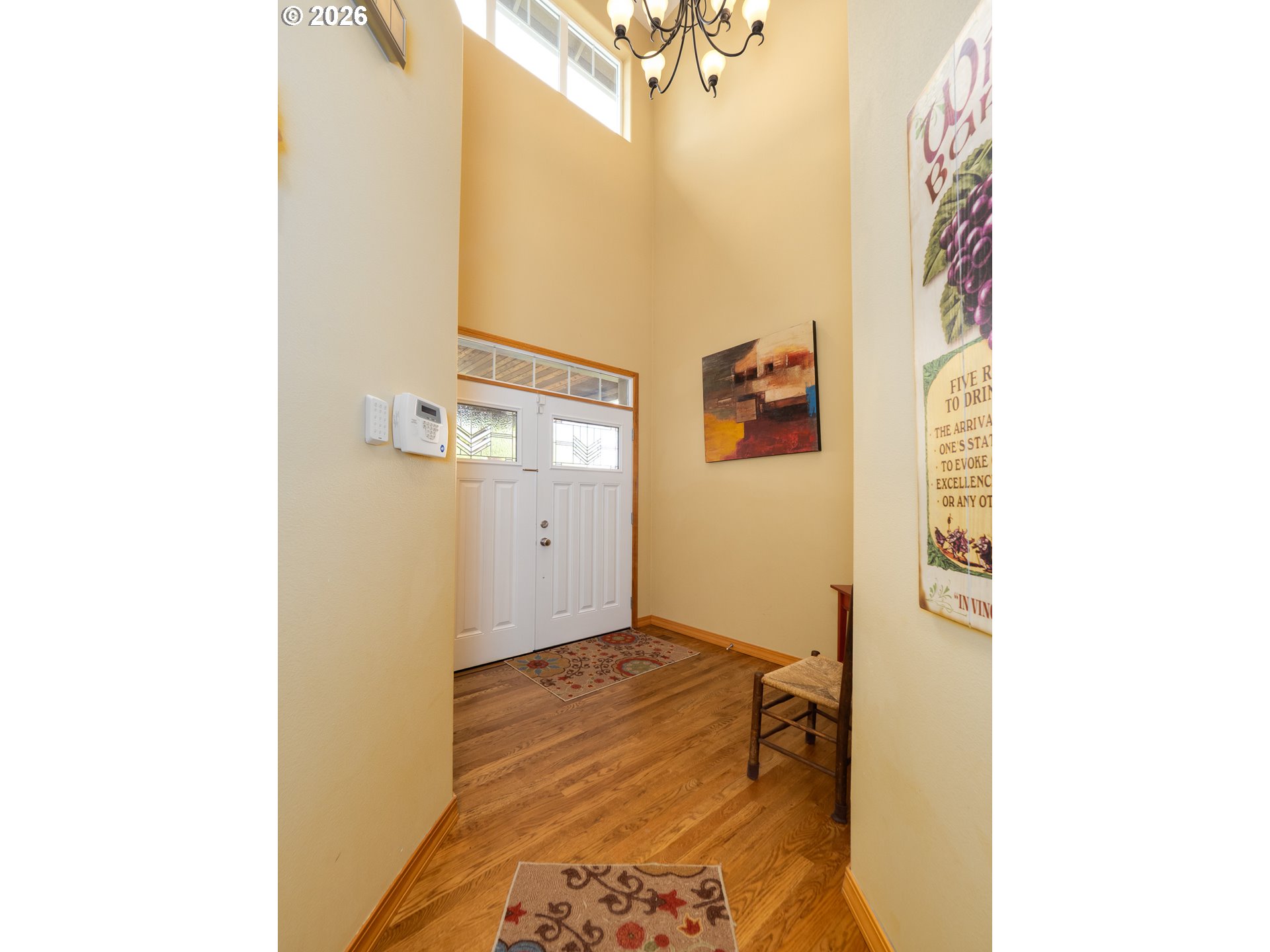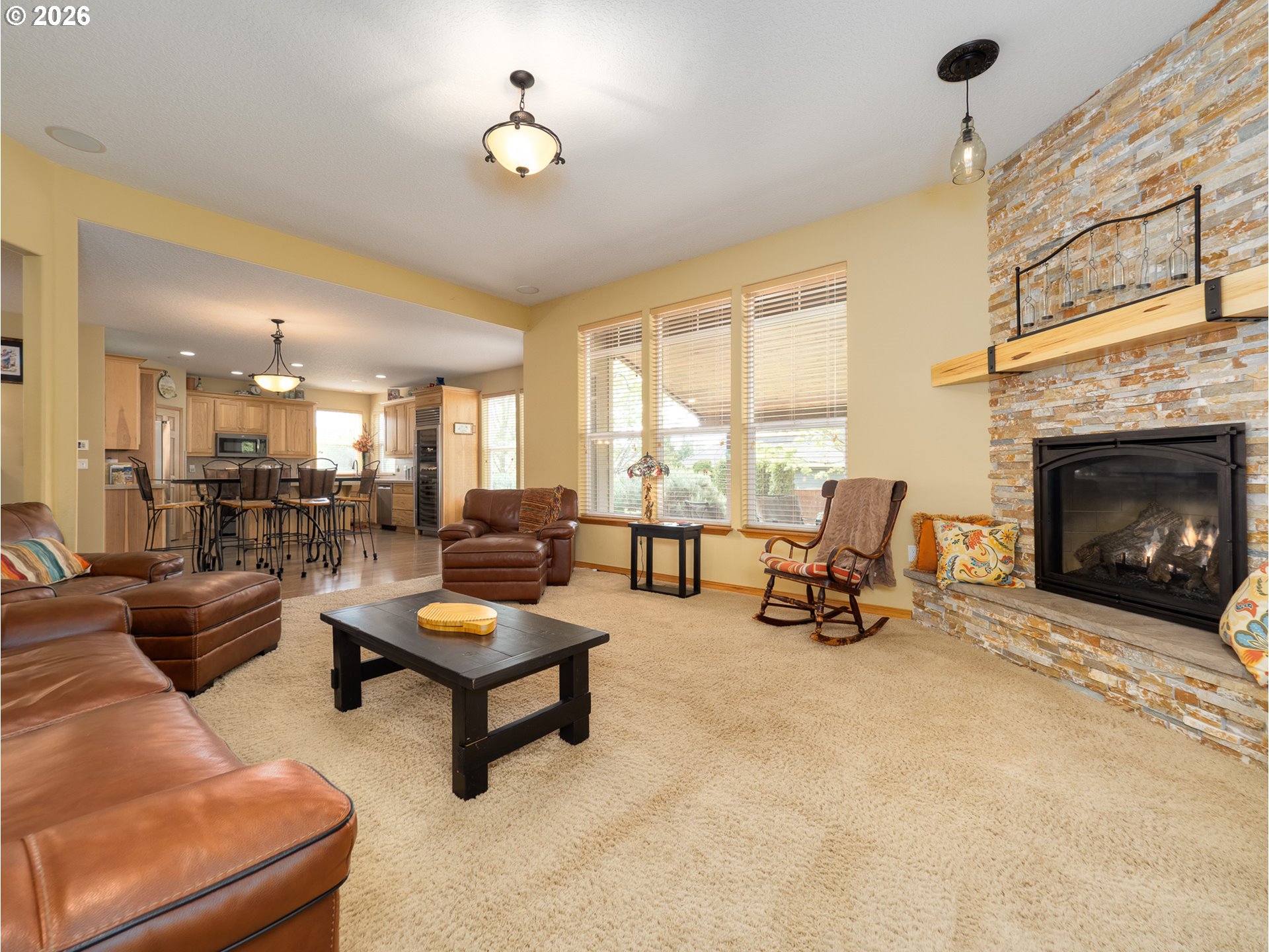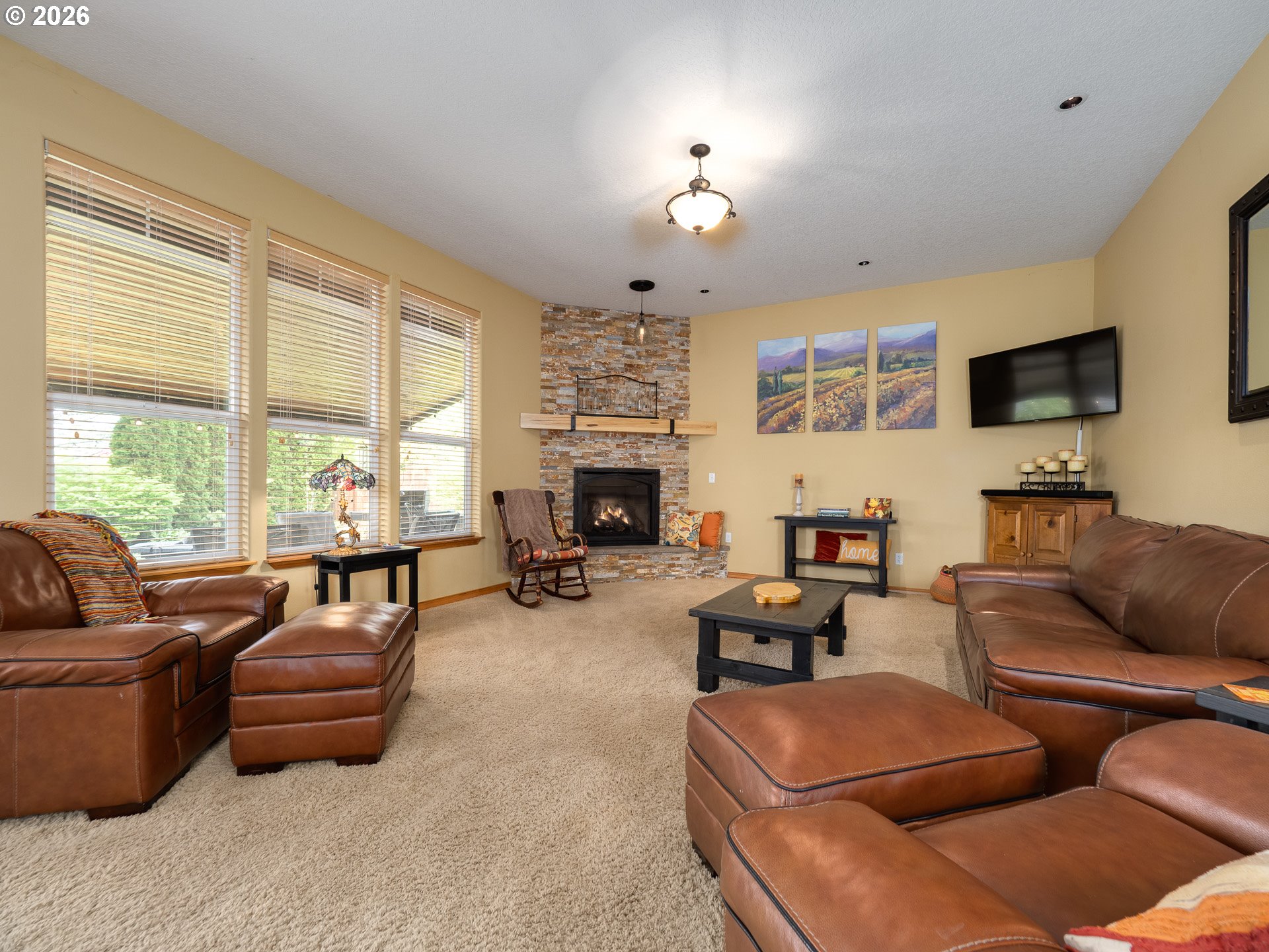 An Entertainer's Delight at Whistler's Ridge! This home welcomes you with a spacious, open foyer that immediately sets a warm and inviting tone. Abundant daylight fills the interior, creating a comfortable & welcoming atmosphere throughout the living areas. The centerpiece of the main living space is a stunning 11-foot stone-wall gas fireplace, offering both elegance & warmth. The kitchen & entertaining features are designed for culinary enthusiasts, equipped with Bosch stainless-steel appliances, a central island & a large built-in Sub-Zero wine refrigerator. This setup provides ample room for meal preparation and hosting gatherings. High ceilings contribute to an expansive area that is ideal for entertaining & dining. The flexible main-level 4th bedroom, accented with French doors & built-in cabinets, offers versatility as a guest room, den, or office, adapting easily to your needs. Upstairs features 10-ft ceilings & a spacious bonus/media room with a built-in entertainment center & an integrated indoor/outdoor sound system, perfect for media & entertainment activities. The large master suite serves as a private retreat, equipped with dual vanities, a soaking tub, a large separate shower & a generous walk-in closet. The additional bedrooms are well-sized & each include ceiling fans. The fenced private backyard includes a covered patio with a natural gas hookup, making it perfect for outdoor grilling. Professionally landscaped grounds feature a water element, a dedicated gardening area with raised beds, a 9-zone sprinkler system, a playground & a picnic area. A three-car garage offers ample parking & storage space. Additional amenities further enhance the functionality and appeal of the home. Situated in a quality neighborhood, the home offers picturesque surroundings & convenient access to Tom Gail Park & the charming downtown area of Newberg. Residents will enjoy proximity to first-class restaurants & wineries. The property benefits from having no HOA fees.