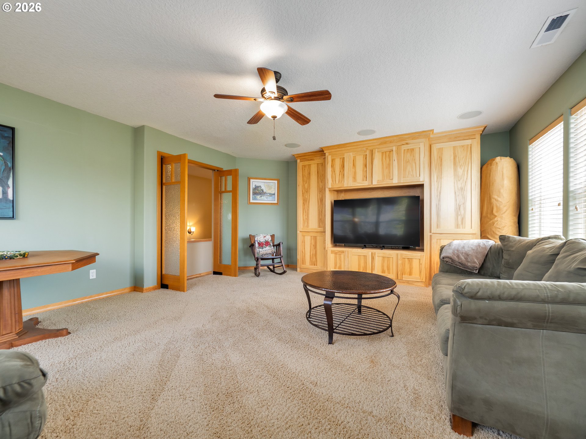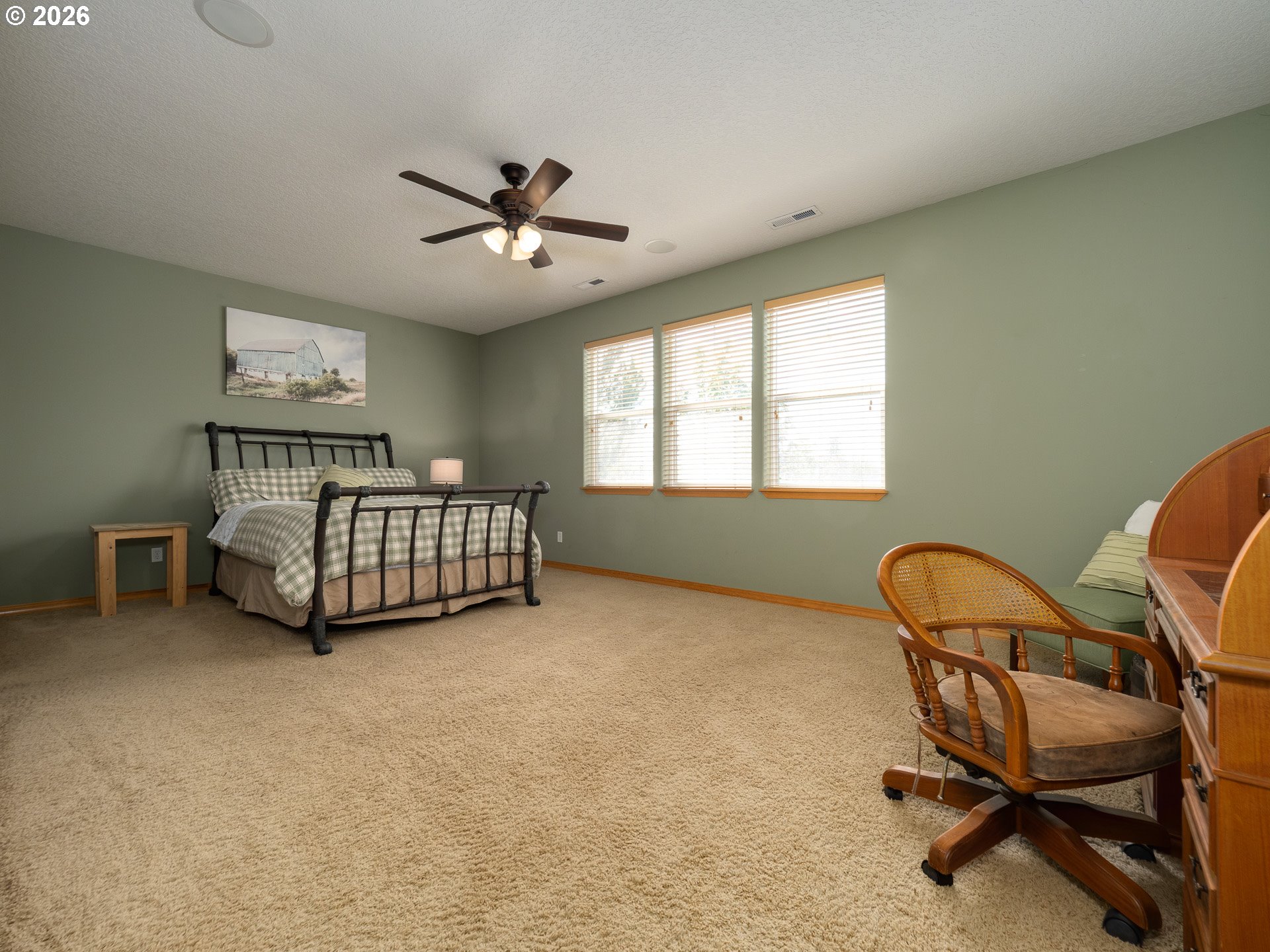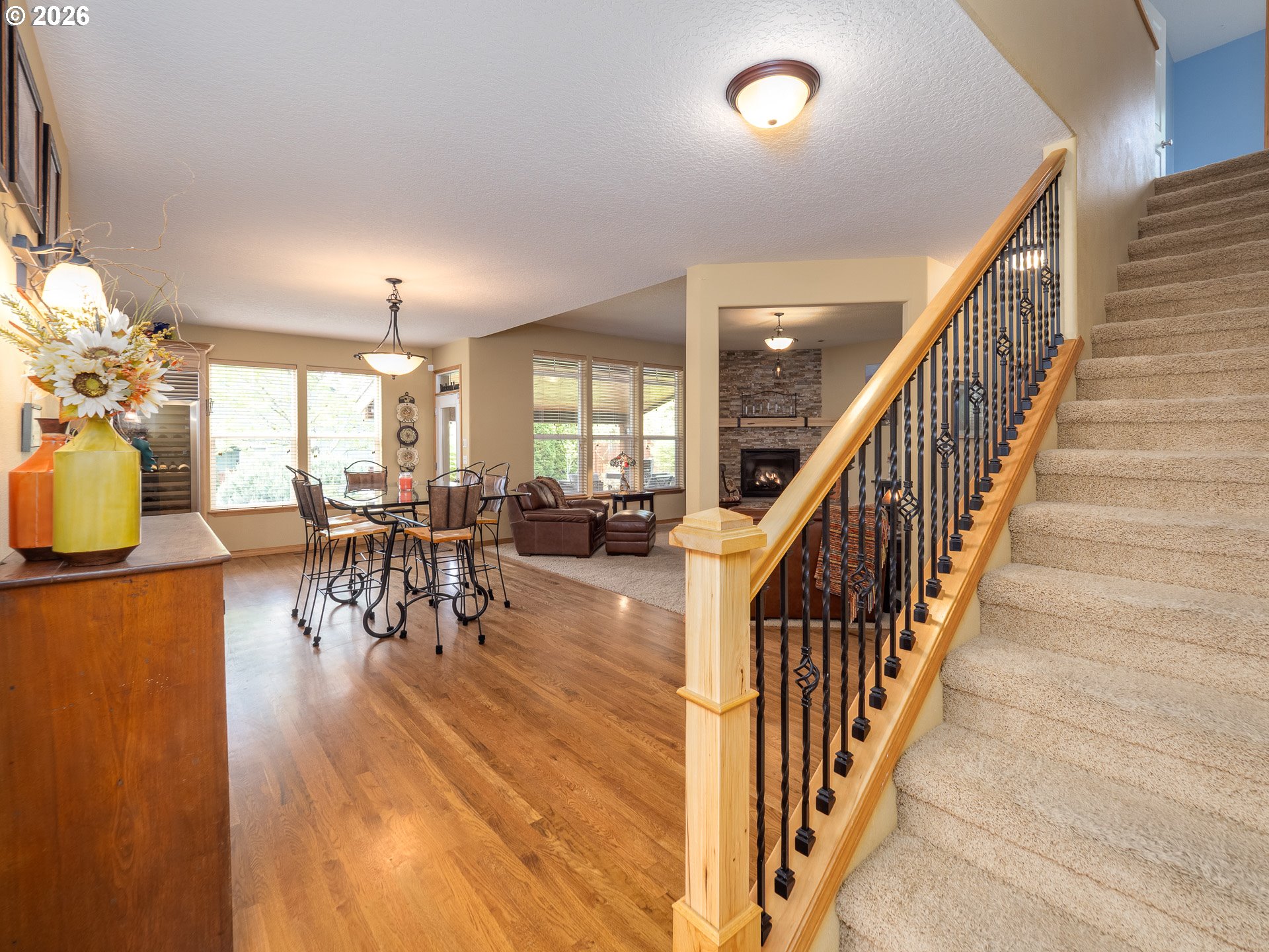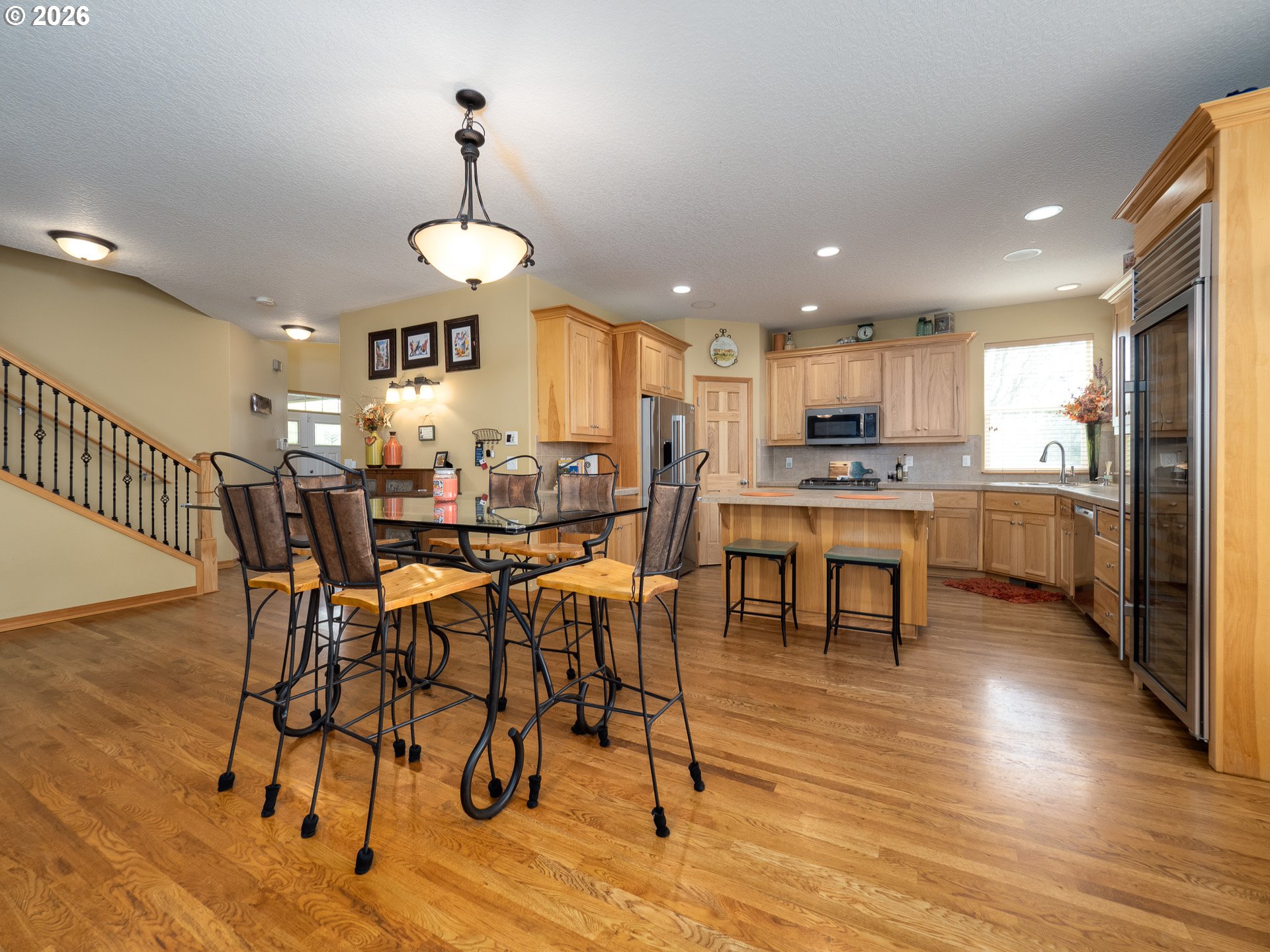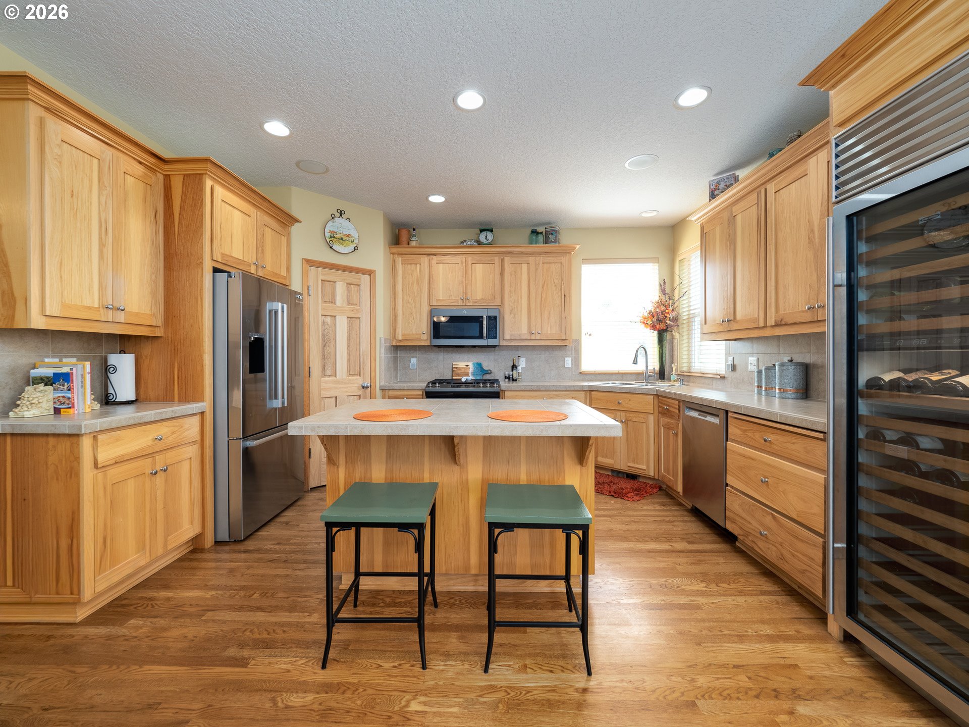 An Entertainer's Delight at Whistler's Ridge! This home welcomes you with a spacious, open foyer that immediately sets a warm and inviting tone. Abundant daylight fills the interior, creating a comfortable & welcoming atmosphere throughout the living areas. The centerpiece of the main living space is a stunning 11-foot stone-wall gas fireplace, offering both elegance & warmth. The kitchen & entertaining features are designed for culinary enthusiasts, equipped with Bosch stainless-steel appliances, a central island & a large built-in Sub-Zero wine refrigerator. This setup provides ample room for meal preparation and hosting gatherings. High ceilings contribute to an expansive area that is ideal for entertaining & dining. The flexible main-level 4th bedroom, accented with French doors & built-in cabinets, offers versatility as a guest room, den, or office, adapting easily to your needs. Upstairs features 10-ft ceilings & a spacious bonus/media room with a built-in entertainment center & an integrated indoor/outdoor sound system, perfect for media & entertainment activities. The large master suite serves as a private retreat, equipped with dual vanities, a soaking tub, a large separate shower & a generous walk-in closet. The additional bedrooms are well-sized & each include ceiling fans. The fenced private backyard includes a covered patio with a natural gas hookup, making it perfect for outdoor grilling. Professionally landscaped grounds feature a water element, a dedicated gardening area with raised beds, a 9-zone sprinkler system, a playground & a picnic area. A three-car garage offers ample parking & storage space. Additional amenities further enhance the functionality and appeal of the home. Situated in a quality neighborhood, the home offers picturesque surroundings & convenient access to Tom Gail Park & the charming downtown area of Newberg. Residents will enjoy proximity to first-class restaurants & wineries. The property benefits from having no HOA fees.