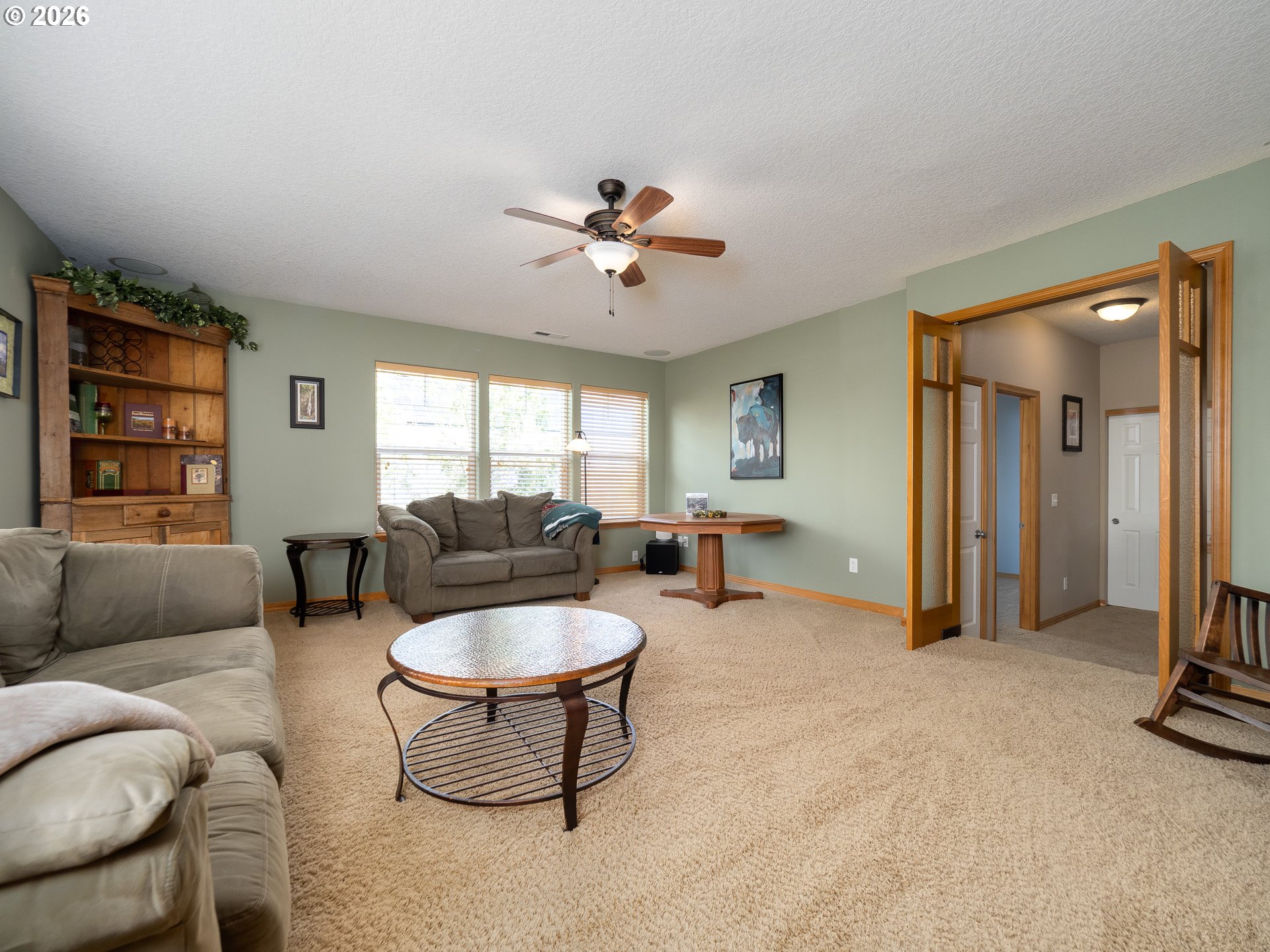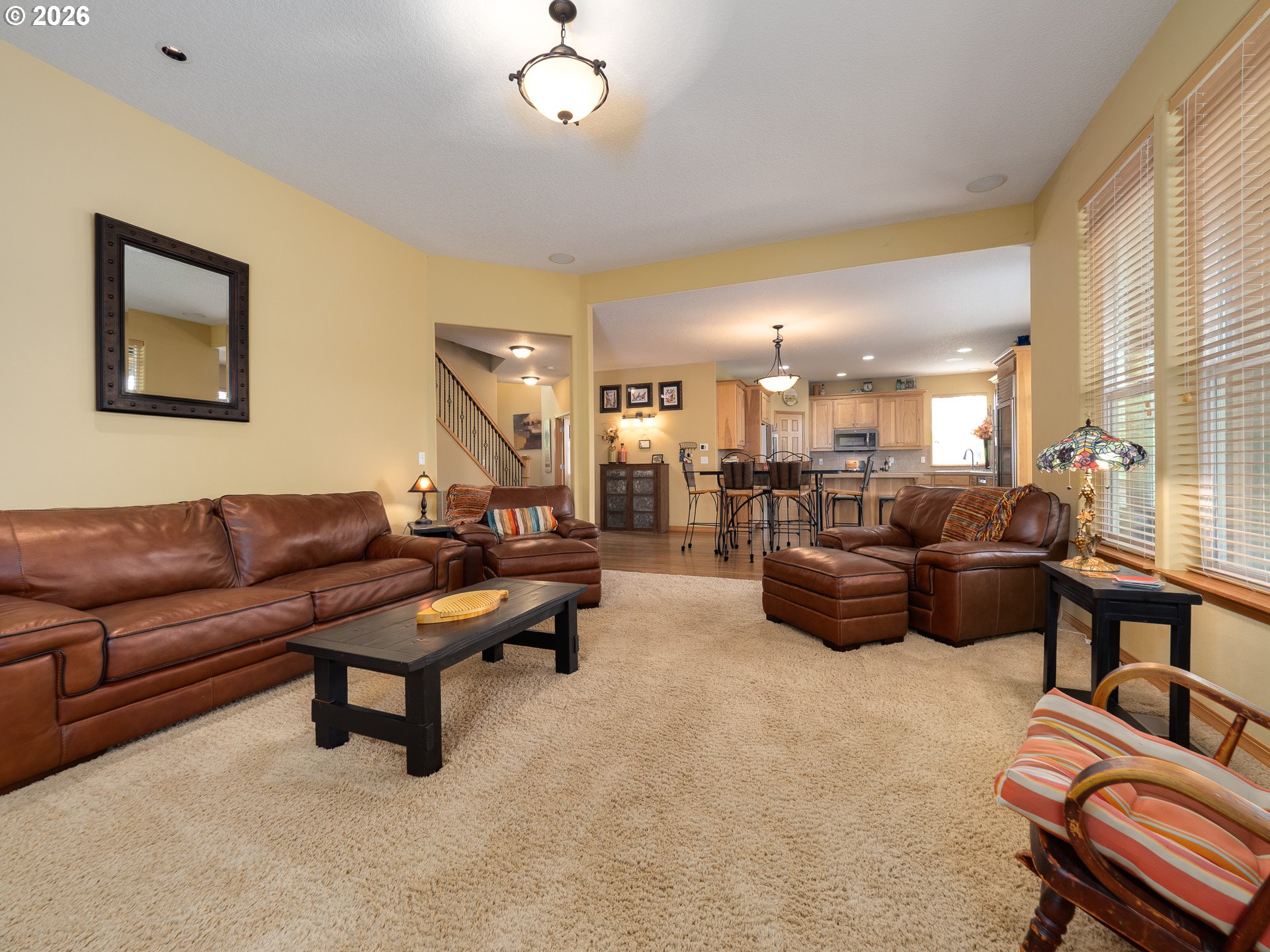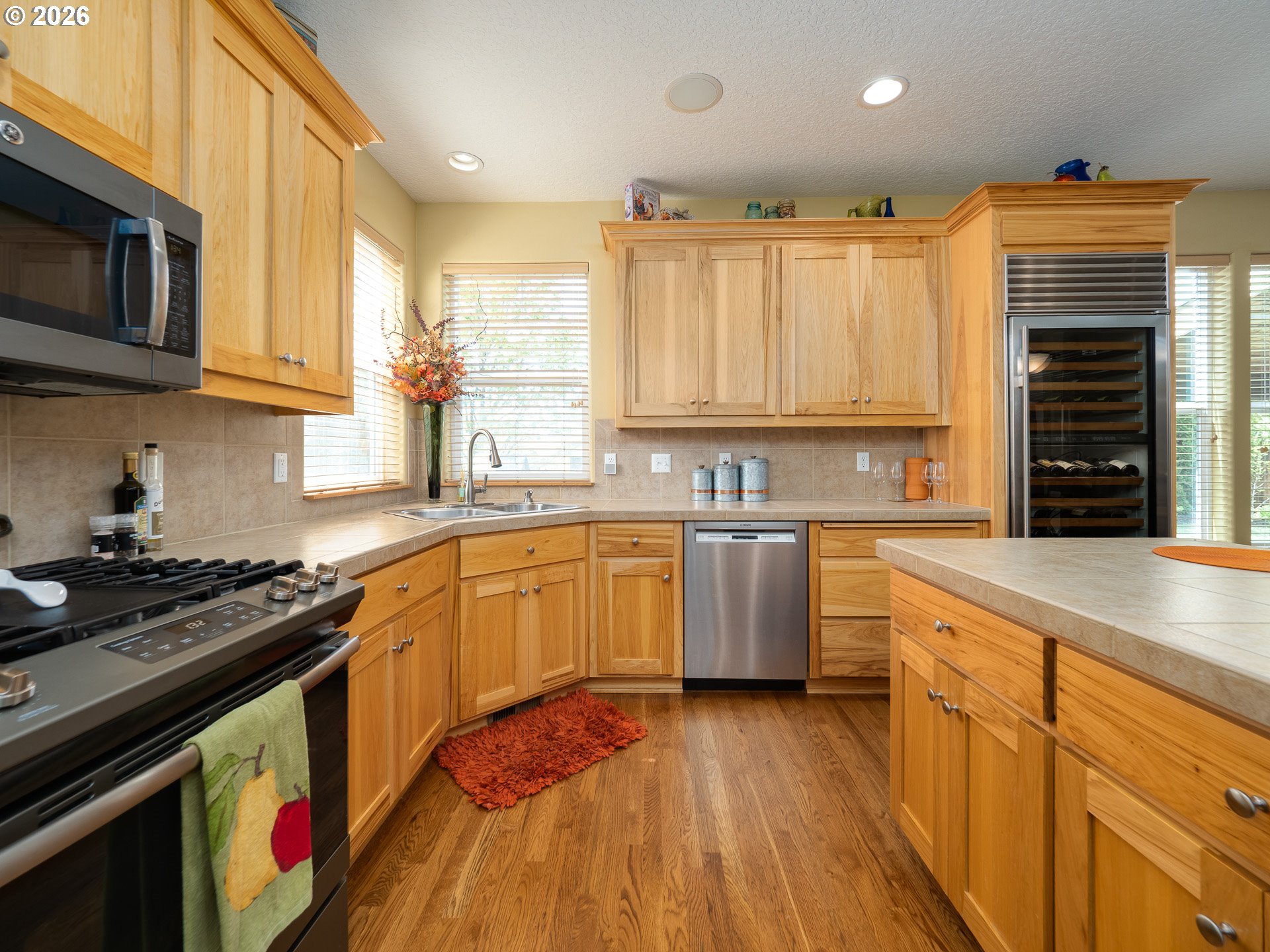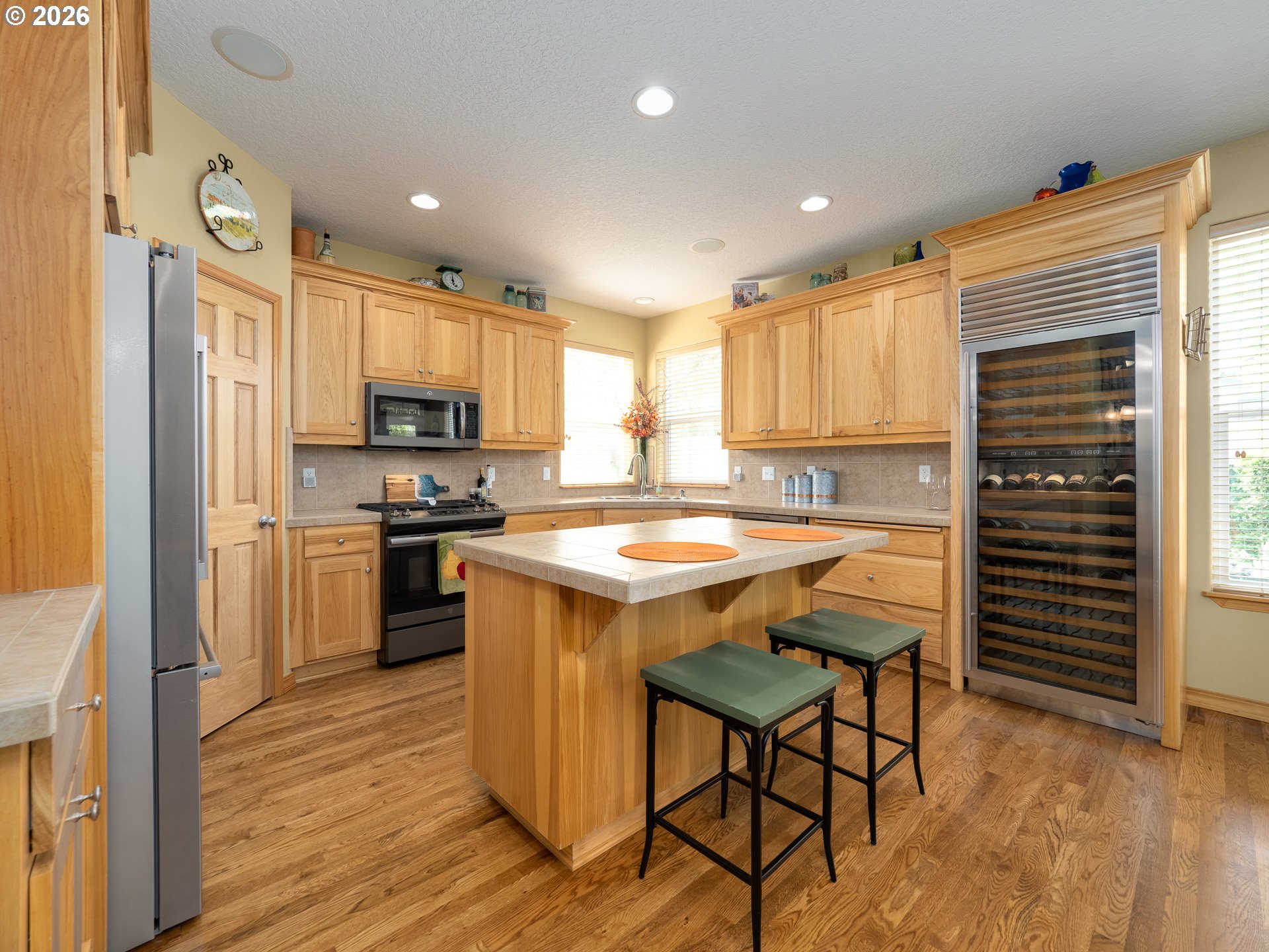 An Entertainer's Delight at Whistler's Ridge! This home welcomes you with a spacious, open foyer that immediately sets a warm and inviting tone. Abundant daylight fills the interior, creating a comfortable & welcoming atmosphere throughout the living areas. The centerpiece of the main living space is a stunning 11-foot stone-wall gas fireplace, offering both elegance & warmth. The kitchen & entertaining features are designed for culinary enthusiasts, equipped with Bosch stainless-steel appliances, a central island & a large built-in Sub-Zero wine refrigerator. This setup provides ample room for meal preparation and hosting gatherings. High ceilings contribute to an expansive area that is ideal for entertaining & dining. The flexible main-level 4th bedroom, accented with French doors & built-in cabinets, offers versatility as a guest room, den, or office, adapting easily to your needs. Upstairs features 10-ft ceilings & a spacious bonus/media room with a built-in entertainment center & an integrated indoor/outdoor sound system, perfect for media & entertainment activities. The large master suite serves as a private retreat, equipped with dual vanities, a soaking tub, a large separate shower & a generous walk-in closet. The additional bedrooms are well-sized & each include ceiling fans. The fenced private backyard includes a covered patio with a natural gas hookup, making it perfect for outdoor grilling. Professionally landscaped grounds feature a water element, a dedicated gardening area with raised beds, a 9-zone sprinkler system, a playground & a picnic area. A three-car garage offers ample parking & storage space. Additional amenities further enhance the functionality and appeal of the home. Situated in a quality neighborhood, the home offers picturesque surroundings & convenient access to Tom Gail Park & the charming downtown area of Newberg. Residents will enjoy proximity to first-class restaurants & wineries. The property benefits from having no HOA fees.