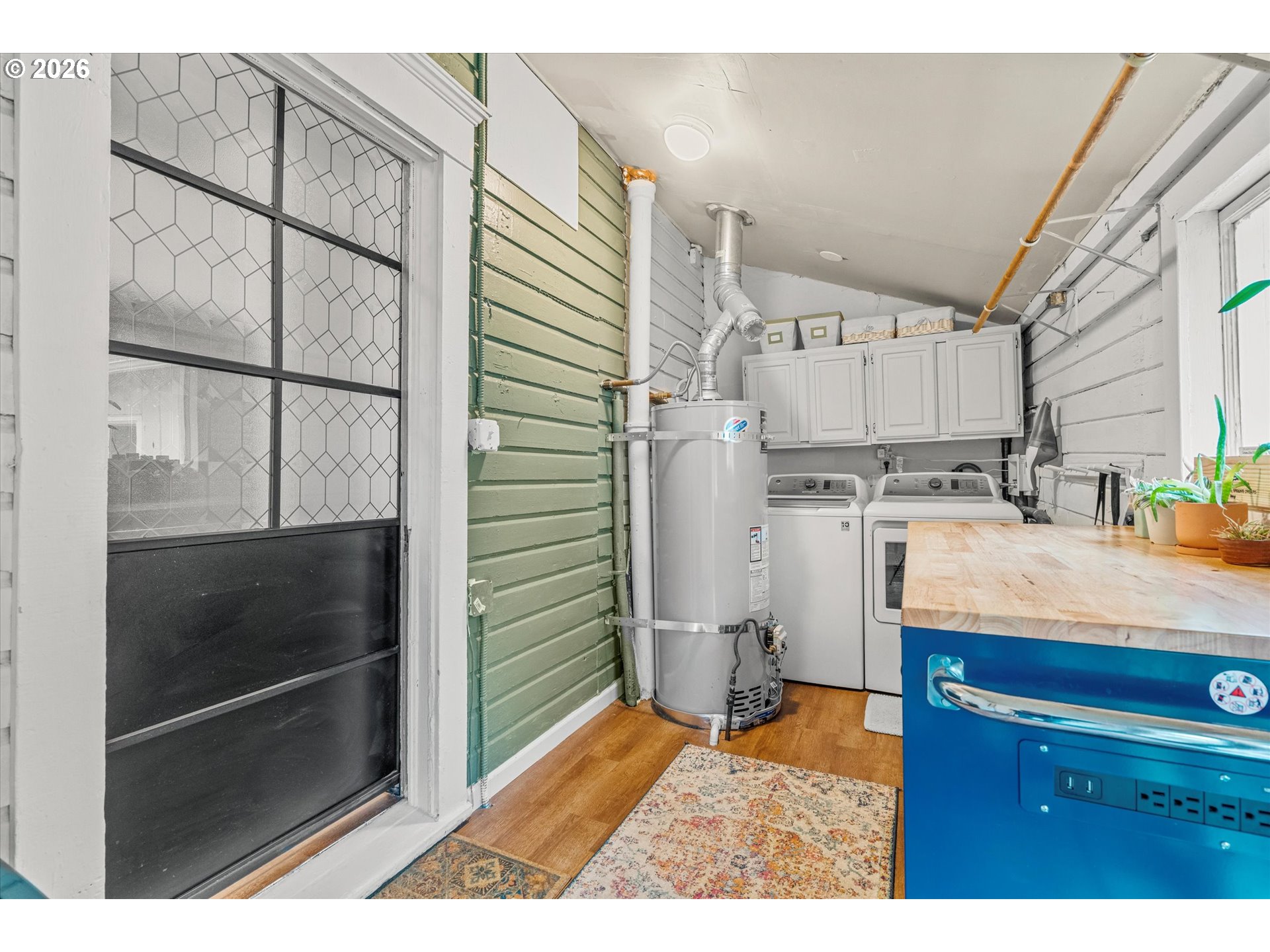 LaminateFlooring, Laundry, ReclaimedMaterial, SeparateLivingQuartersApartmentAuxLivingUnit, Wainscoting,