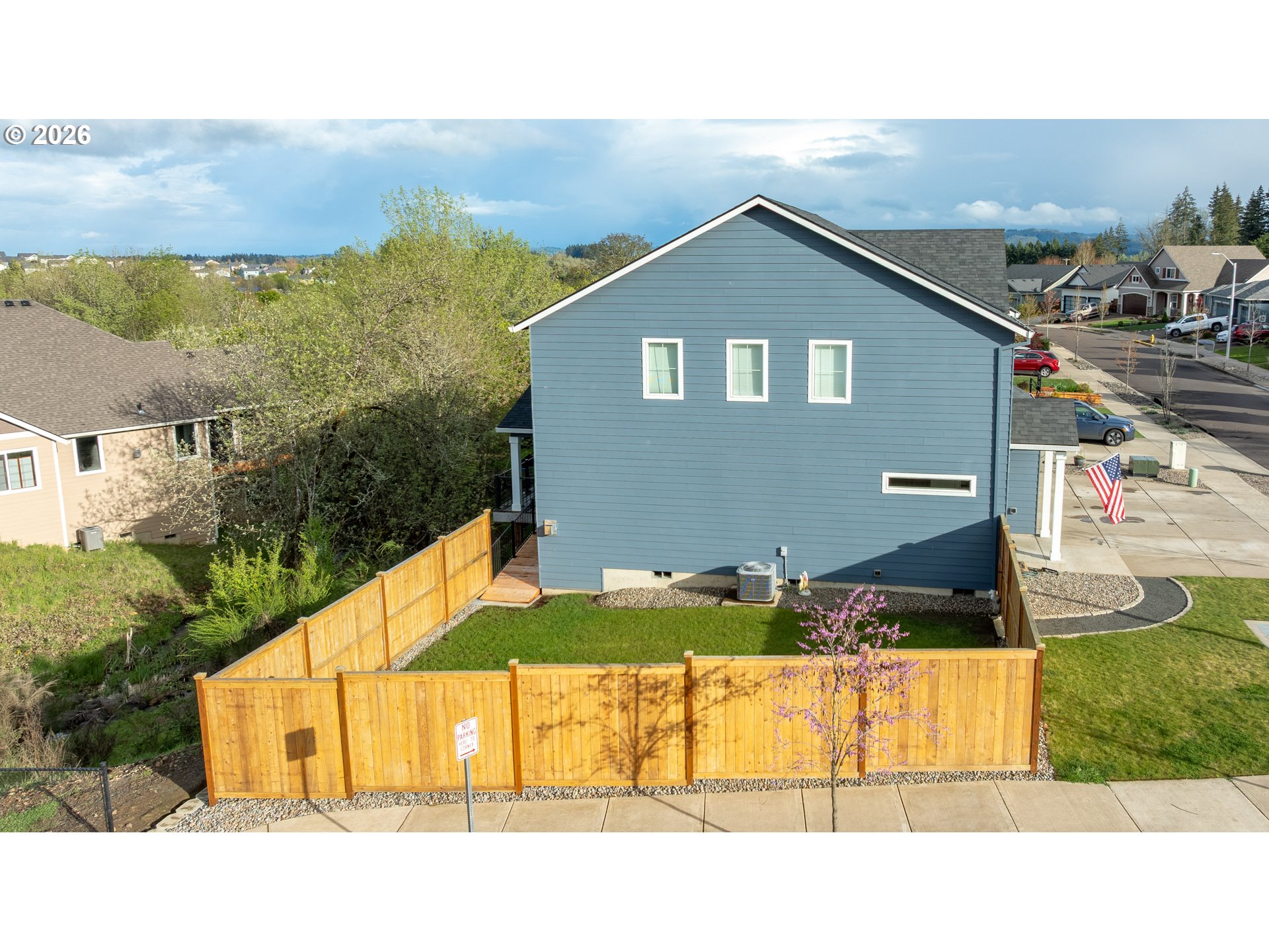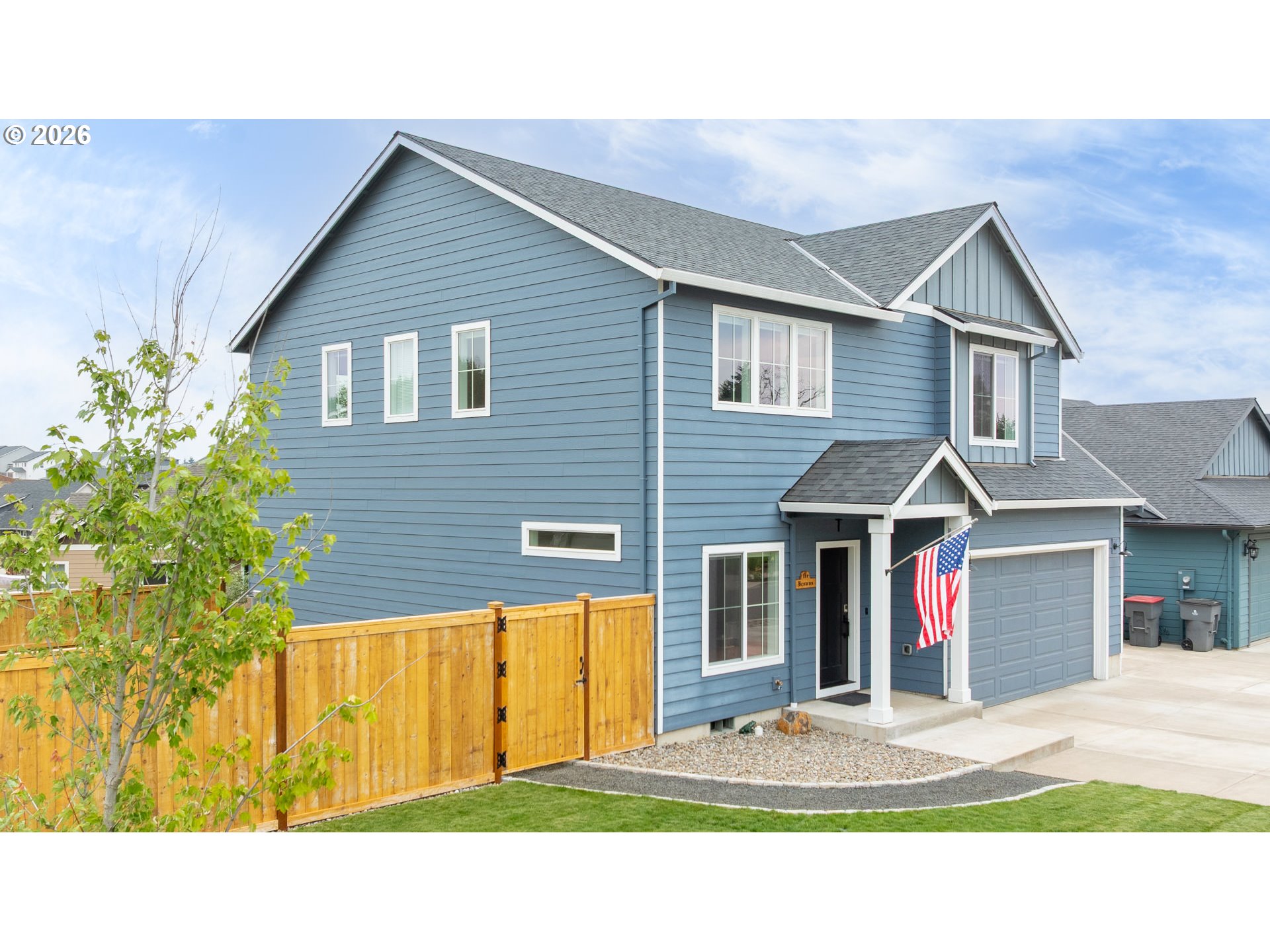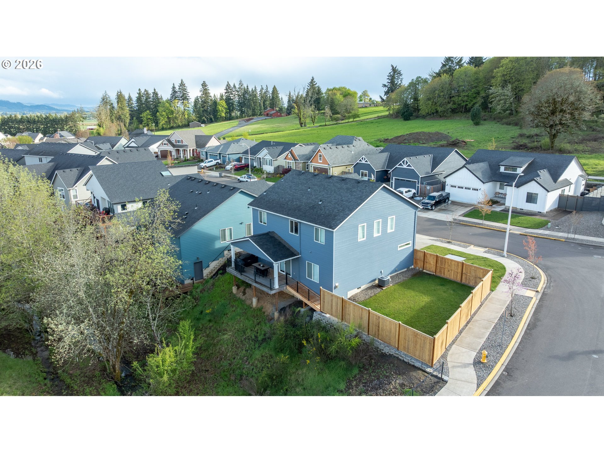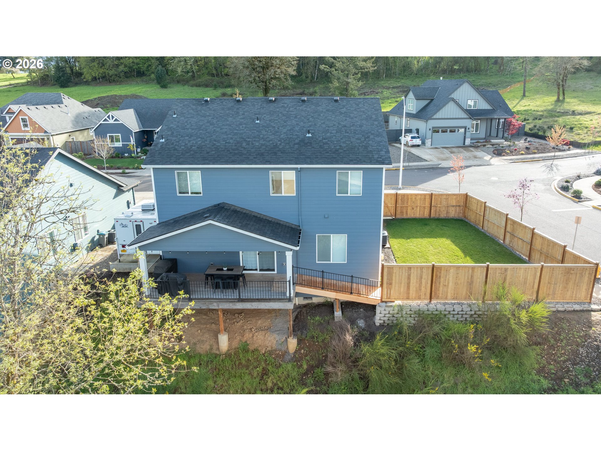 Built in 2021, this custom 5-bedroom, 2.5-bath home sits in a quiet, desirable neighborhood just two blocks from West Hills Neighborhood Park. The main level features durable LVP flooring throughout, a kitchen with granite countertops, plumbed for either an electric or gas range, a bedroom currently used as a home office, and a living room enhanced by a cozy gas fireplace. Step outside to the covered deck, perfect for entertaining rain or shine, with a convenient ramp leading to the fully fenced side yard. Upstairs, the primary suite offers a custom shower with dual heads, along with three bedrooms, a full bath, a laundry room, and a versatile open living space. The extra-deep, extra-tall garage offers ample space for large vehicles, and the driveway provides convenient RV parking. Modern finishes, thoughtful design, and a prime location make this home a rare find.