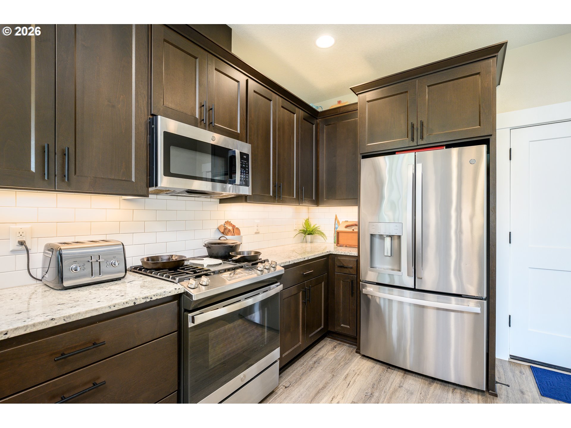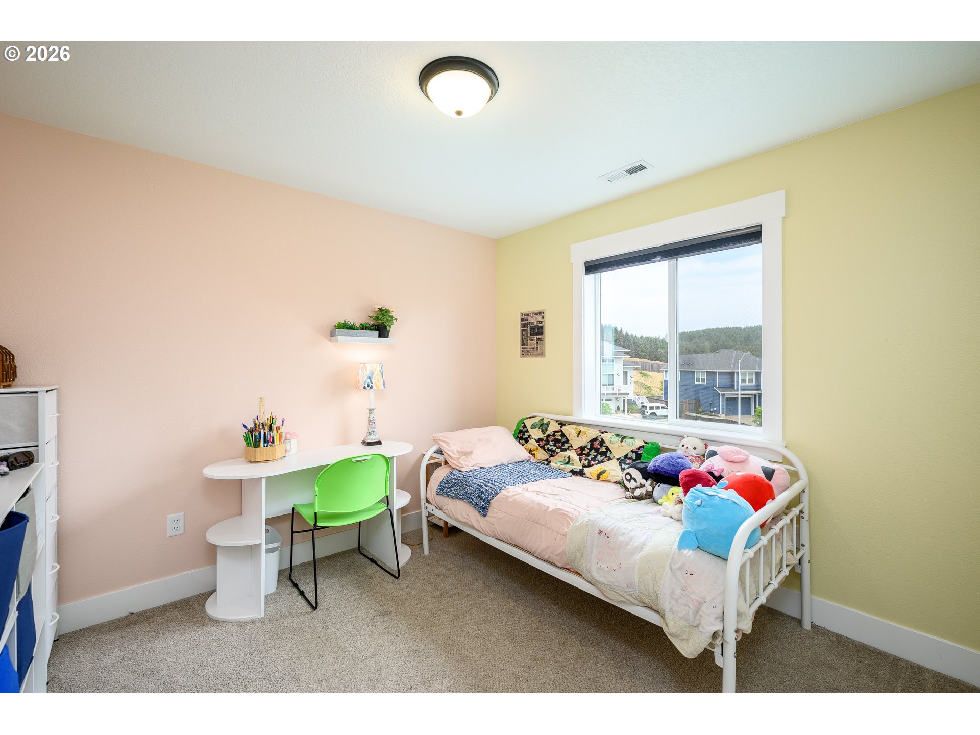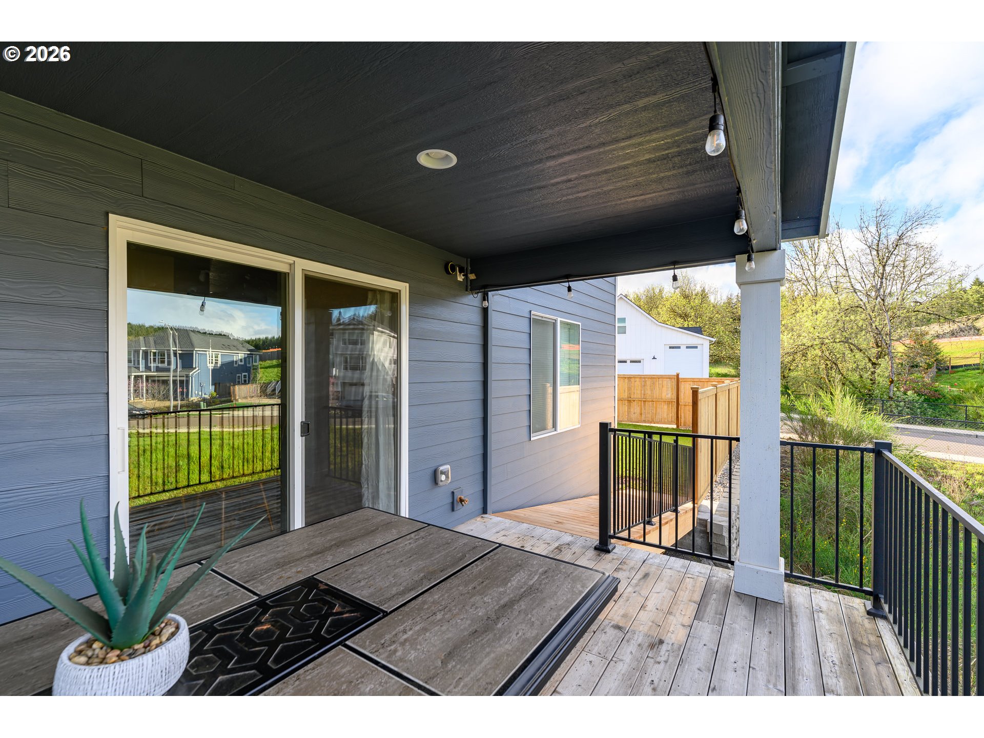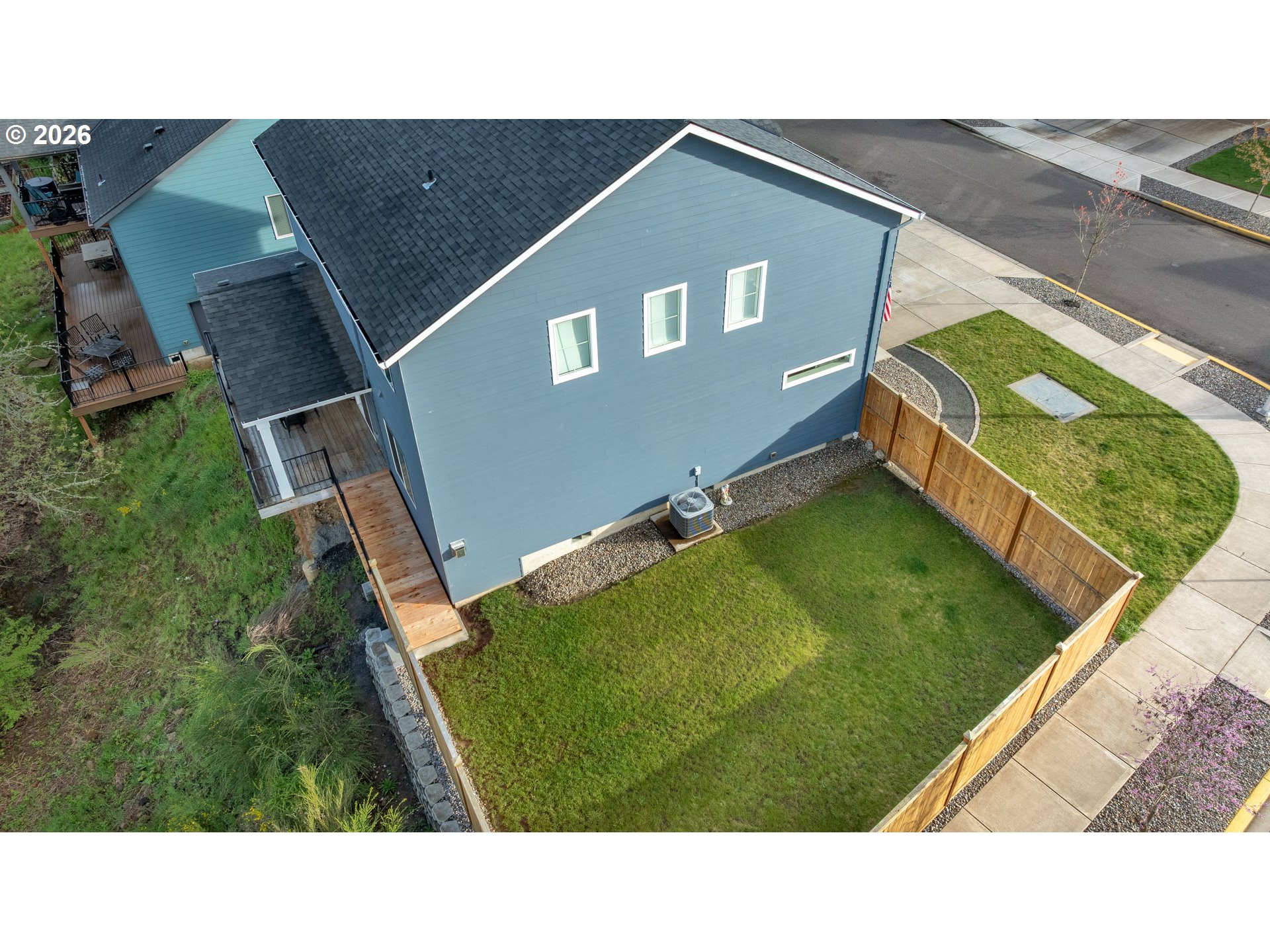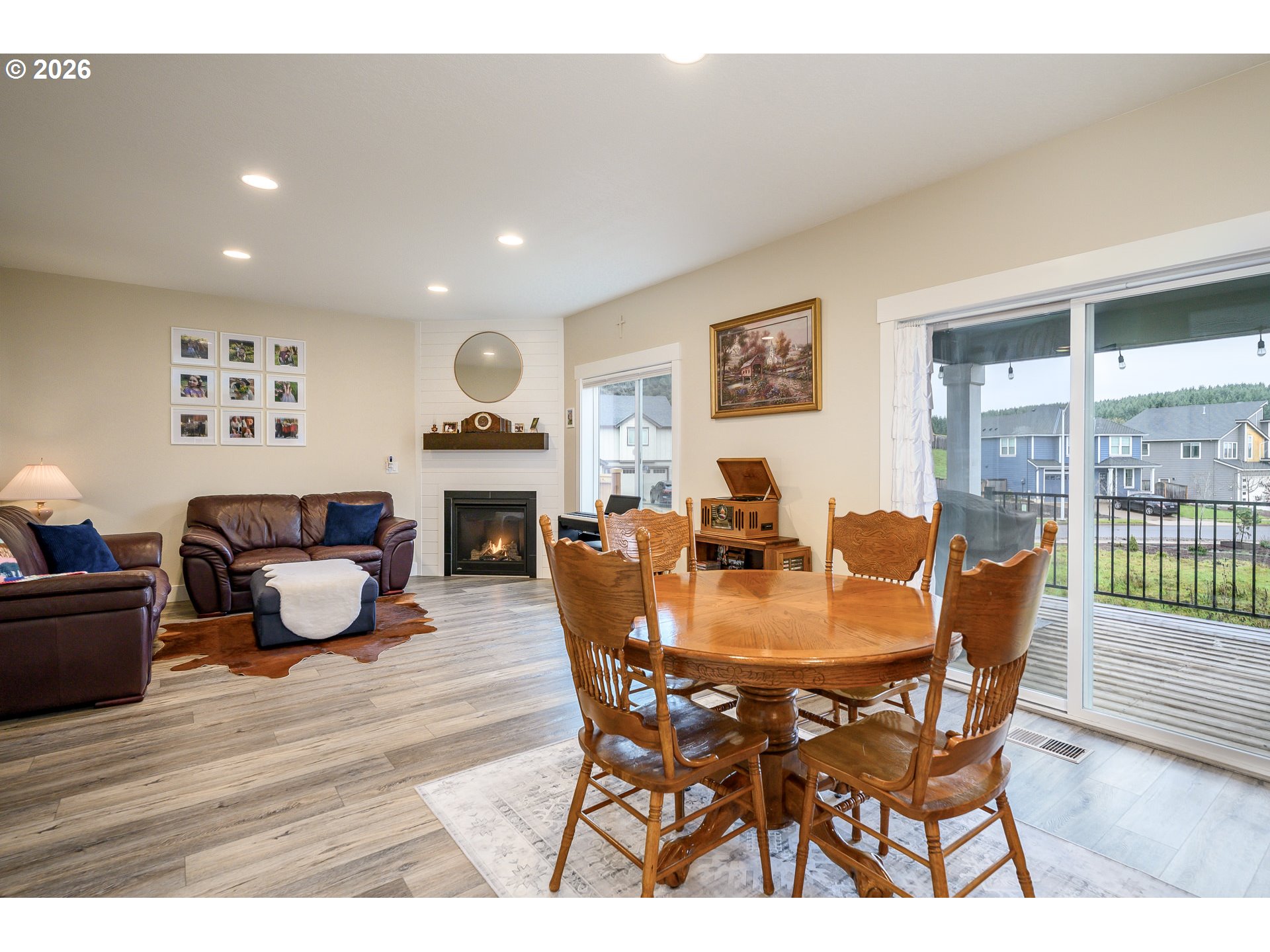 Built in 2021, this custom 5-bedroom, 2.5-bath home sits in a quiet, desirable neighborhood just two blocks from West Hills Neighborhood Park. The main level features durable LVP flooring throughout, a kitchen with granite countertops, plumbed for either an electric or gas range, a bedroom currently used as a home office, and a living room enhanced by a cozy gas fireplace. Step outside to the covered deck, perfect for entertaining rain or shine, with a convenient ramp leading to the fully fenced side yard. Upstairs, the primary suite offers a custom shower with dual heads, along with three bedrooms, a full bath, a laundry room, and a versatile open living space. The extra-deep, extra-tall garage offers ample space for large vehicles, and the driveway provides convenient RV parking. Modern finishes, thoughtful design, and a prime location make this home a rare find.