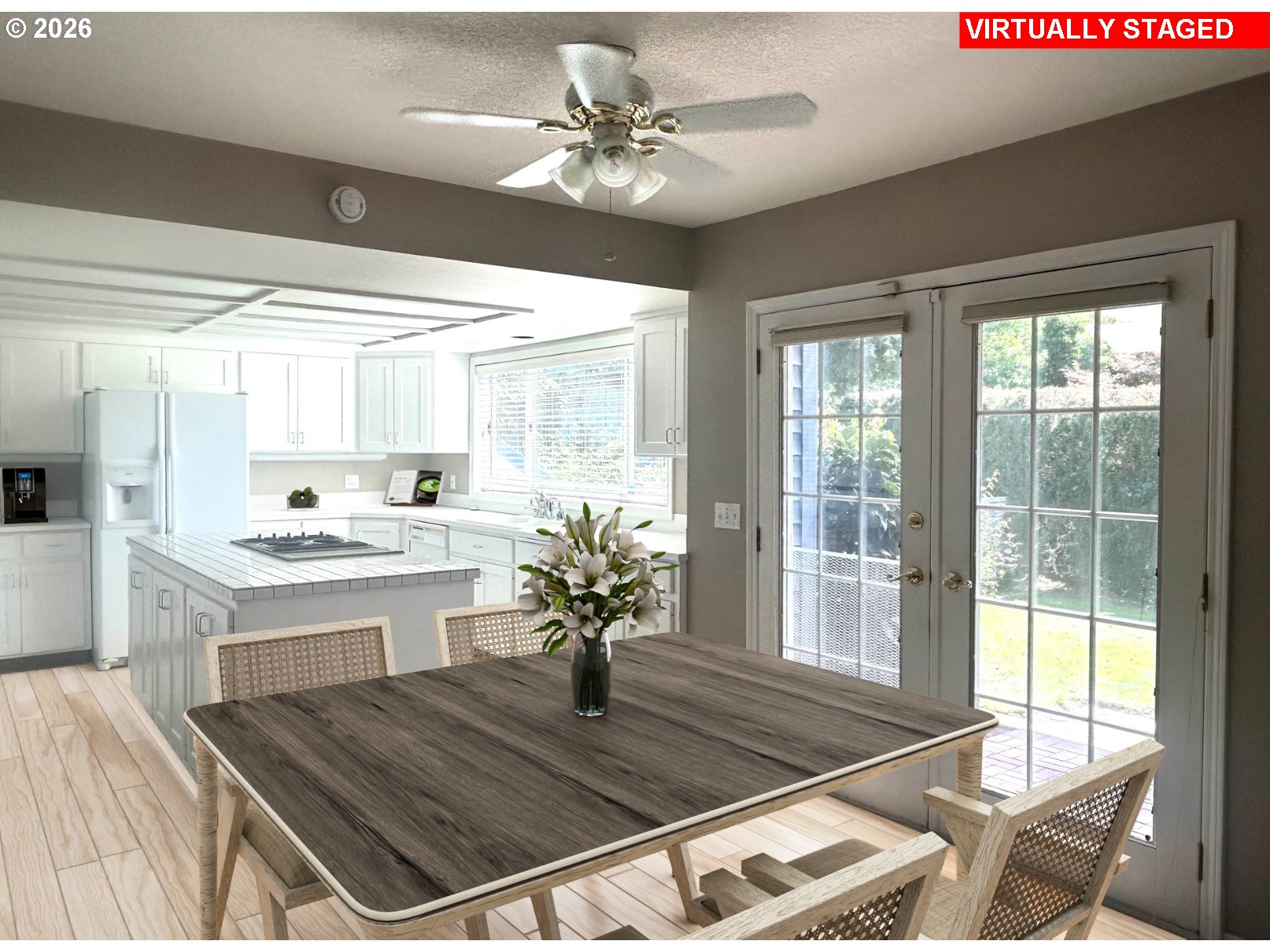 Market Price Adjustment on this timeless two-story home loved for over 20 years, nestled at the end of a peaceful cul-de-sac in North Newberg, this classic two-story home has been lovingly cared for by the same owners for more than two decades—and now it’s ready for its next chapter. Offering just over 2,300 sq. ft. of well-designed living space, this 4-bedroom, 2.1-bathroom home features a traditional layout that’s both functional and welcoming.From the formal front entrance, you're greeted by vaulted ceilings, marble tile floors, a coat closet, and a beautiful staircase leading to the upper level. The formal living room, with its vaulted ceiling and cozy fireplace is filled with natural light and ideal for relaxing or hosting guests. A step down leads to the formal dining room, which overlooks a charming side garden complete with a bird bath and established rose bushes.The kitchen and great room are the heart of the home, featuring a stovetop island, wall-mounted double ovens, tile countertops, and a spacious eating area. French doors open to a covered patio and a fully fenced backyard—perfect for outdoor living year-round. The great room also includes a built-in stereo system and large-screen TV, making it ideal for everyday enjoyment or entertaining. Upstairs, all four bedrooms offer comfort and privacy, including a spacious primary suite with a walk-in closet and walk-in shower. 4th bedroom could double as a dedicated home office with an attached bonus room- adding flexibility—ideal for remote work, hobbies, or additional storage.Additional highlights include a generous laundry/mud room with built-in cabinets just off the garage, a centrally located half bath on the main level.Located close to parks, schools, downtown Newberg, and Providence Hospital. New roof and exterior paint.Virtually staged photos have virtual wood floors and not included in the sale of home.