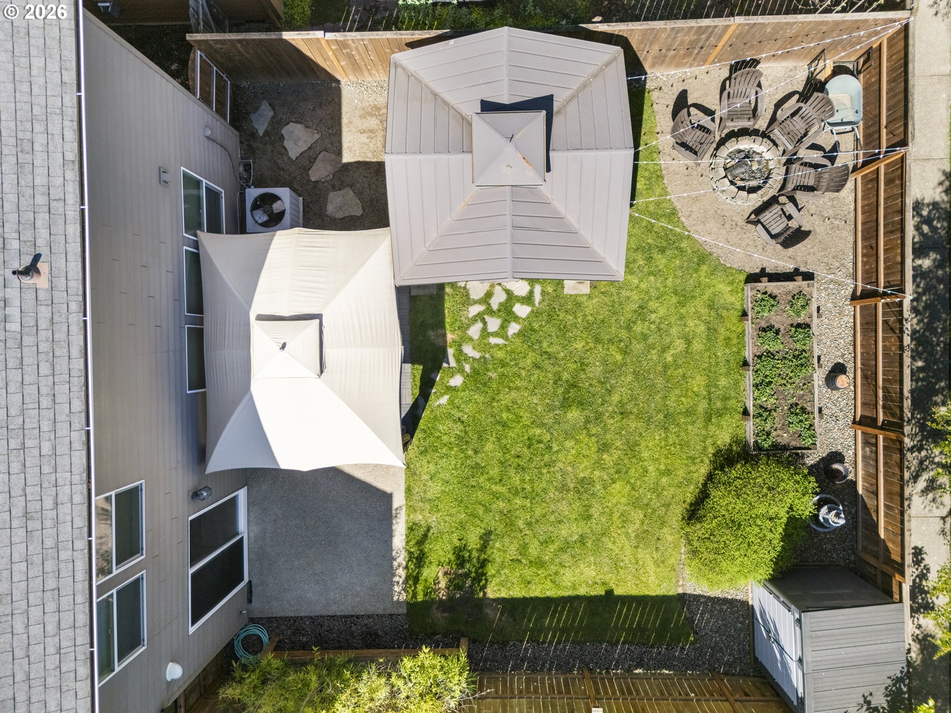 From the moment you arrive, the picturesque landscaped entry sets the tone for this beautifully cared-for home. Step inside and you’re welcomed by rich Brazilian cherry hardwood floors and a bright, inviting atmosphere that immediately feels like home.The kitchen is both stylish and functional, featuring sparkling stainless steel gas appliances, granite countertops, and a decorative tile backsplash. It opens seamlessly to the living room and dining nook, where natural light pours in—creating the perfect space for morning coffee, quiet evenings, or gathering with friends and family.Upstairs, the primary suite offers a peaceful retreat with elegant marble floors in the bathroom and a spacious walk-in closet complete with a high-end organizer to keep everything in its place. A sunny loft provides flexible space for a home office, reading lounge, or creative corner.Step outside and discover a backyard designed for relaxing and enjoying life. Whether you’re unwinding in the oversized hot tub, sharing stories around the fire pit, or enjoying a quiet evening under the gazebo, this private outdoor space truly feels like your own little escape.With thoughtful extras like air conditioning, a smart thermostat, and HOA-maintained front yard landscaping, this home blends comfort, beauty, and easy living in all the right ways.