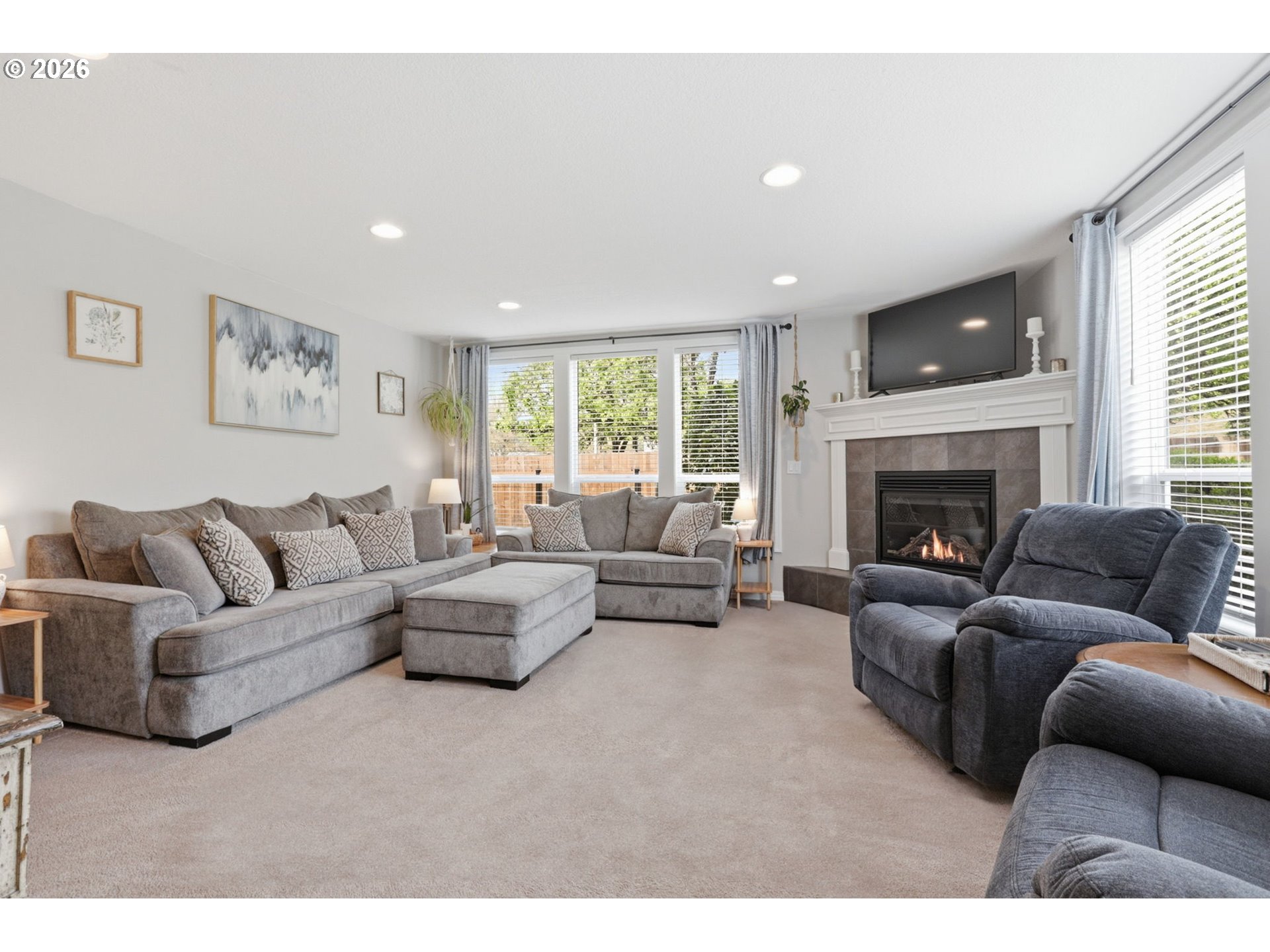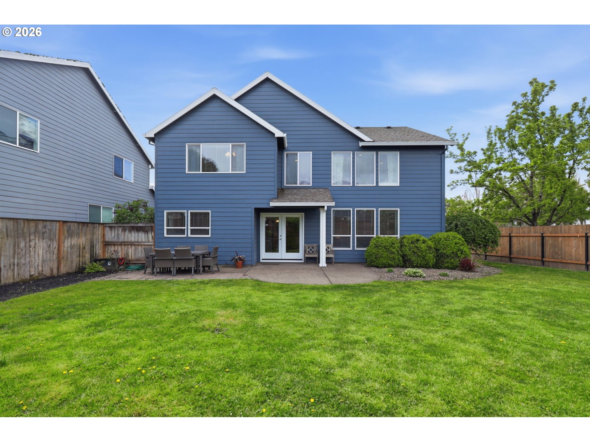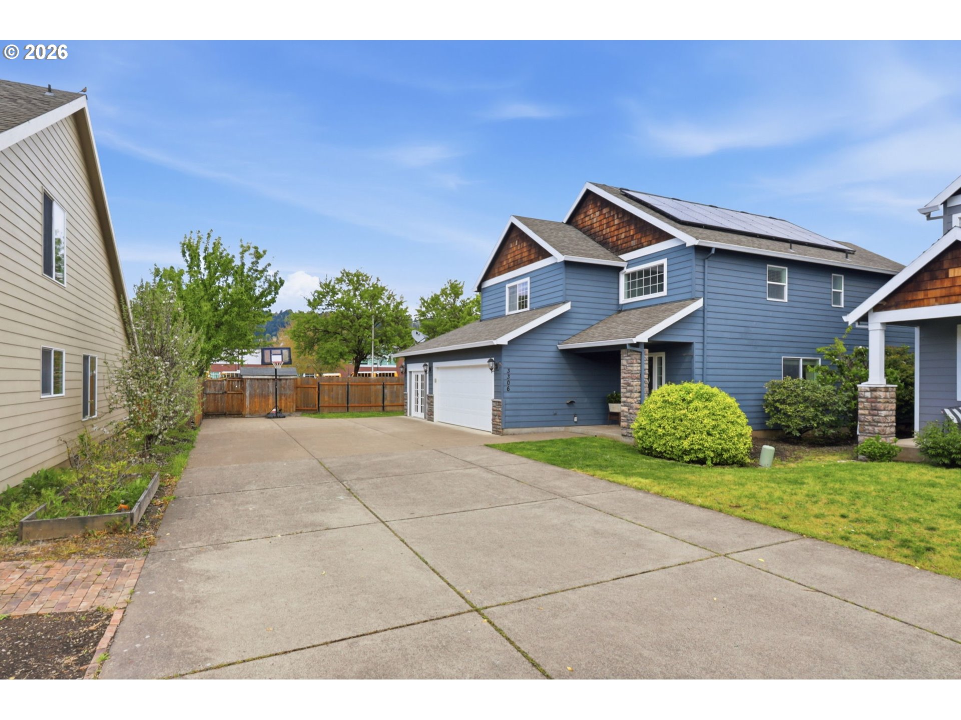 Spacious 5-bedroom + bonus room home in desirable Callista Estates! Offering 3,220 sq ft, this versatile floorplan includes a main-level bedroom and bonus room—perfect for a home office or guest space—and a large bedroom/bonus room upstairs that can function as a bedroom, media room, or playroom.The open-concept main level features hardwood floors, a cozy gas fireplace, and a functional kitchen with island, wood cabinetry, tile countertops, and a walk-in pantry. Upstairs, the generous primary suite includes a walk-in closet and ensuite bath with large soaking tub.Enjoy outdoor living in the fully fenced, flat backyard with patio, mature landscaping, raised garden beds, and a peaceful fountain—ideal for entertaining or relaxing.Situated on a 7,954 sq ft lot with a 2-car garage and extended driveway for ample parking. Solar panels help subsidize monthly power costs. Conveniently located near Chehalem Valley Middle School and Antonia Crater Elementary, parks, and all that Newberg has to offer.Move-in ready and perfect for move-up buyers seeking space, flexibility, and comfort in a well-established neighborhood.